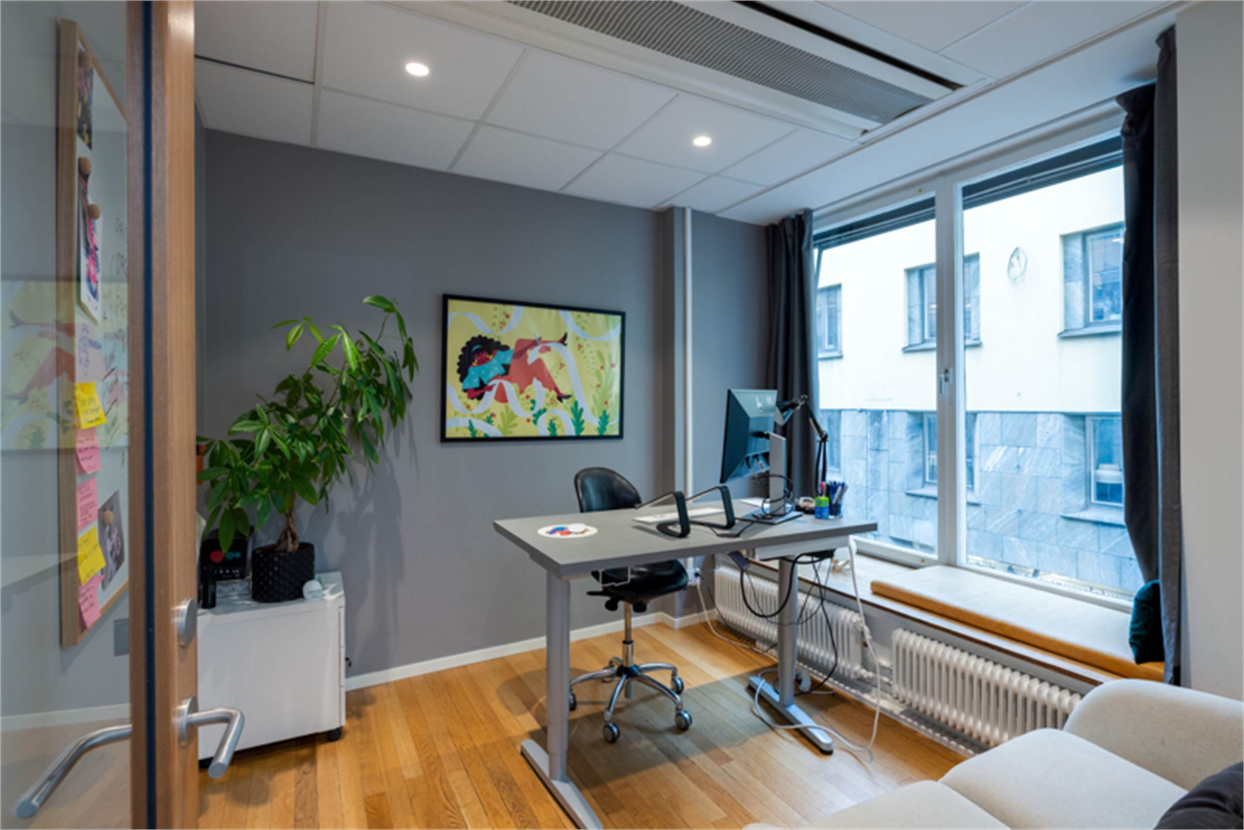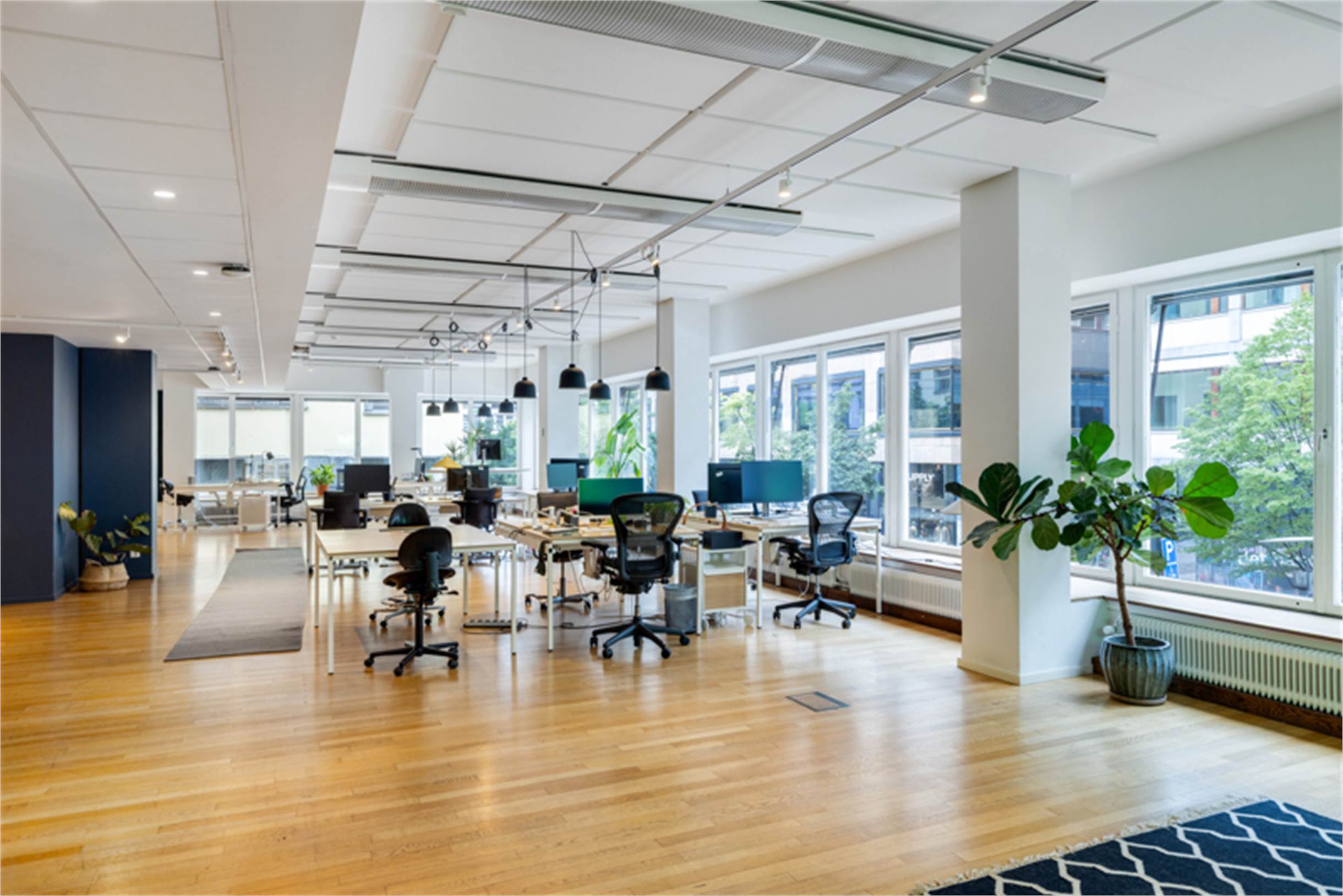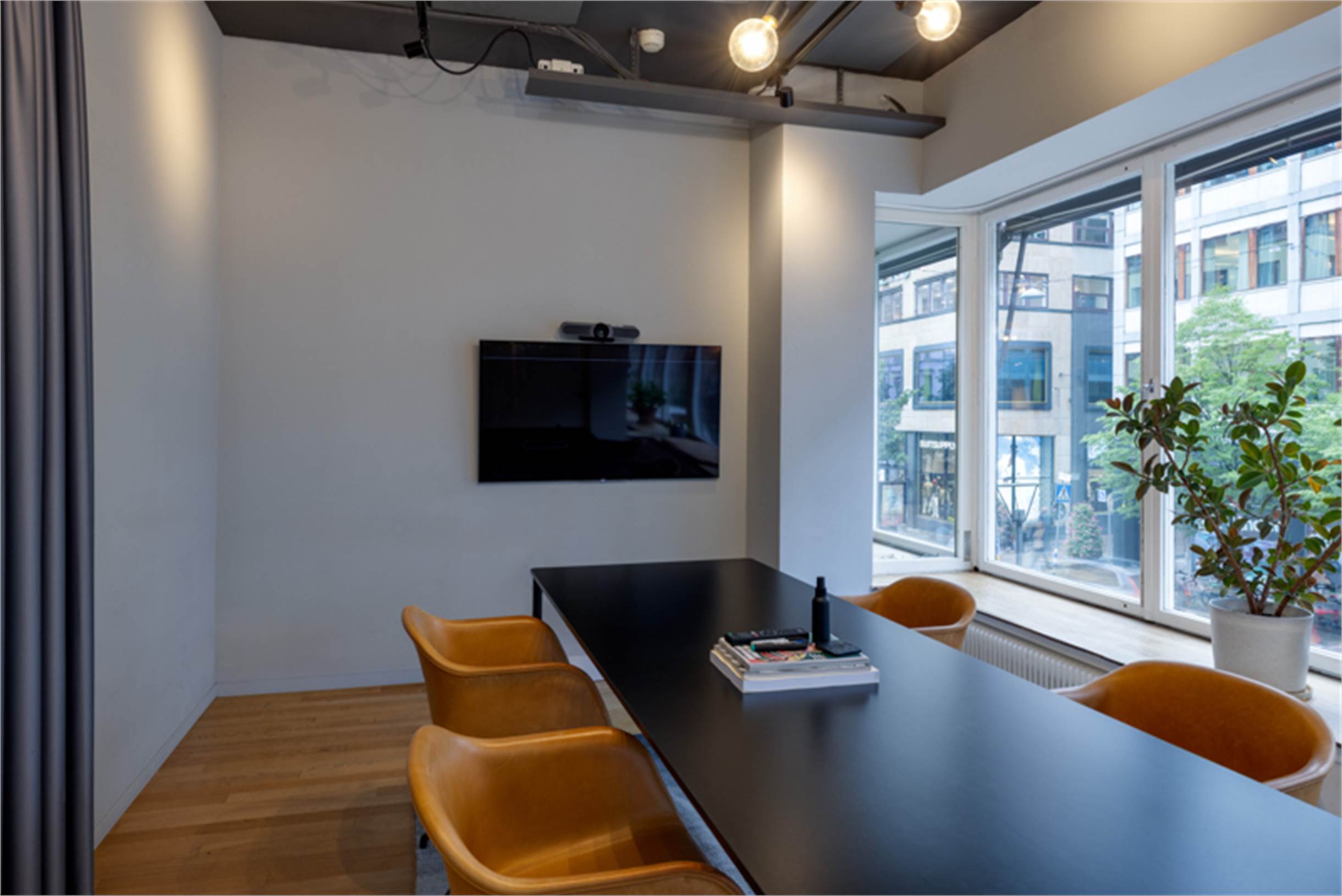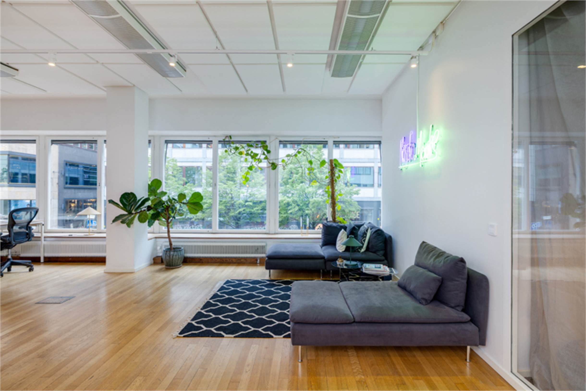 Kontoret ligger utmed Norrlandsgatan och Jakobsbergsgatan, med ett härligt ljusinsläpp runtom hela kontoret. Flertal konferensrum och mindre mötesrum utplacerade runt de öppna arbetslandskapen och en större loungeyta med riktigt kök för matlagning som man kan stänga till. Väl valda materialval och en genomtänkt planlösning som skapar en trivsam och inspirerande arbetsmiljö och representativ känsla.
