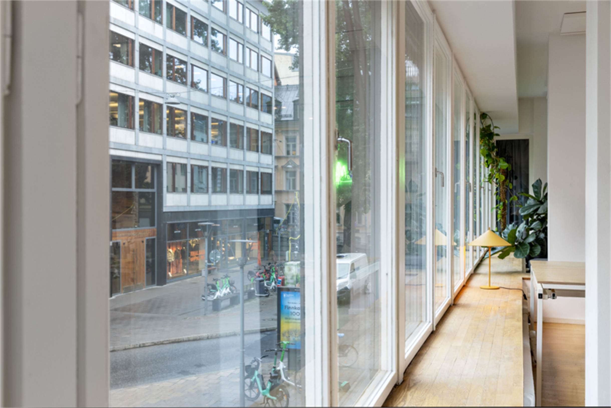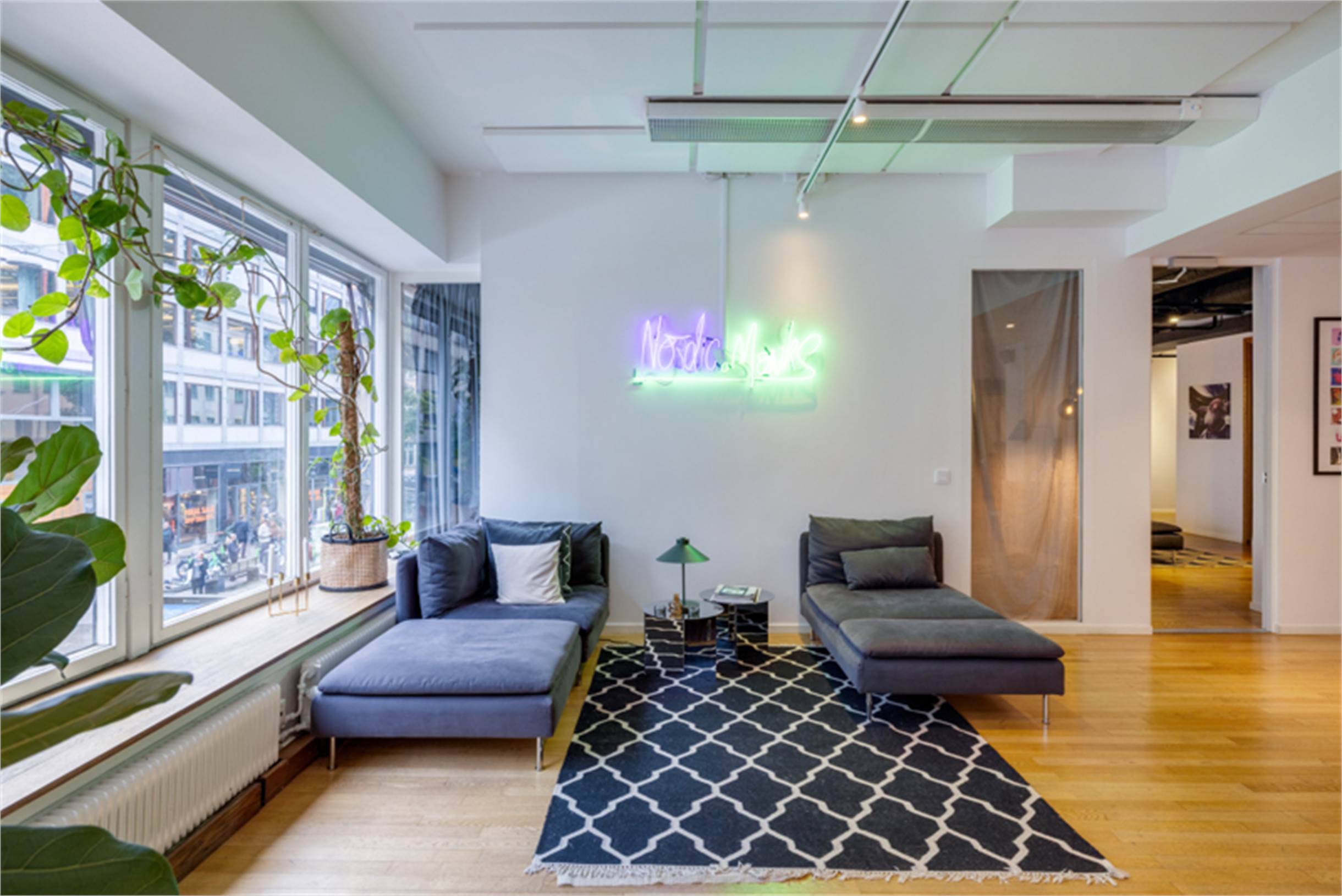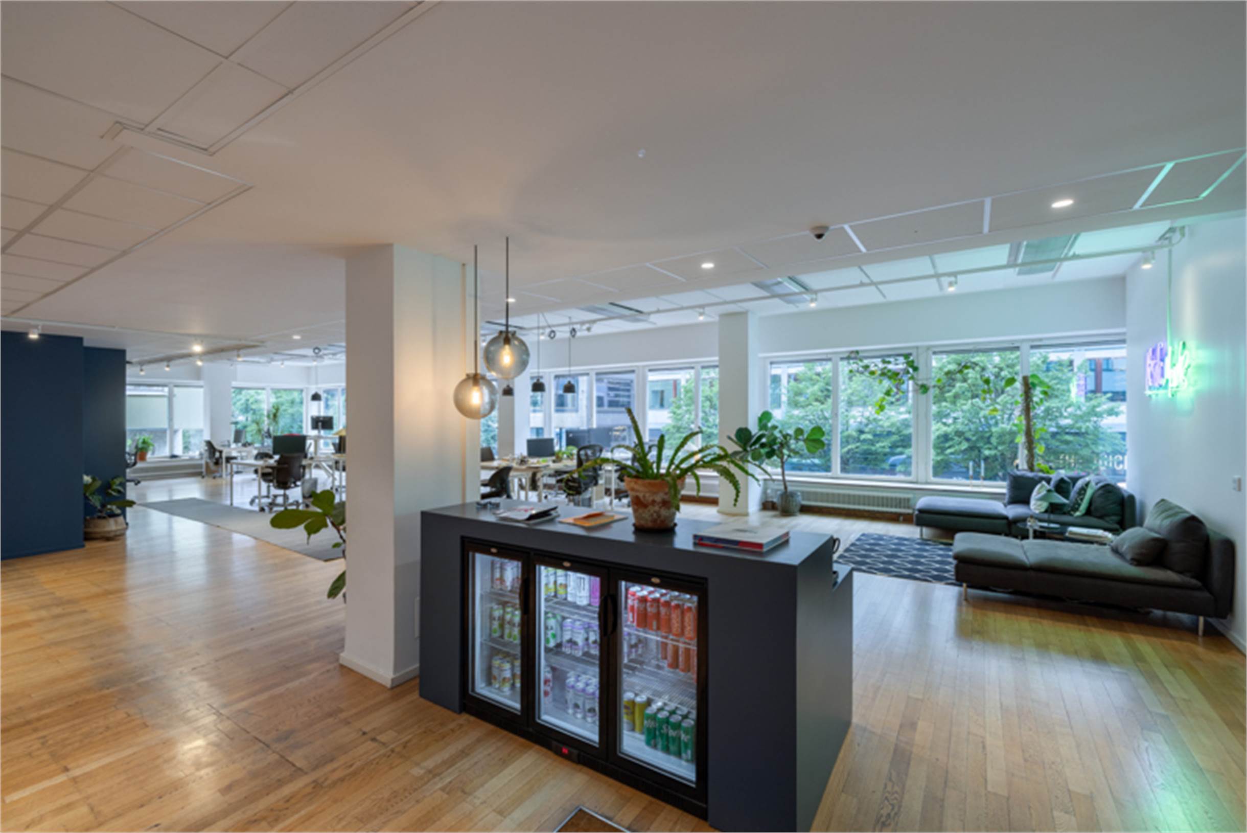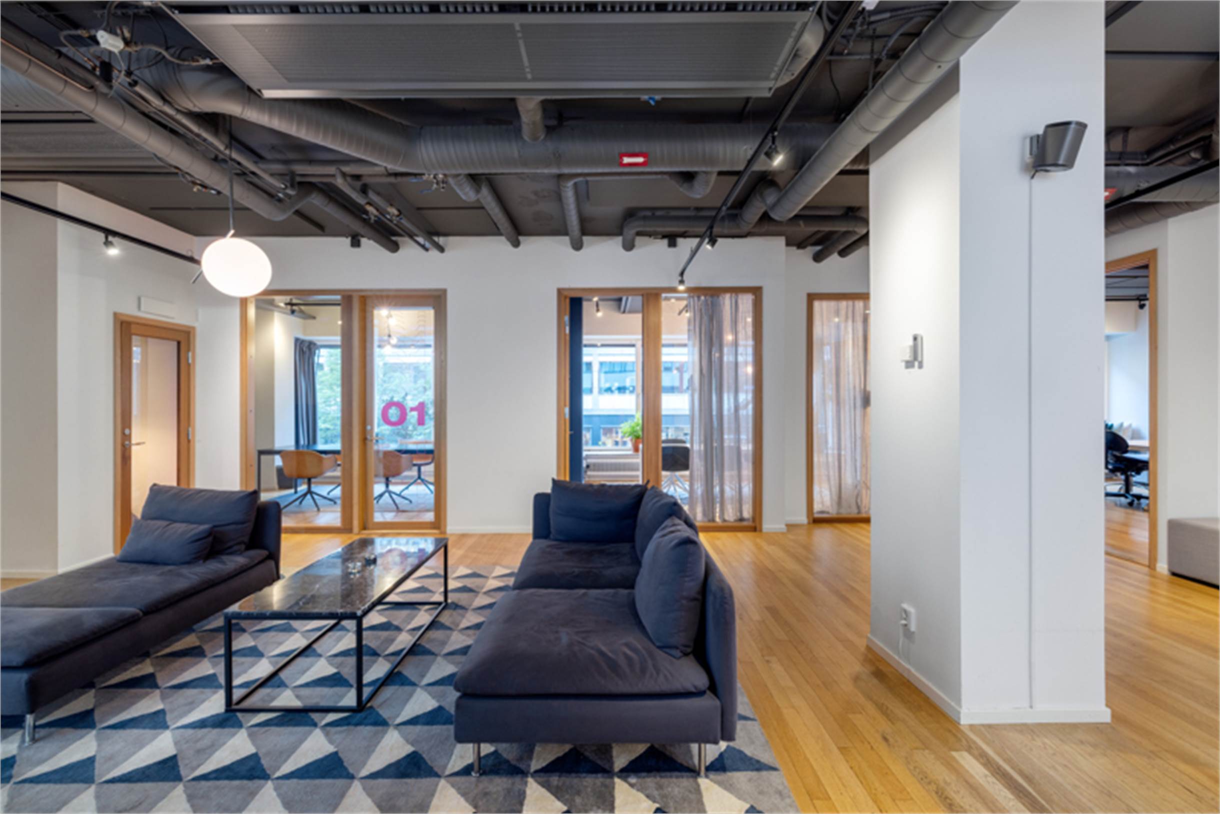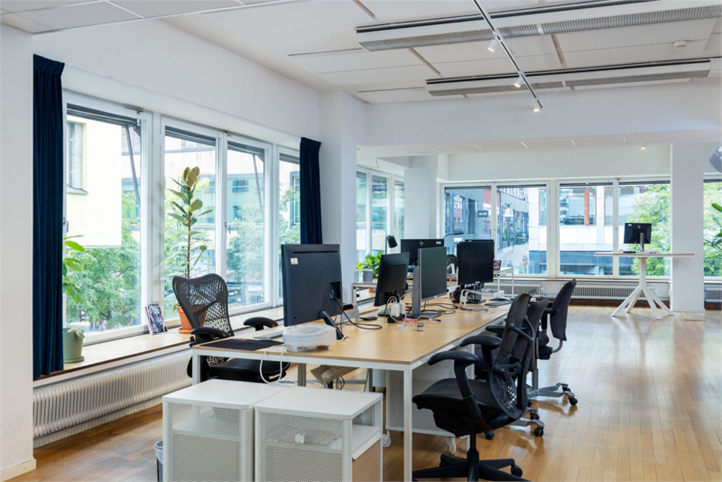 Kontoret ligger utmed Norrlandsgatan och Jakobsbergsgatan, med ett härligt ljusinsläpp runtom hela kontoret. Flertal konferensrum och mindre mötesrum utplacerade runt de öppna arbetslandskapen och en större loungeyta med riktigt kök för matlagning som man kan stänga till. Väl valda materialval och en genomtänkt planlösning som skapar en trivsam och inspirerande arbetsmiljö och representativ känsla.