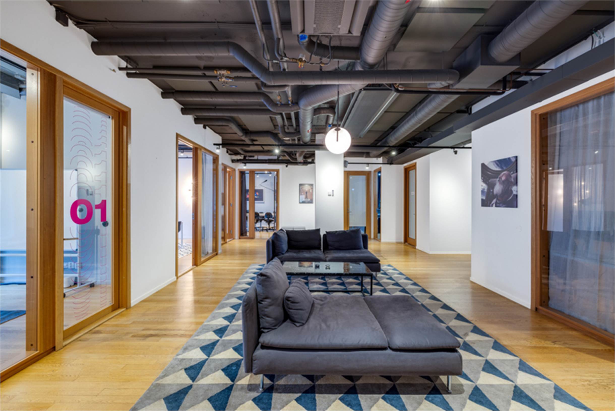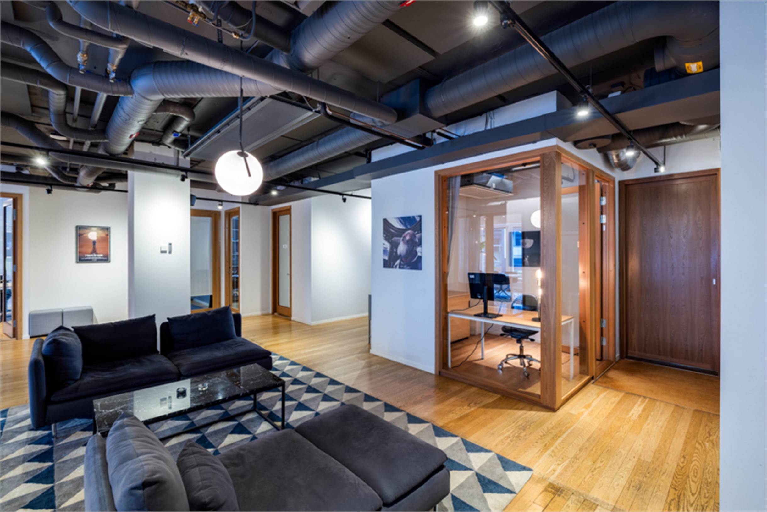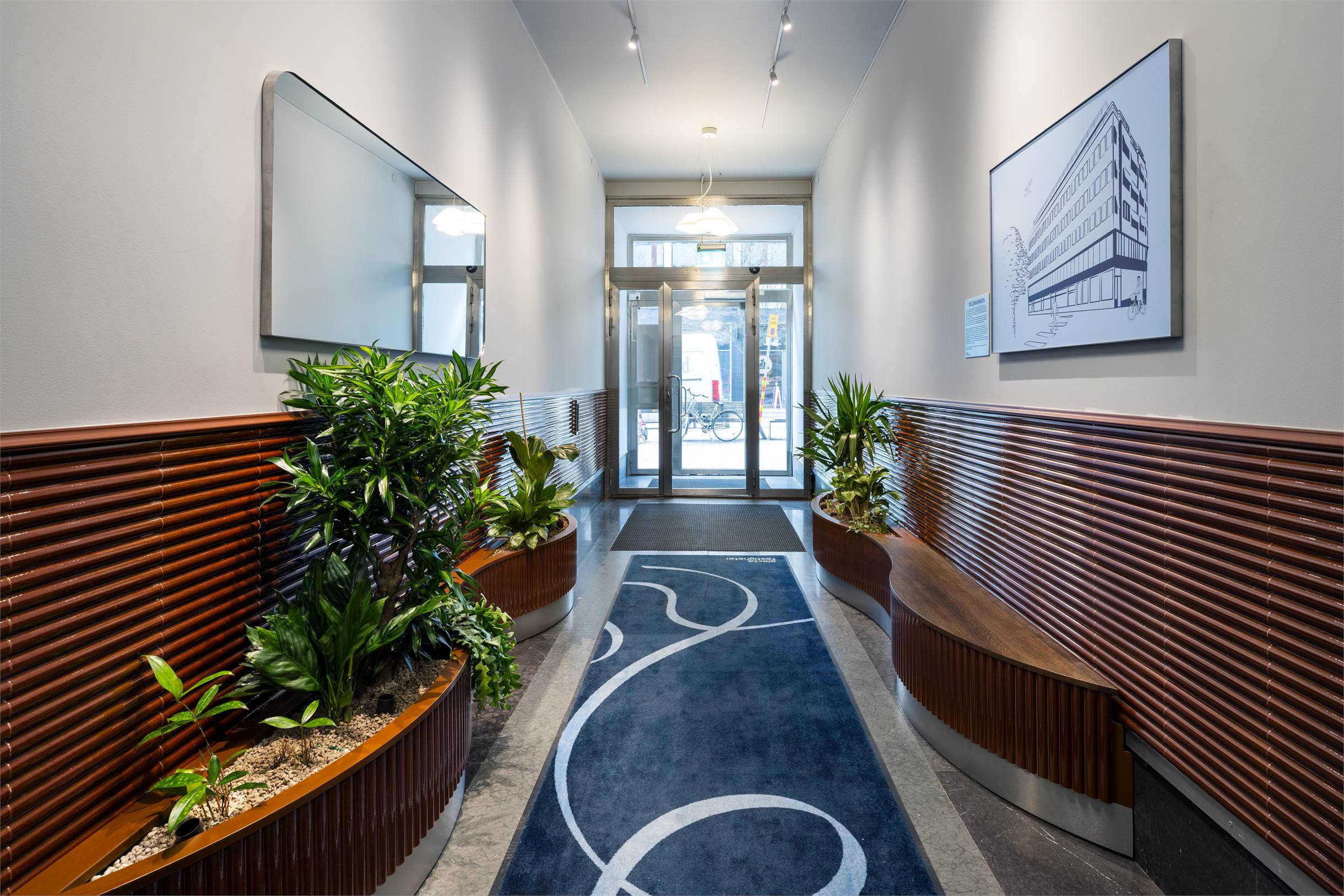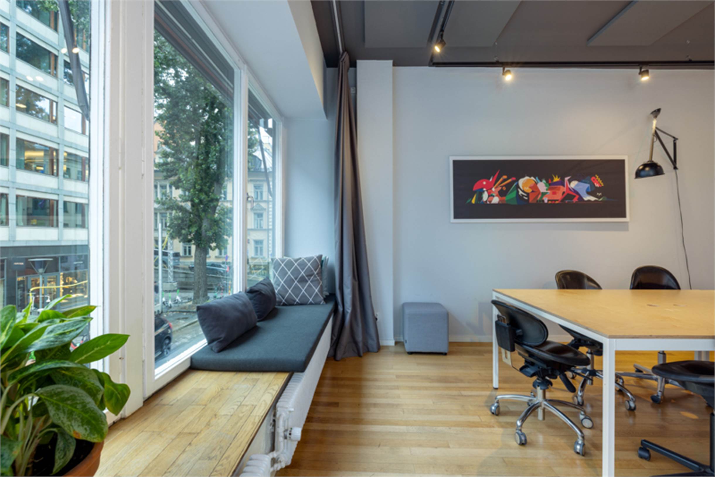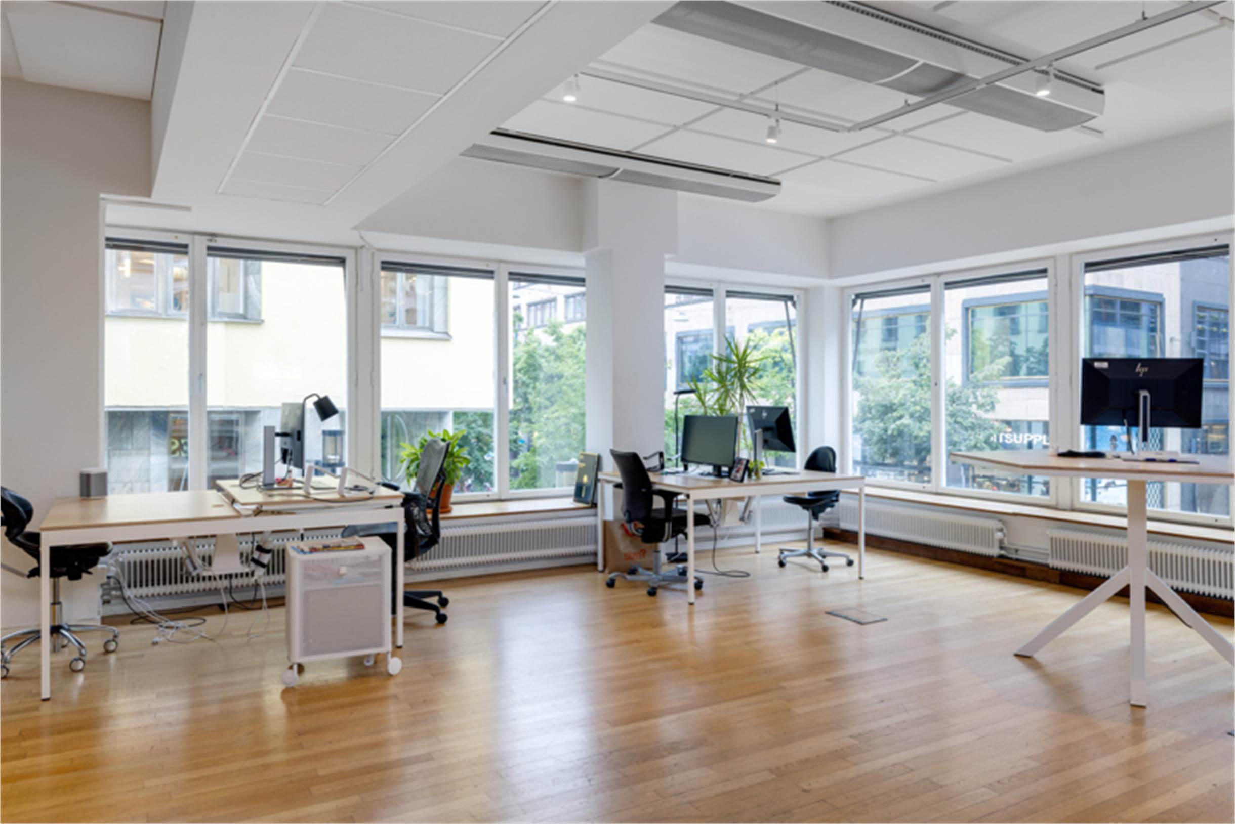 Kontoret ligger utmed Norrlandsgatan och Jakobsbergsgatan, med ett härligt ljusinsläpp runtom hela kontoret. Flertal konferensrum och mindre mötesrum utplacerade runt de öppna arbetslandskapen och en större loungeyta med riktigt kök för matlagning som man kan stänga till. Väl valda materialval och en genomtänkt planlösning som skapar en trivsam och inspirerande arbetsmiljö och representativ känsla.
