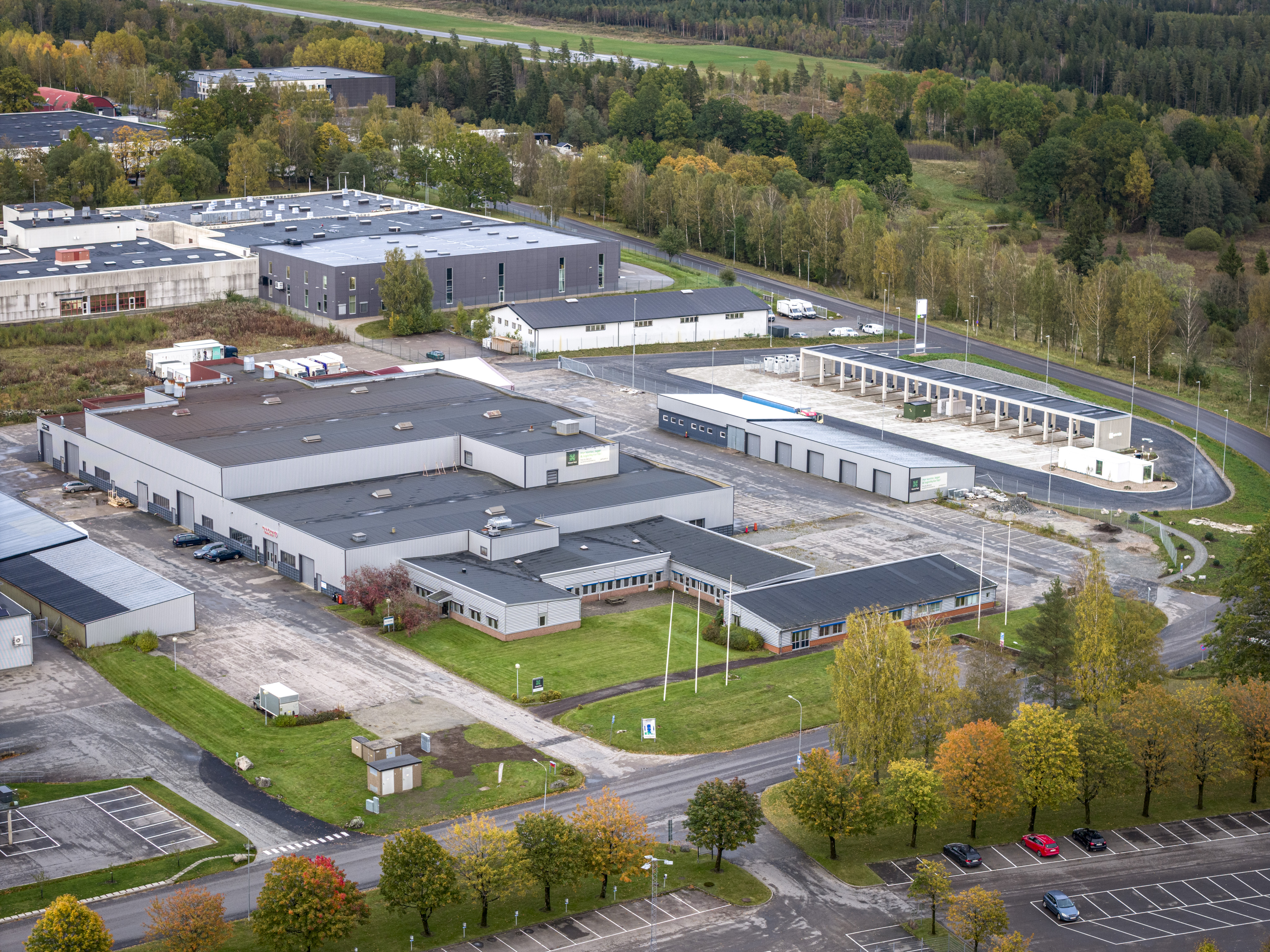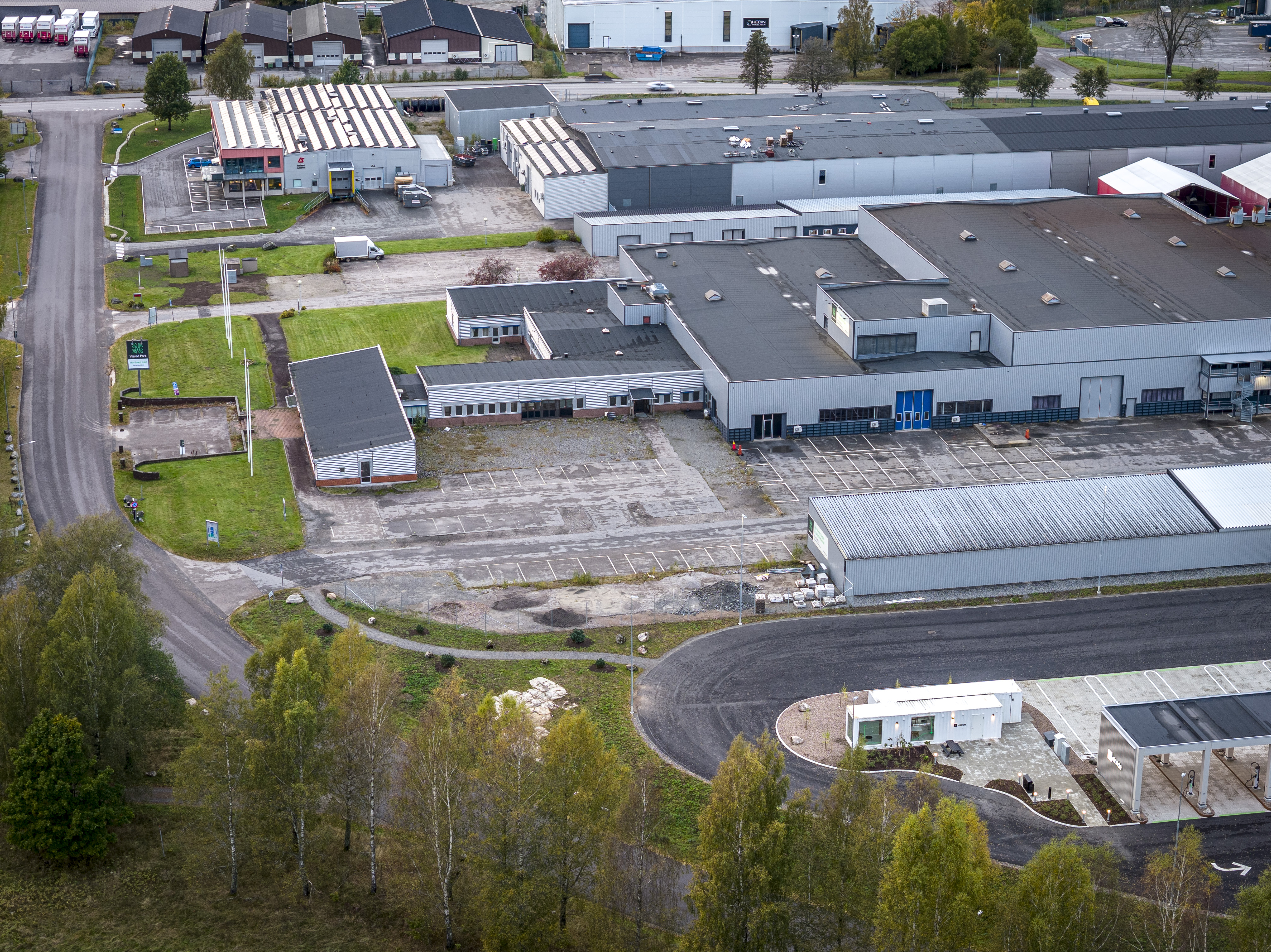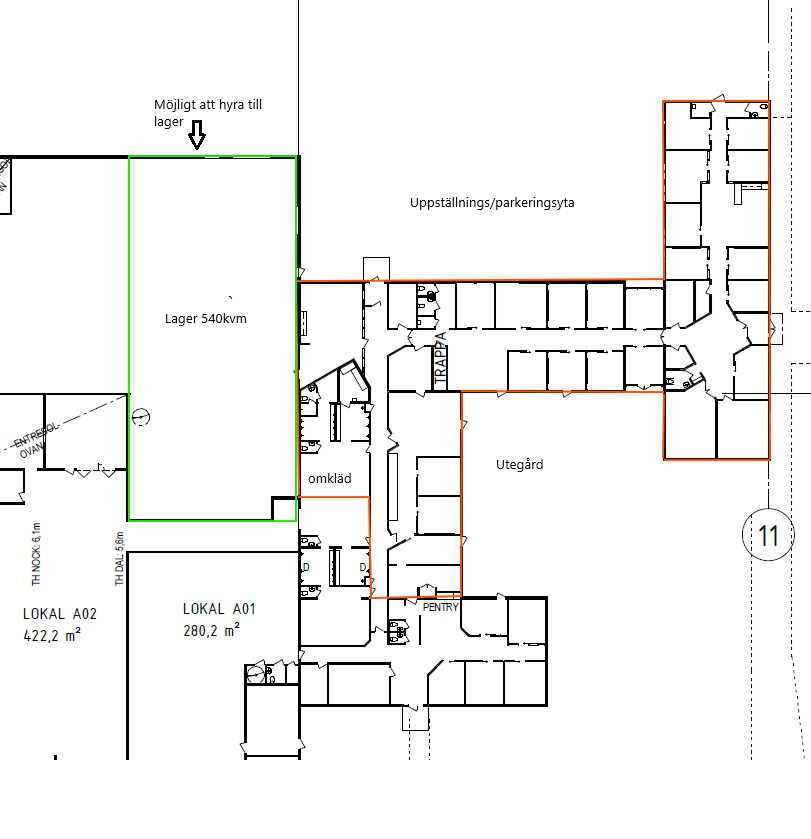 Fastigheten erbjuder goda parkerings- och uppställningsytor, personalutrymmen med omklädningsrum samt uteplats i direkt anslutning till lokalen. Laddpark för tung trafik finns i anslutning till fastigheten.