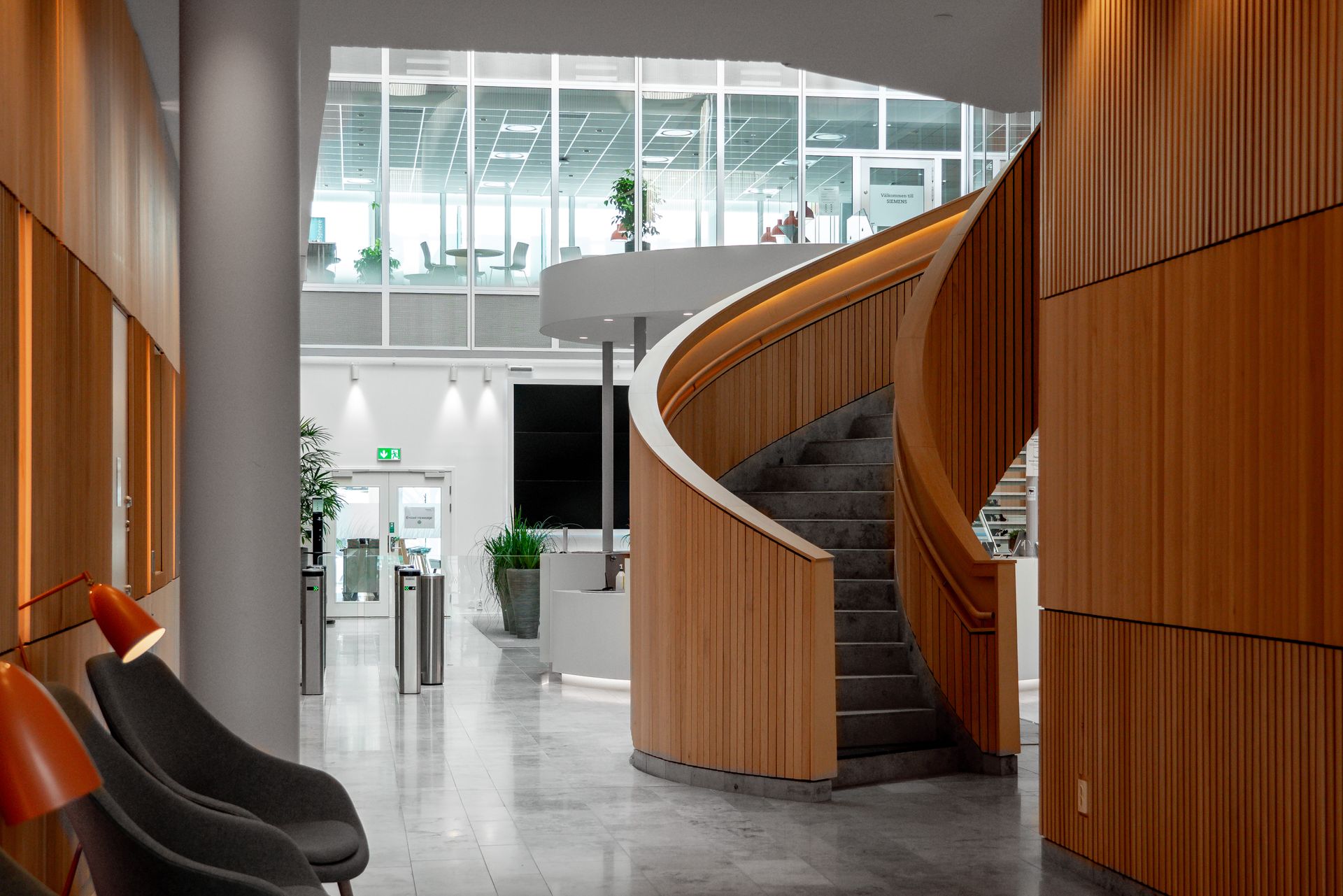 Rikligt med ljusinsläpp med stora fönster. Blandad planlösning med mycket öppenhet. Välkomnande, representativ entré längst Evenemangsgatan med rymd och takhöjd som imponerar, här finns gott om loungeyta. Material och inredning är valt med omsorg och får en att trivas!