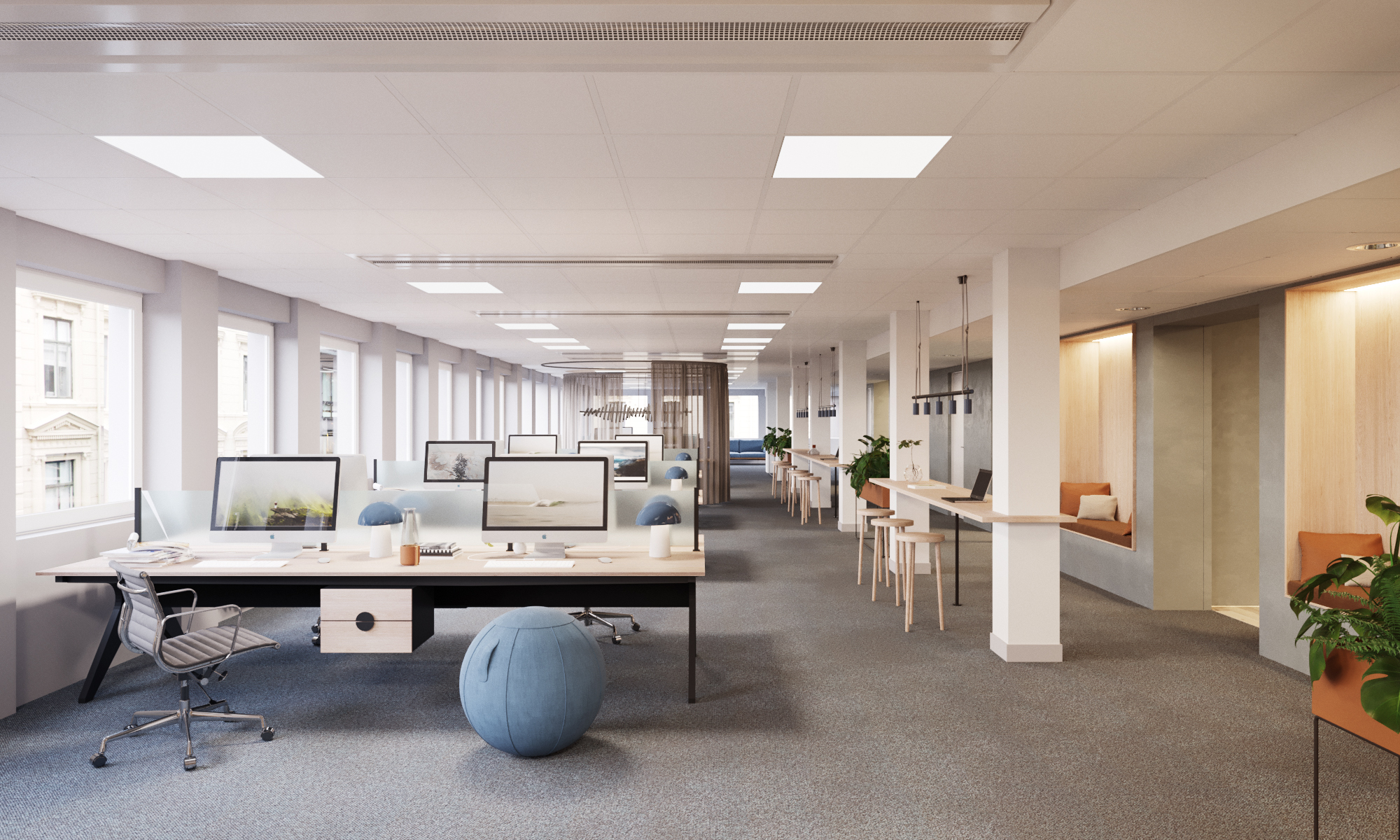 Lokalen kommer renoveras inför inflytt. Planösningen är flexibel och graden av konferensrum, samtalsrum och enskilda rum kan anpassas för att göra ytan så effektiv som möjligt utifrån era behov. Bifogad ritning är förslag på möjlig planlösning för 35-40 medarbetare, men vi ritar gärna om lokalen utifrån era önskemål!