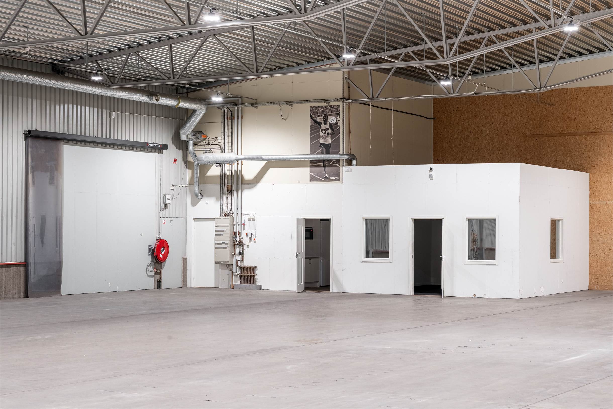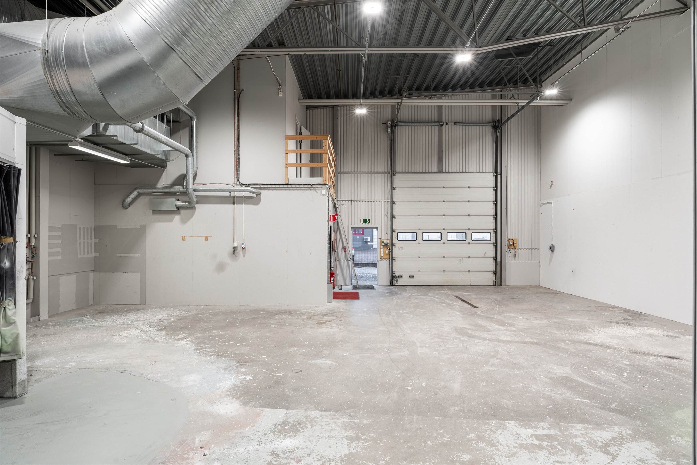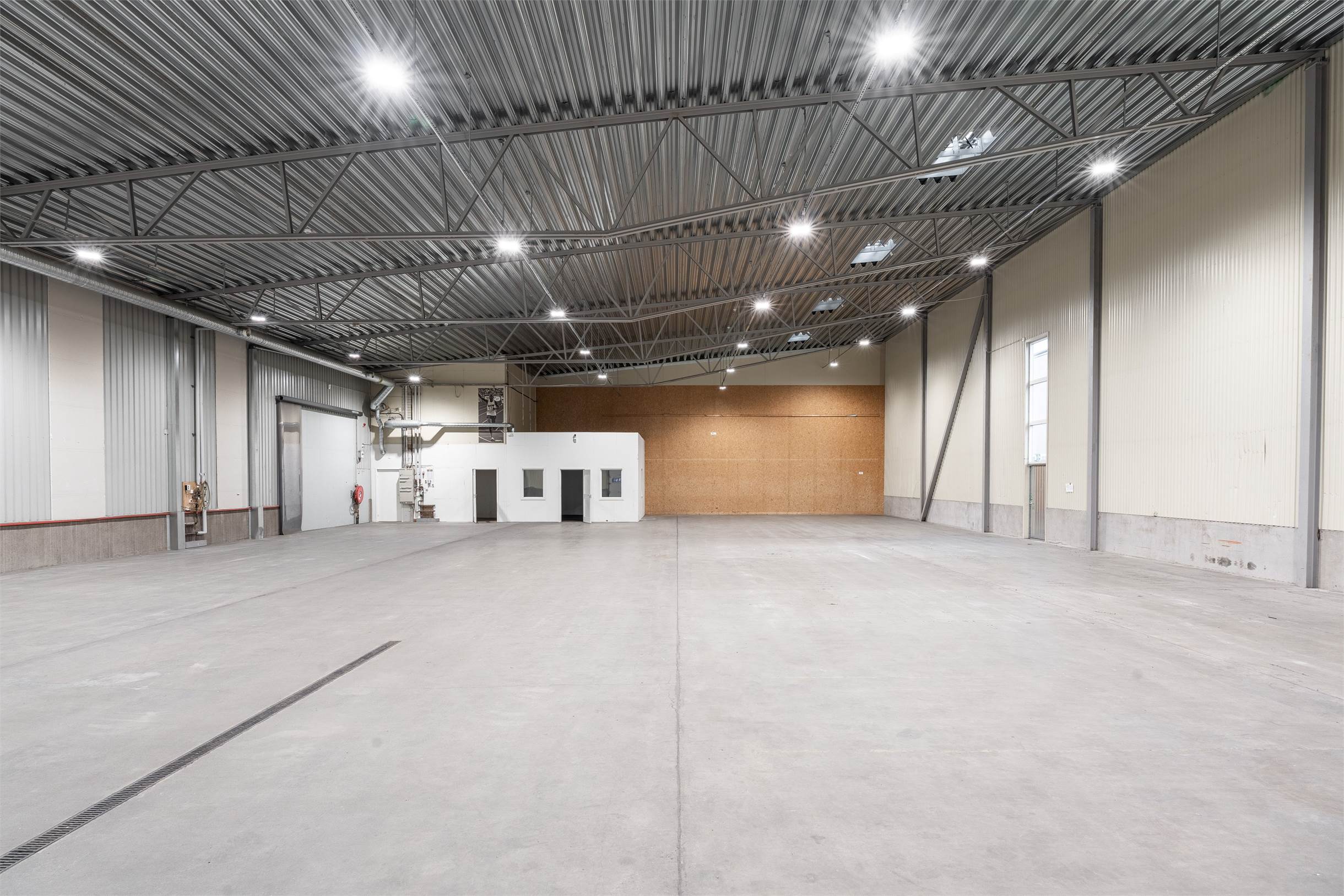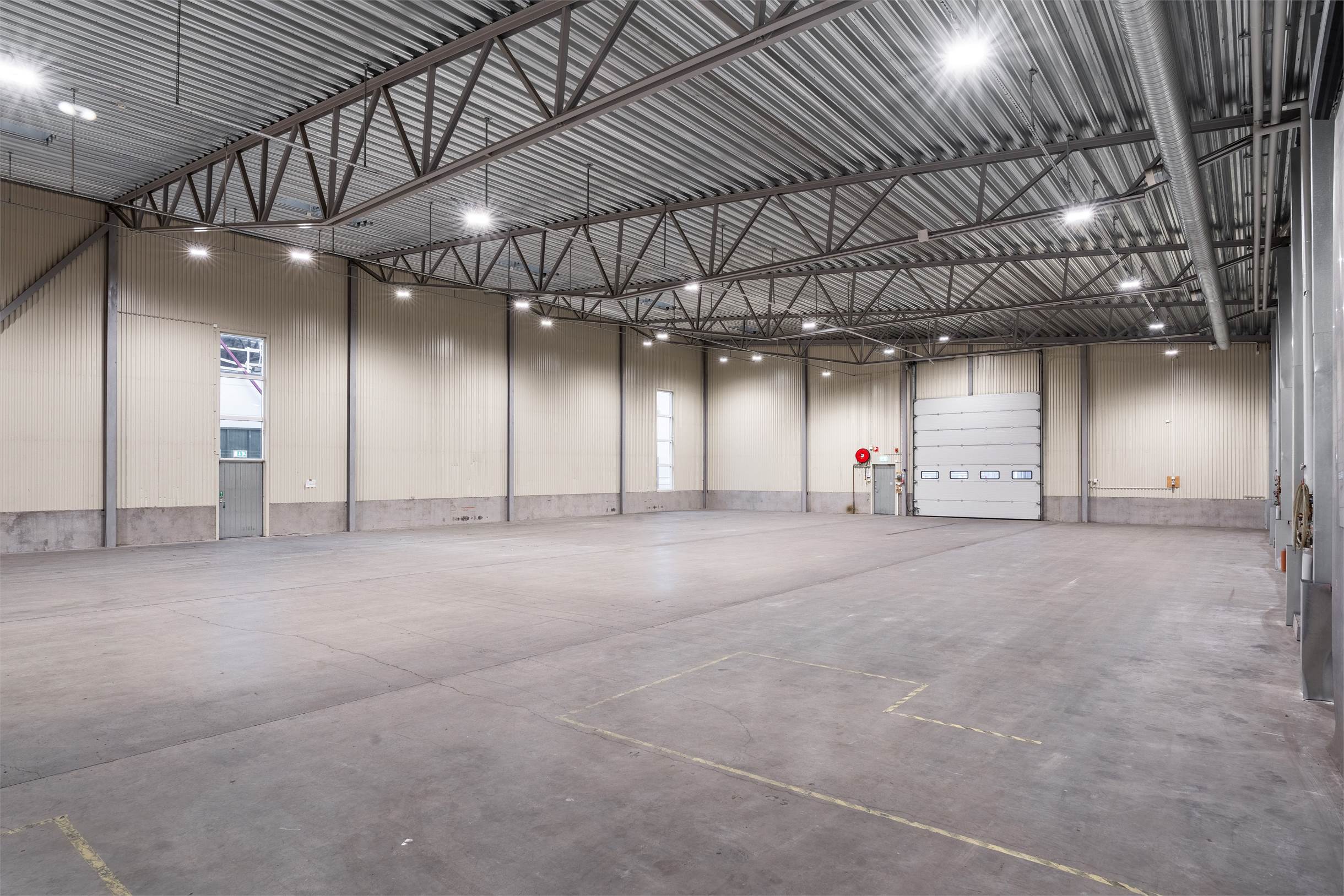 Fastigheten består av rymliga lagerhallar på markplan med: