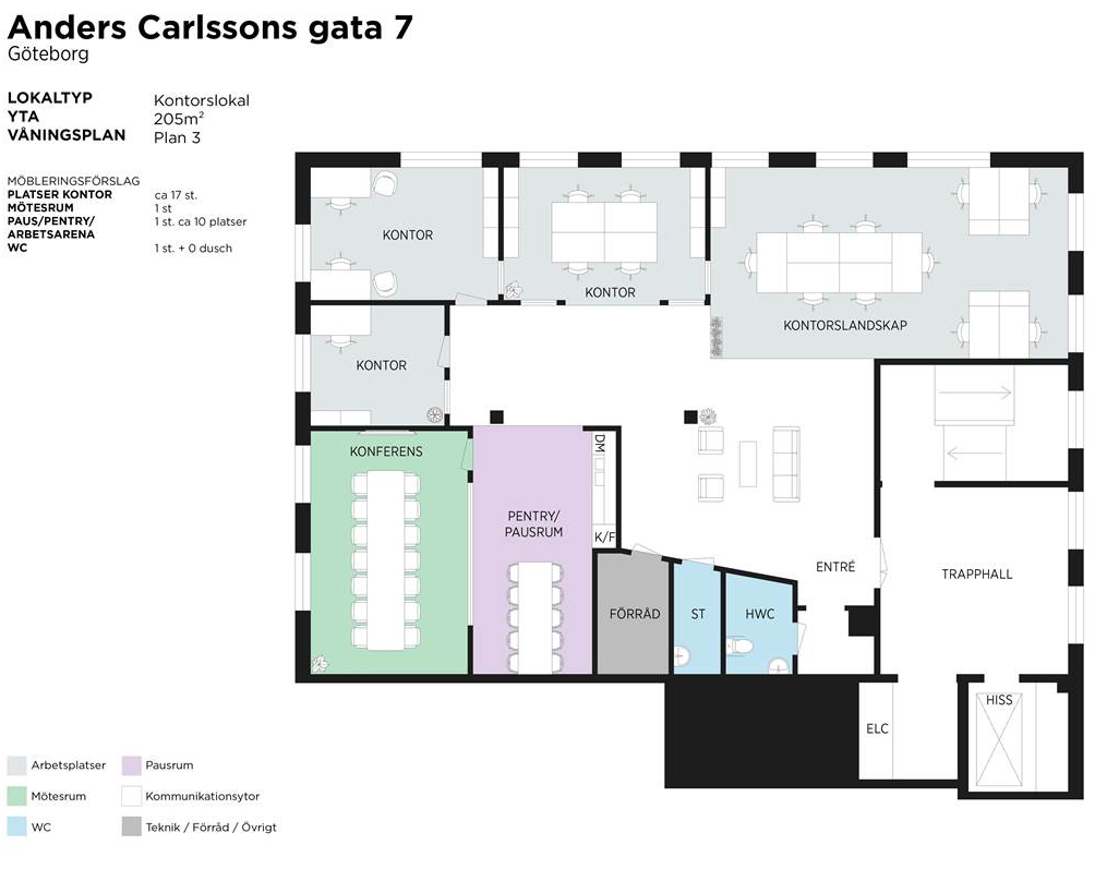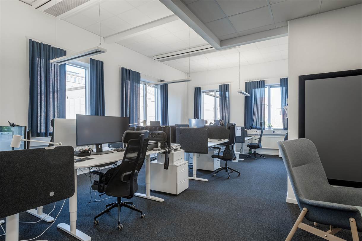 Lokalen ligger på plan 3 och erbjuder en flexibel planlösning med öppna ytor för gemensamt arbete, kompletterat med flera större och mindre rum som kan användas som kontor, mötesrum eller kreativa projektutrymmen. Ljusa ytor, modern standard och hiss i huset skapar en trivsam och funktionell arbetsmiljö.