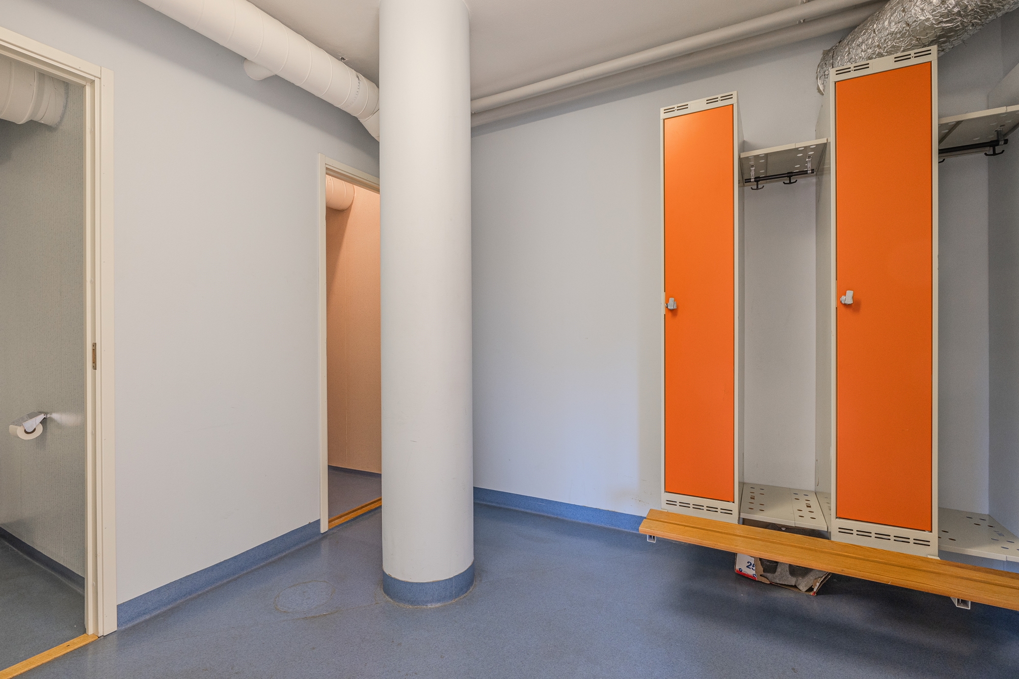 Här (i 'kontorsdelen')finns även en omklädningsdel med WC och dusch, perfekt för dig som önskar träna på lunchen eller cyklar till jobbet t.ex.