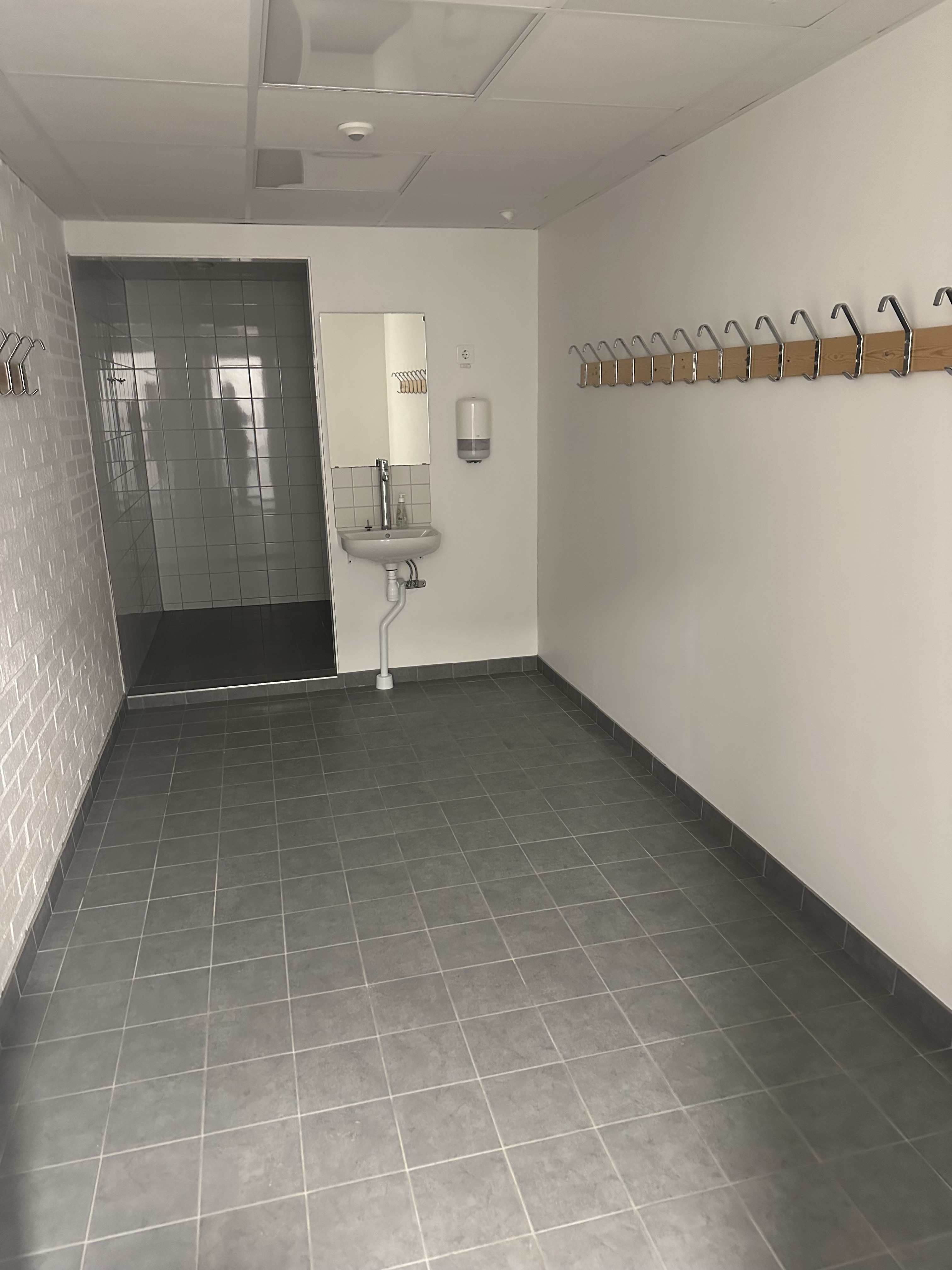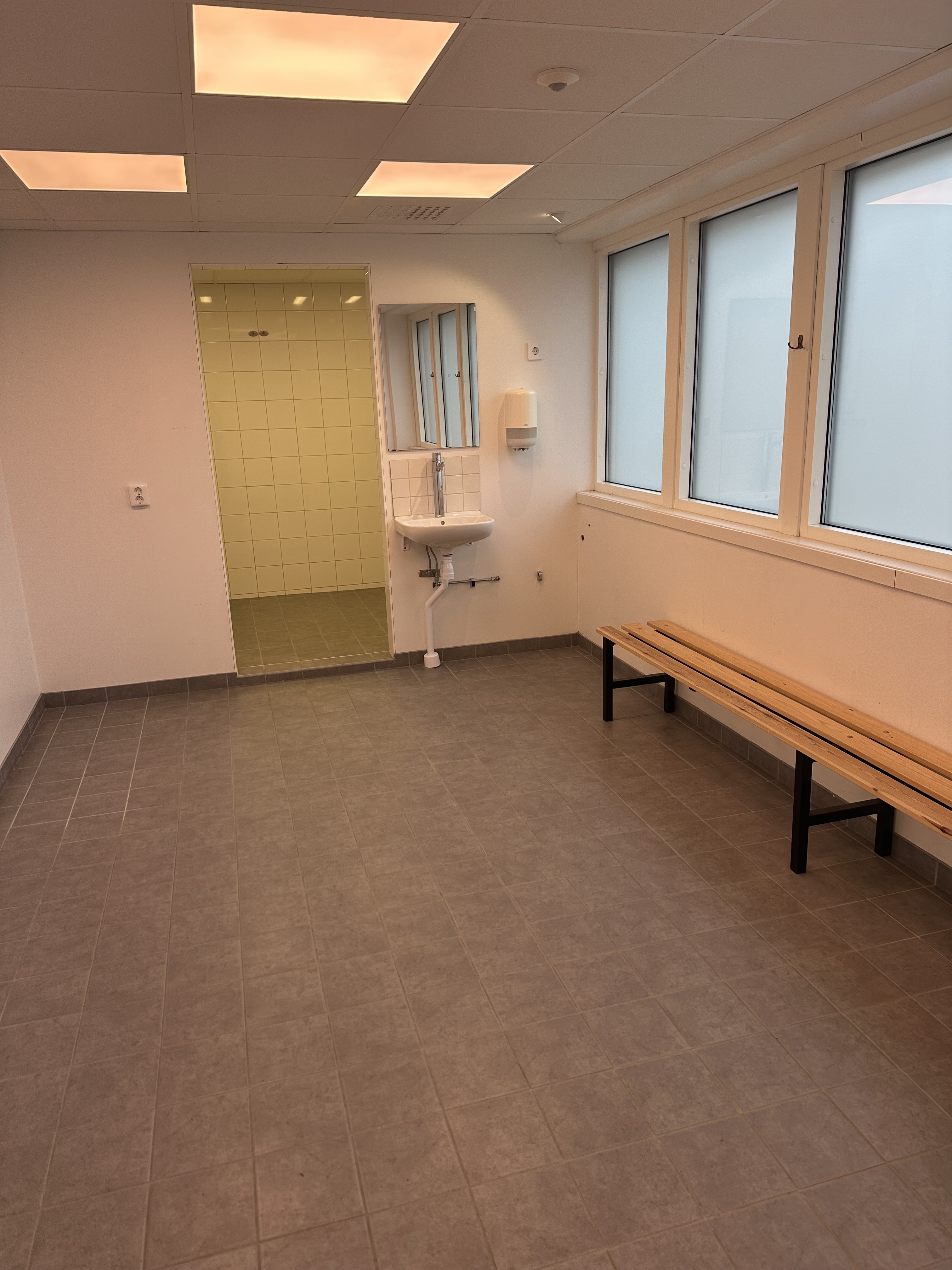 Här finns även kontorsytor och nyrenoverade omklädningsrum för herr och dam samt ett stort pentry..