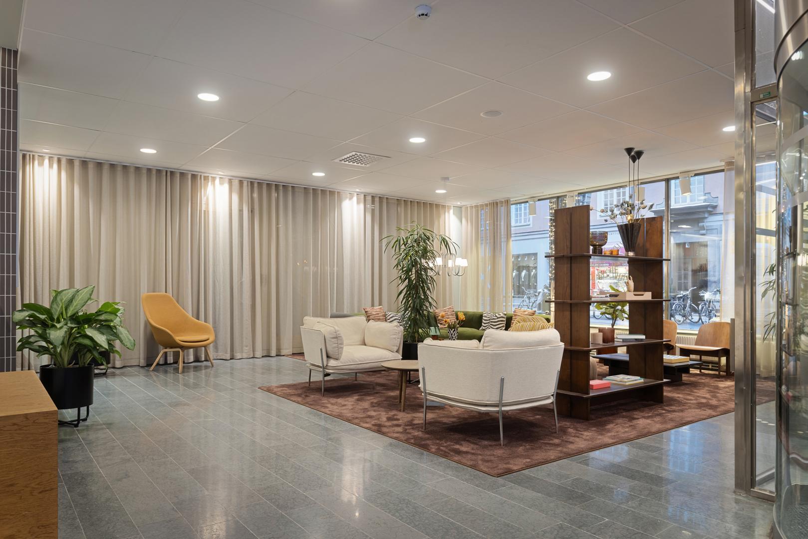 I entrén Drottninggatan 89 finns en gemensam receptionen där du kan boka konferensrum, köpa en Cappucino eller en enklare lunch liksom även beställa kontorstjänster i ett stort utbud.