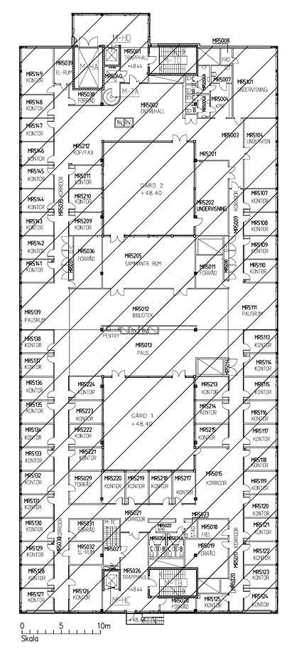 Tillgängligt kontor upp till ca 1820 m² beläget högst upp i byggnaden med bekväm access via hiss och trapphus. Planlösningen utgörs av cellkontor, mötesrum samt ett socialt pentry i öppen lösning. Det är möjligt att dela av ytan till mindre lokaler.