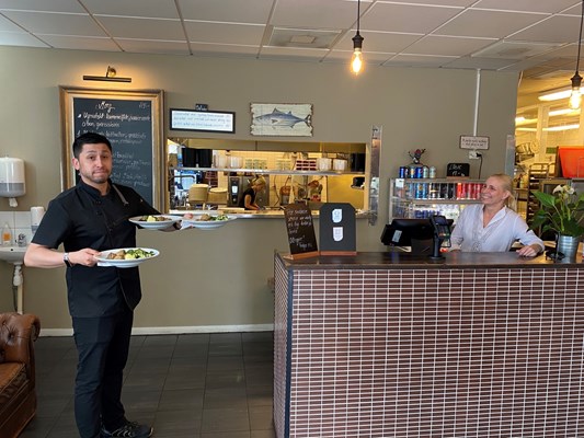 Restaurang finns i samma fastighet.