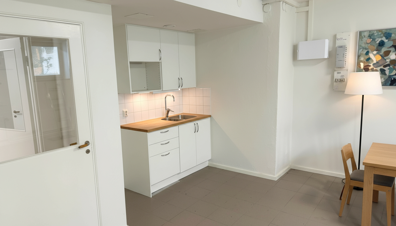 Lokalen om 82 m² är belägen i källarplan och har stora fönster som ger generöst ljusinsläpp. Planlösningen är öppen och lätt att anpassa efter verksamhetens behov, kompletterad med rymliga sociala ytor, pentry och WC.