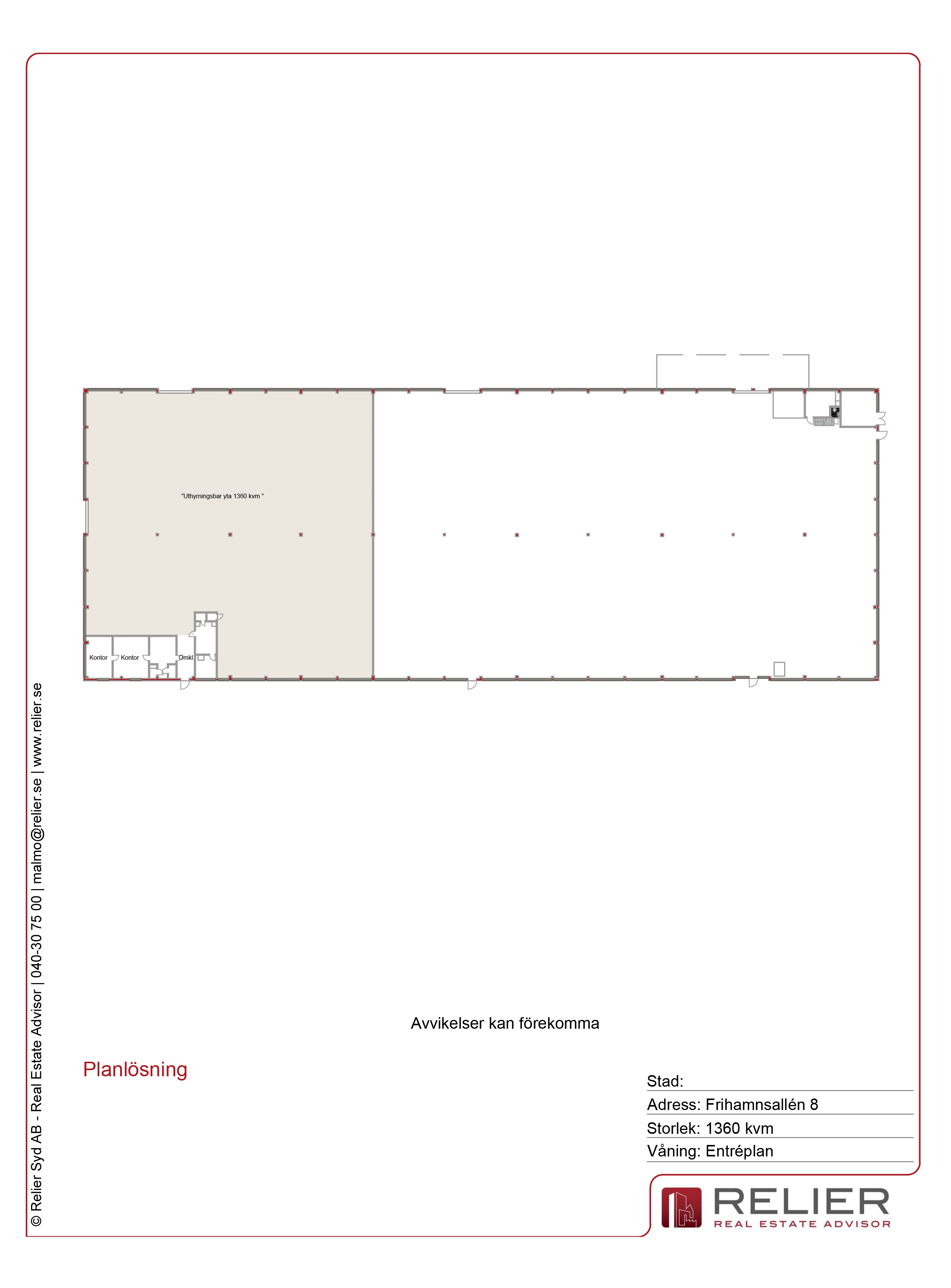 Nu finns möjlighet att hyra en välplanerad lagerlokal på 1 360 kvm med hela 6,9 meters takhöjd till balk, vilket ger utmärkta möjligheter till höglagring. Lokalen är utrustad med två generösa markportar som underlättar smidig in- och utlastning. På baksidan finns även en praktisk uppställningsyta som passar för containrar eller annan hantering.