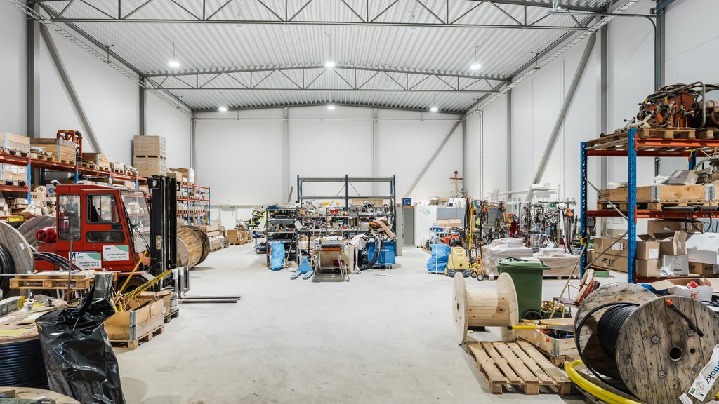 Till fastigheten hör även en lagerbyggnad med praktiska markportar som underlättar in- och utlastning. Utomhus finns en inhägnad uppställningsyta som ger goda möjligheter för förvaring eller logistik.