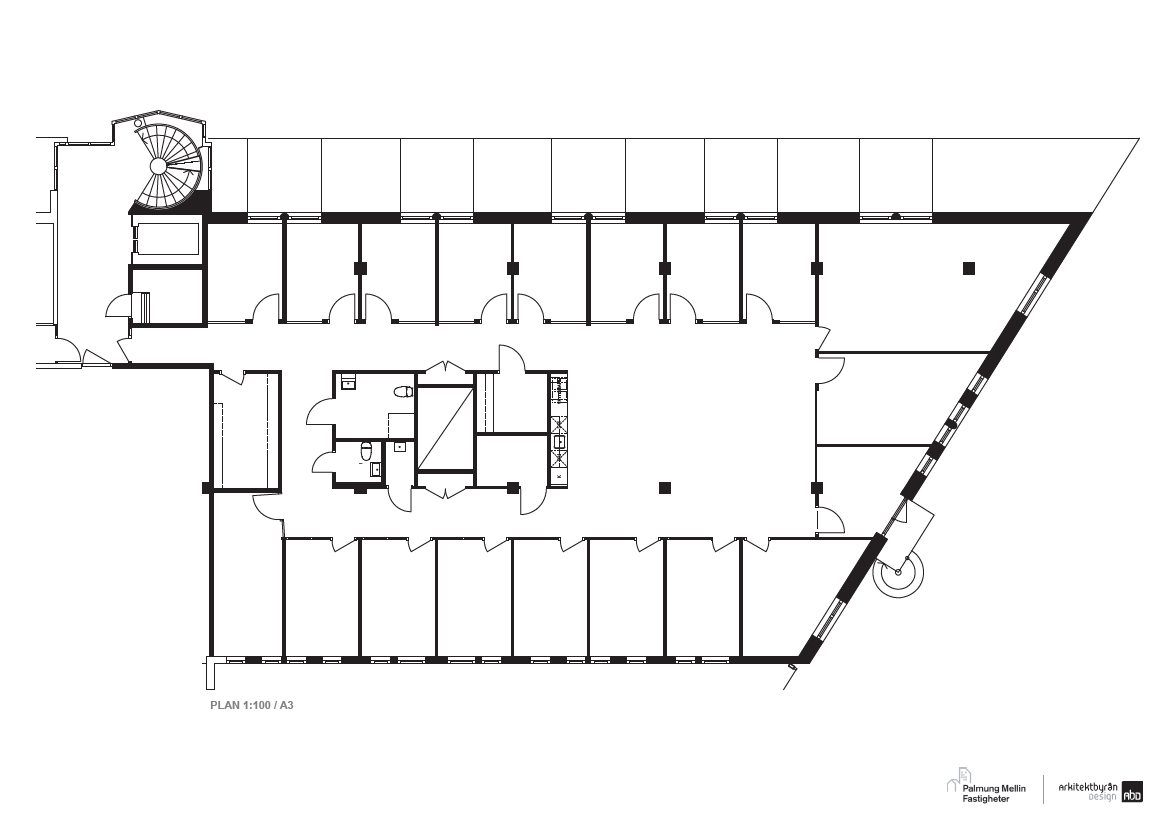 Ytan består av 16 enskilda kontorsrum, två konferensrum samt ett samtalsrum. Det finns även ett förråd, ett kopierings/skrivarrum samt IT-rum. Köksdelen är rymlig och erbjuder gott om matplatser. Det finns även två WC, varav ett även har dusch.