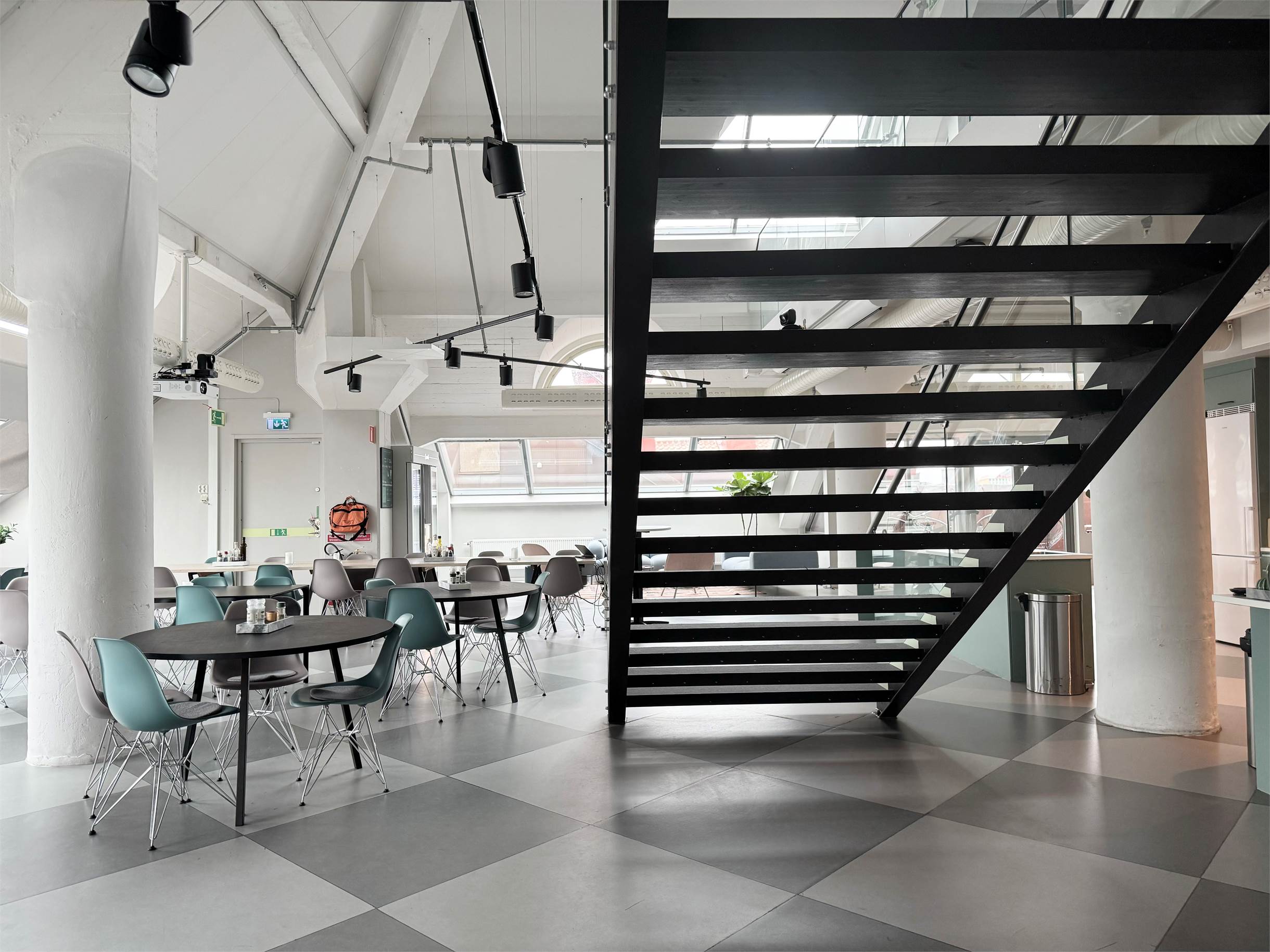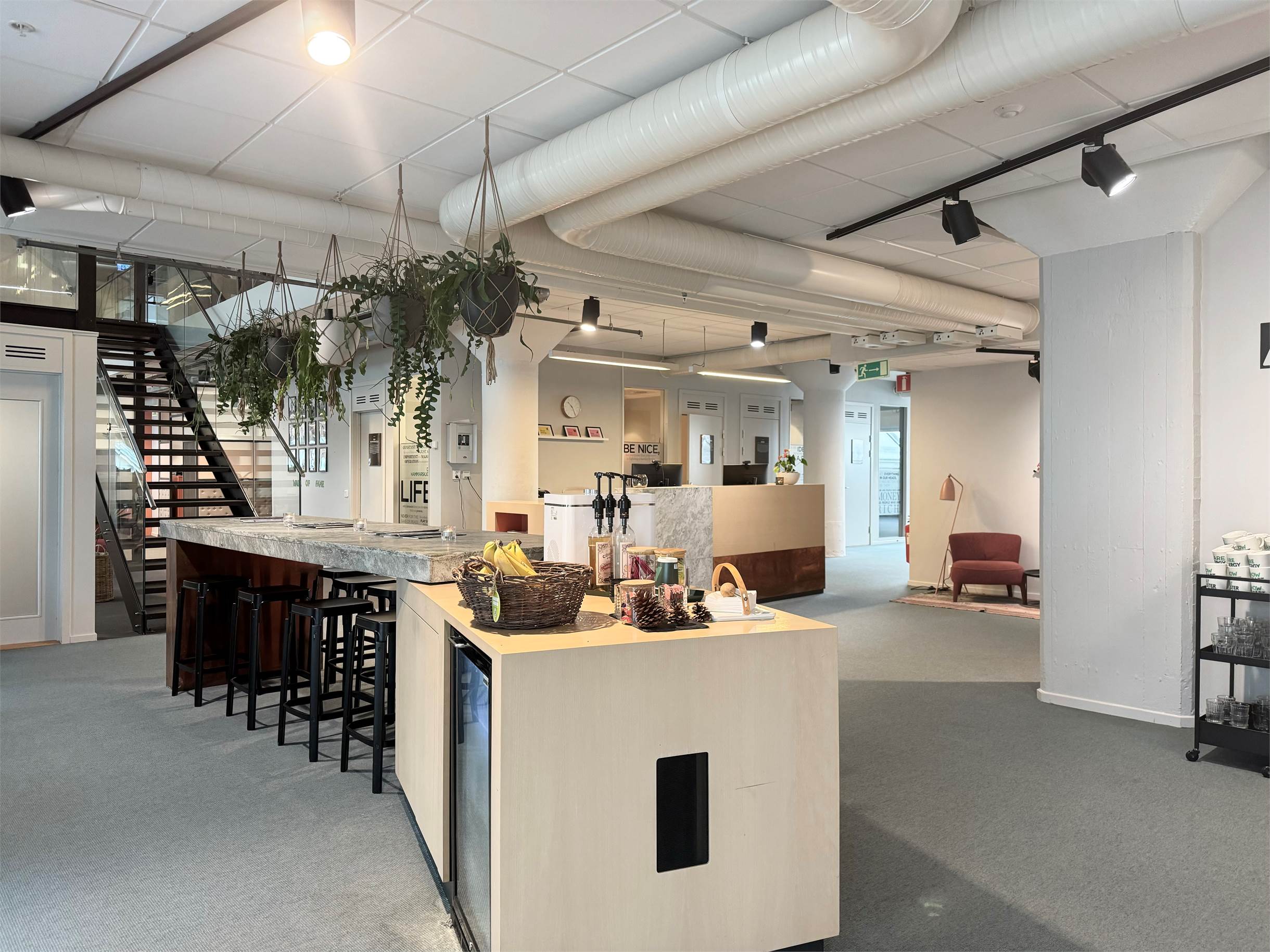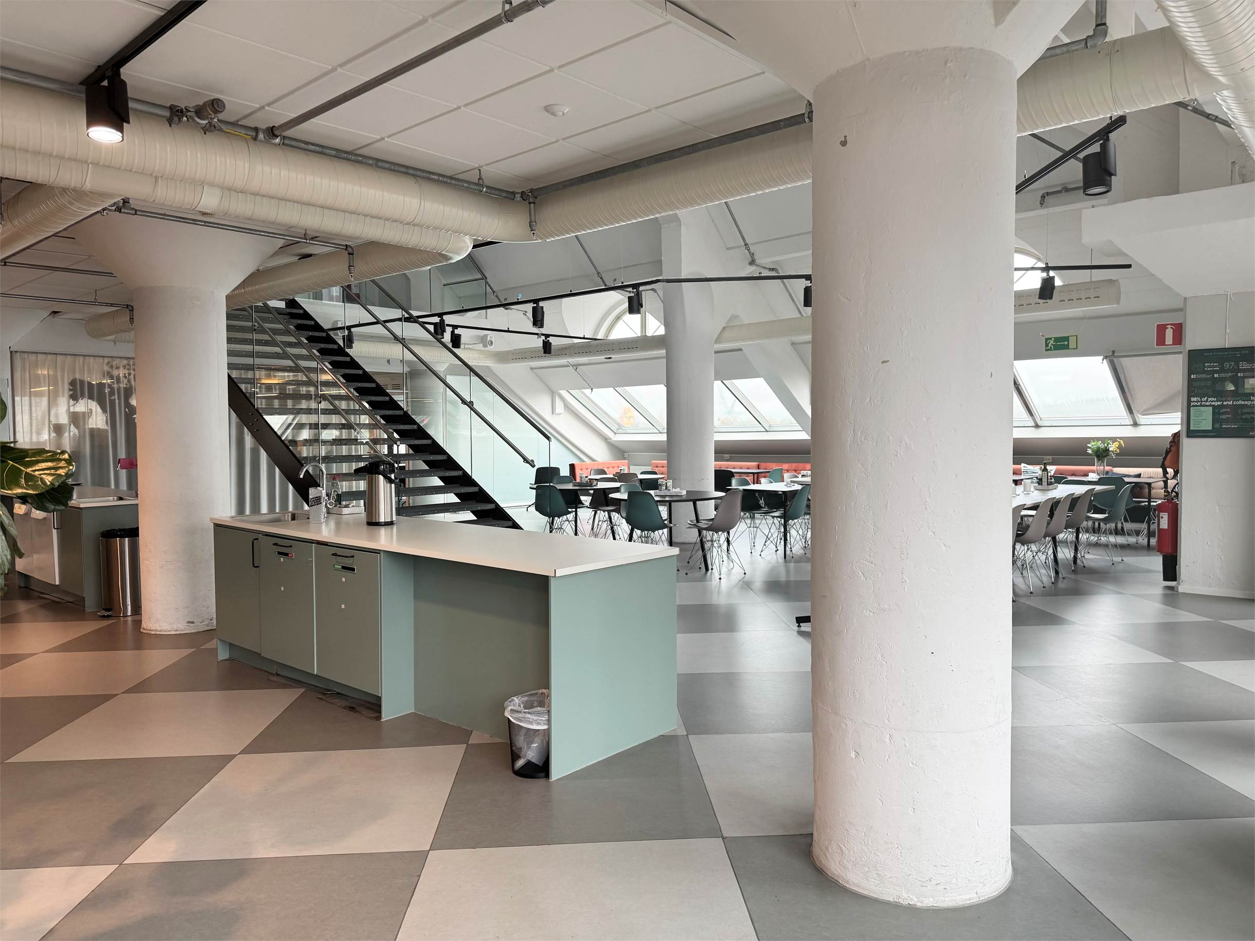 Lokalen omfattar totalt 1 277 kvm och är fördelad på två plan. Planlösningen är genomtänkt och erbjuder en modern, ljus och luftig miljö som inbjuder till både fokus och gemenskap.