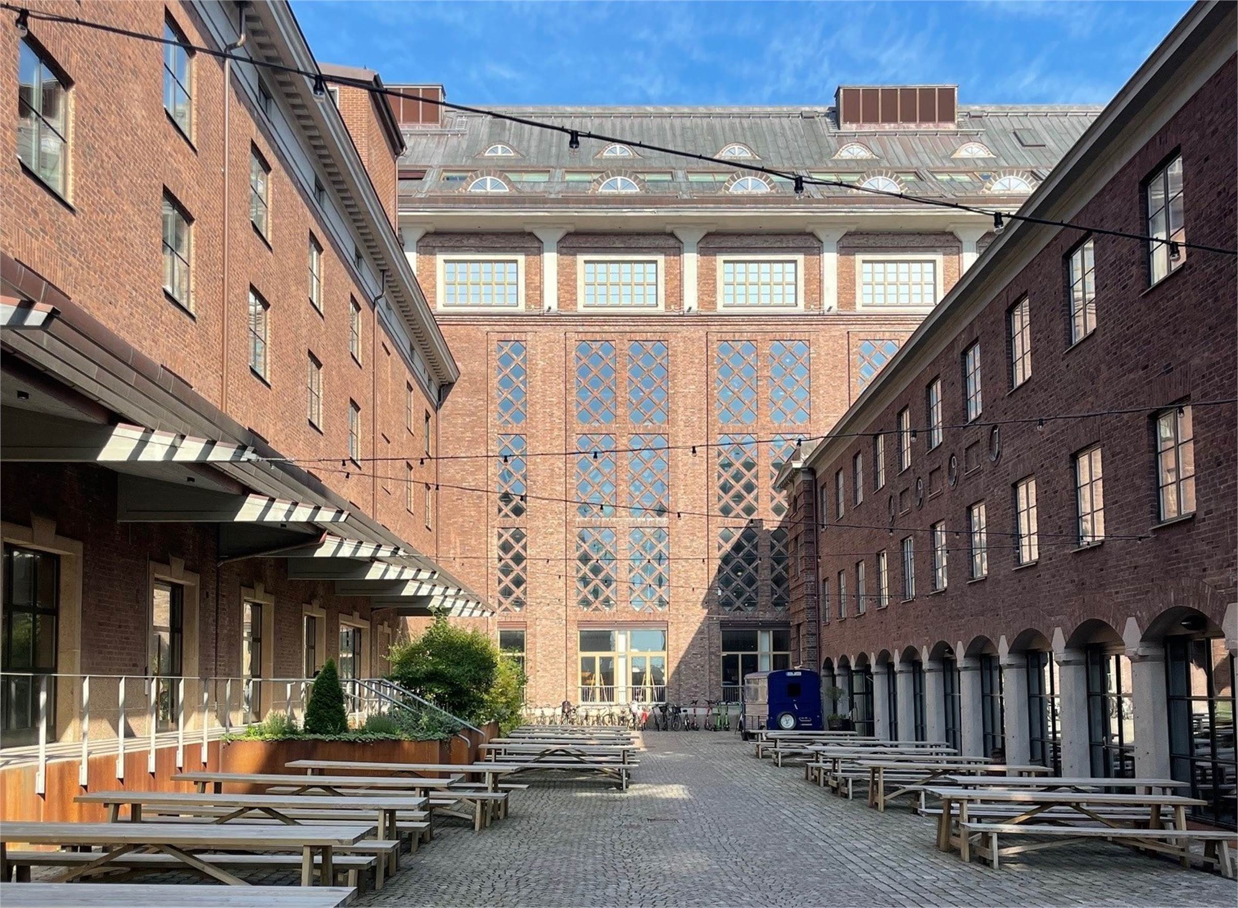 Trevliga lunchrestaurangen Pagoden ligger i bottenplan av huset, och det finns ytterligare en lunchrestaurang som heter Monopolet precis utanför på gården, samt flera andra i närheten.