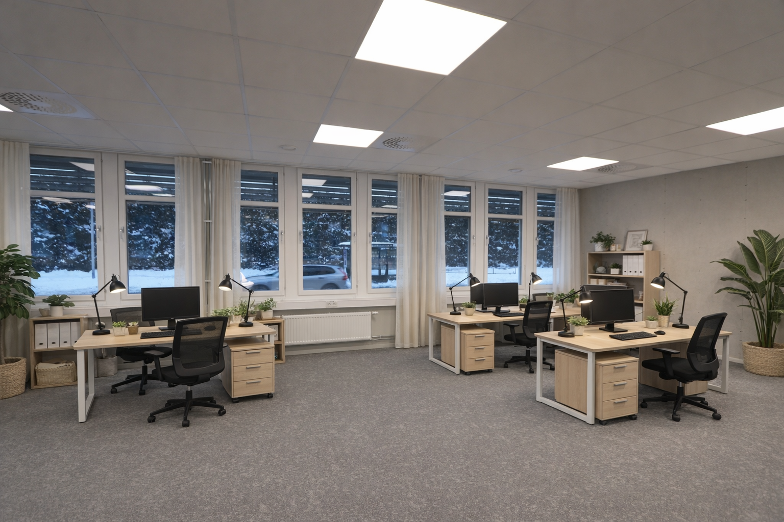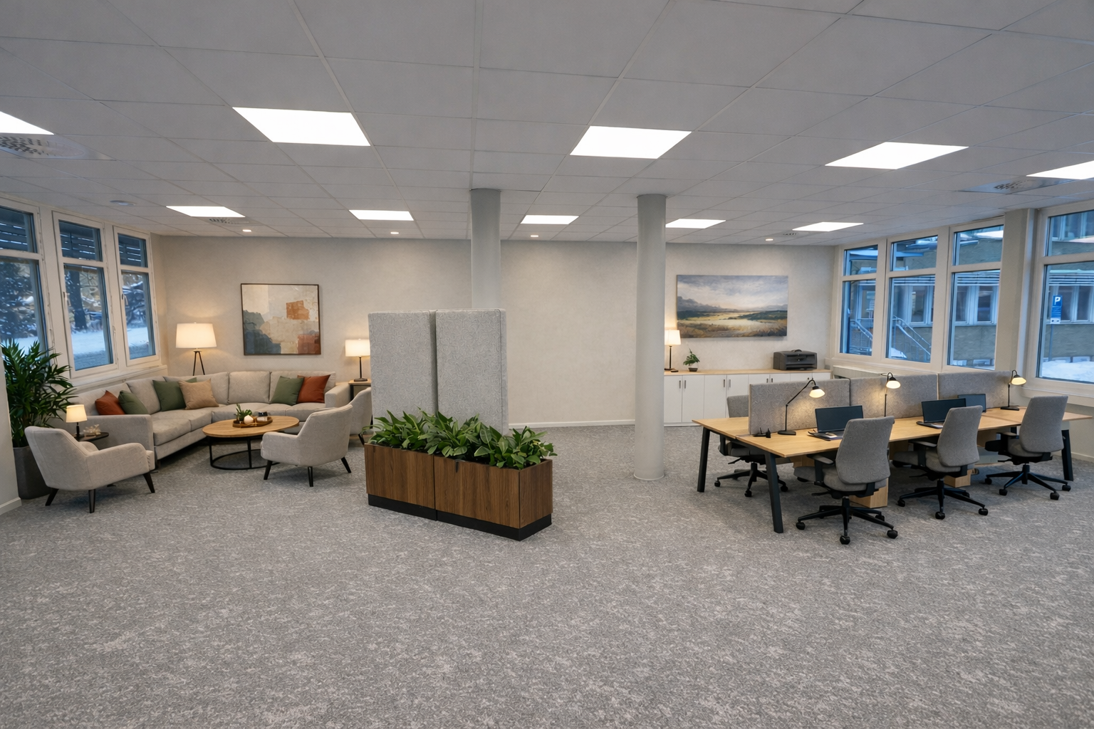Kontorslokalen har bra inomhusmiljö med god ventilation samt kyld tilluft. Man når lokalen via trapphus eller lastbrygga/uteplats med god tillgänglighet.