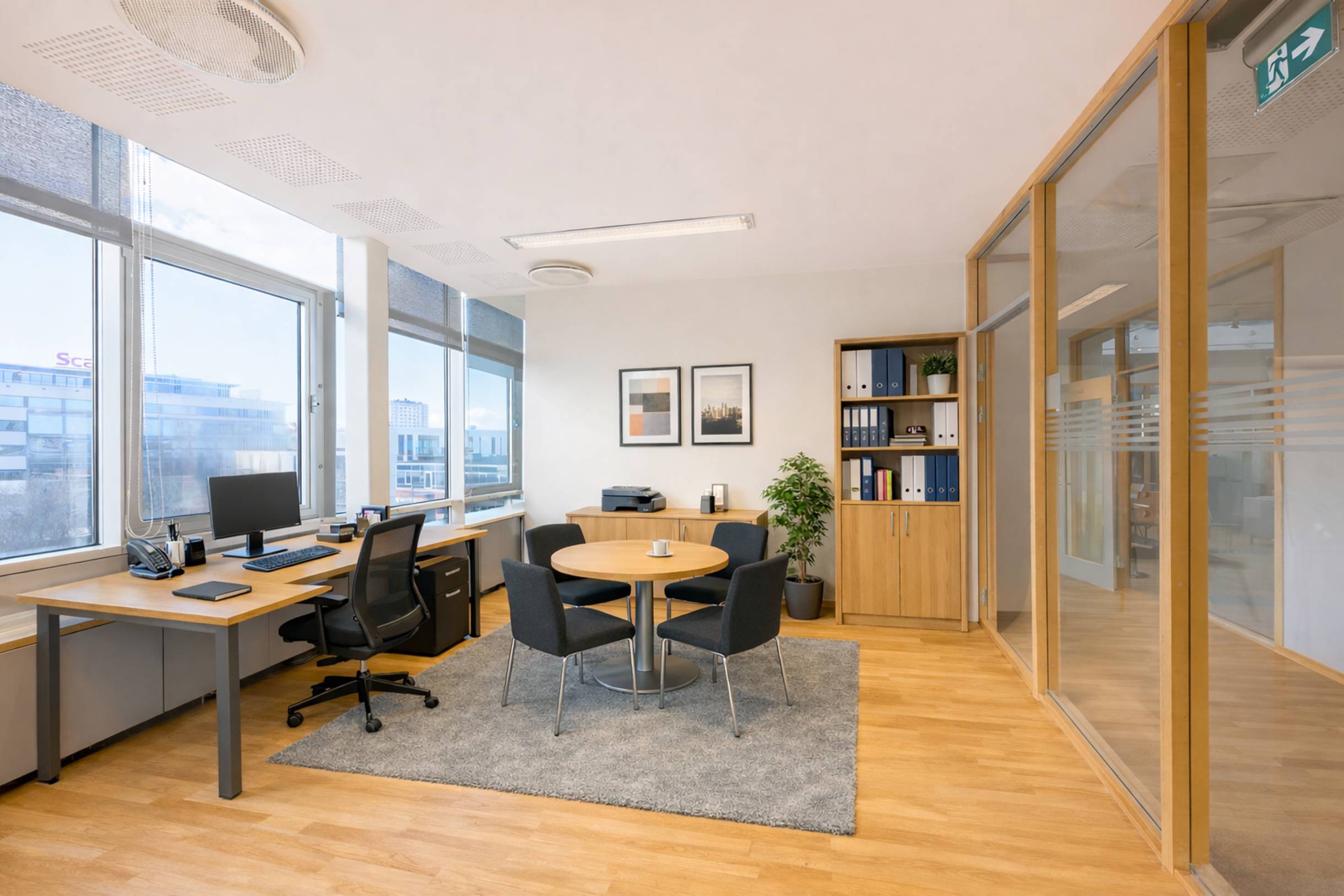 Välkommen till en trevlig kontorslokal med mycket fönster som ger naturligt ljus in.