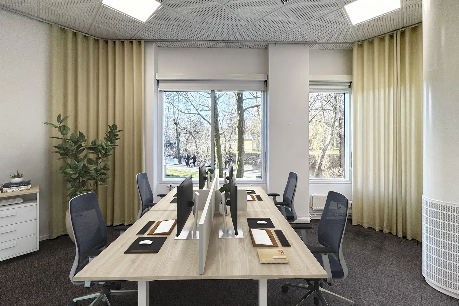 Välkommen till ett stilfullt och rymligt kontor om 27,5 kvm, beläget på entréplan i Technopolis Ullevi. Lokalen präglas av stora fönster, 3 meters takhöjd och utsikt över både Mölndalsån och de gröna omgivningarna, vilket skapar en inspirerande och trivsam arbetsmiljö.