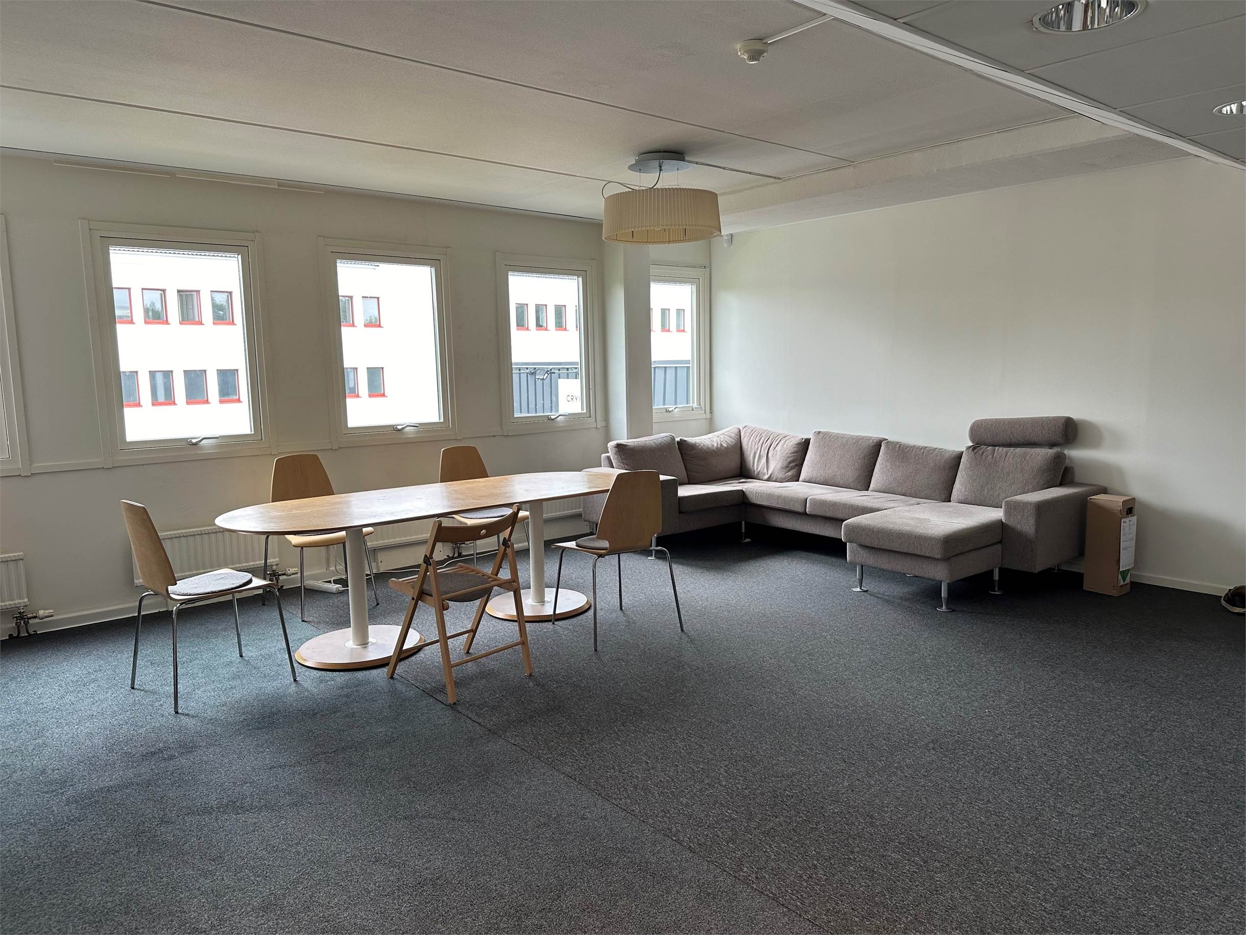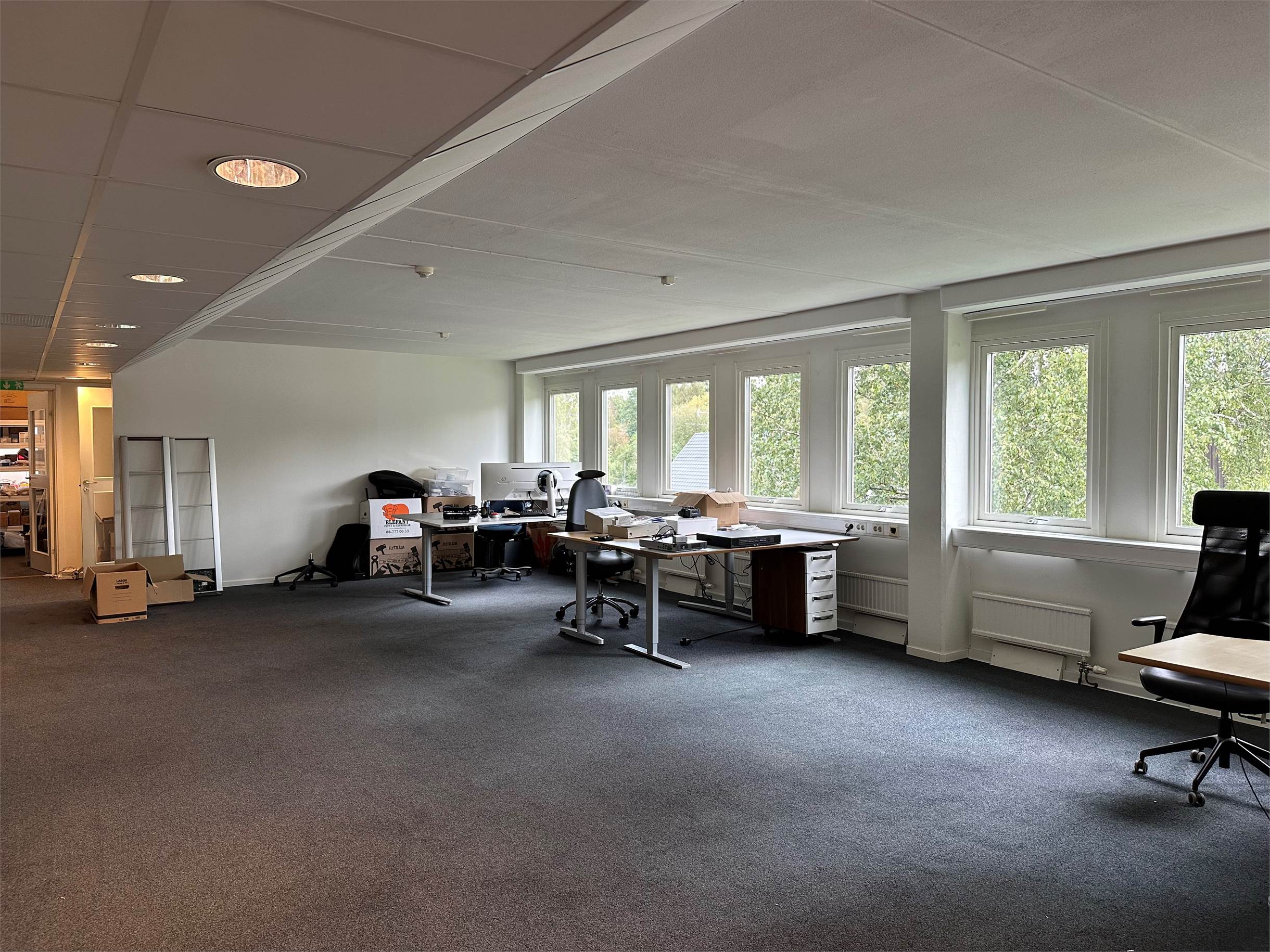 Lokal med stor och öppen entré med kök, som leder till en öppen yta för exempelvis kontorslandskap. Utöver det finns flera kontorsrum.