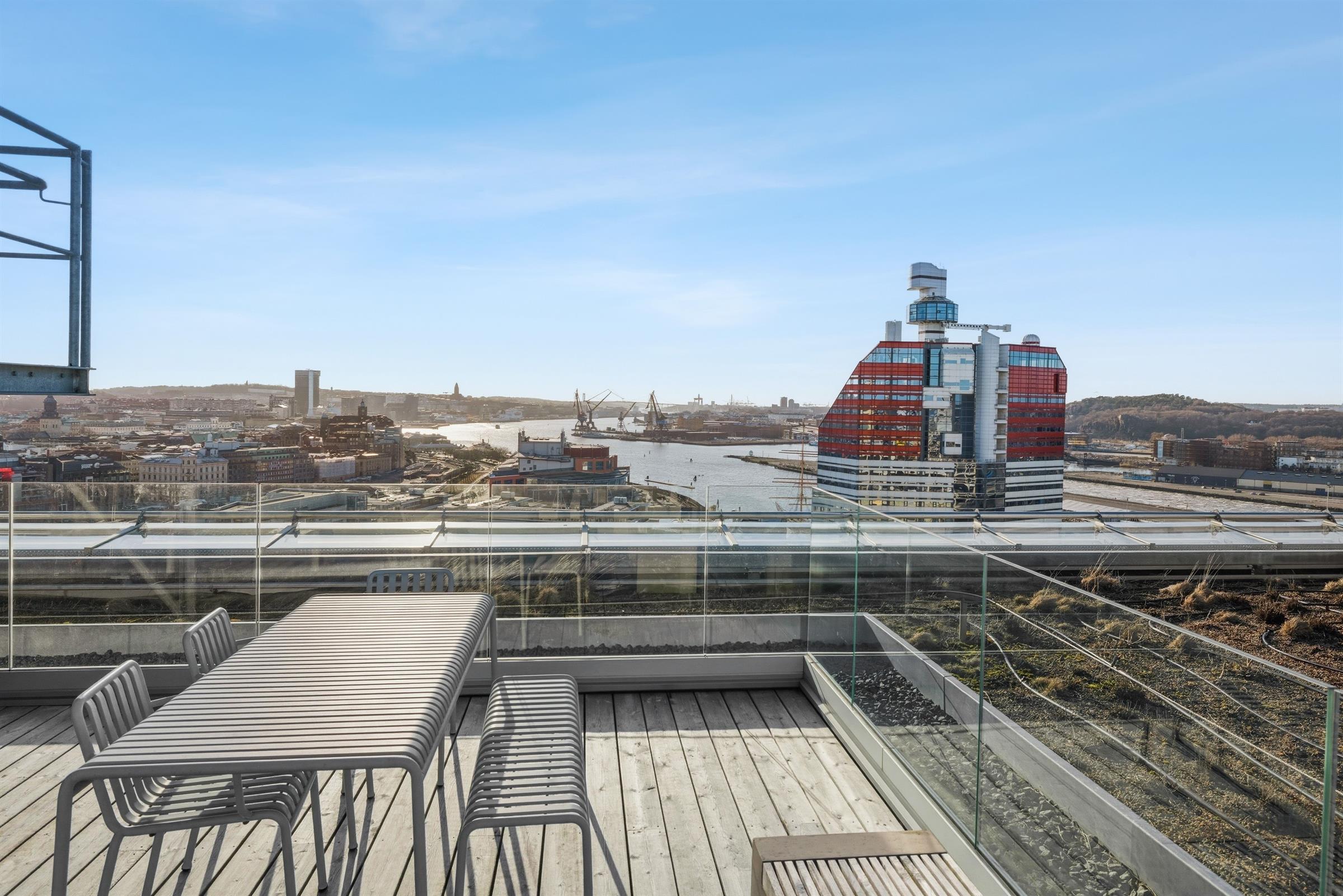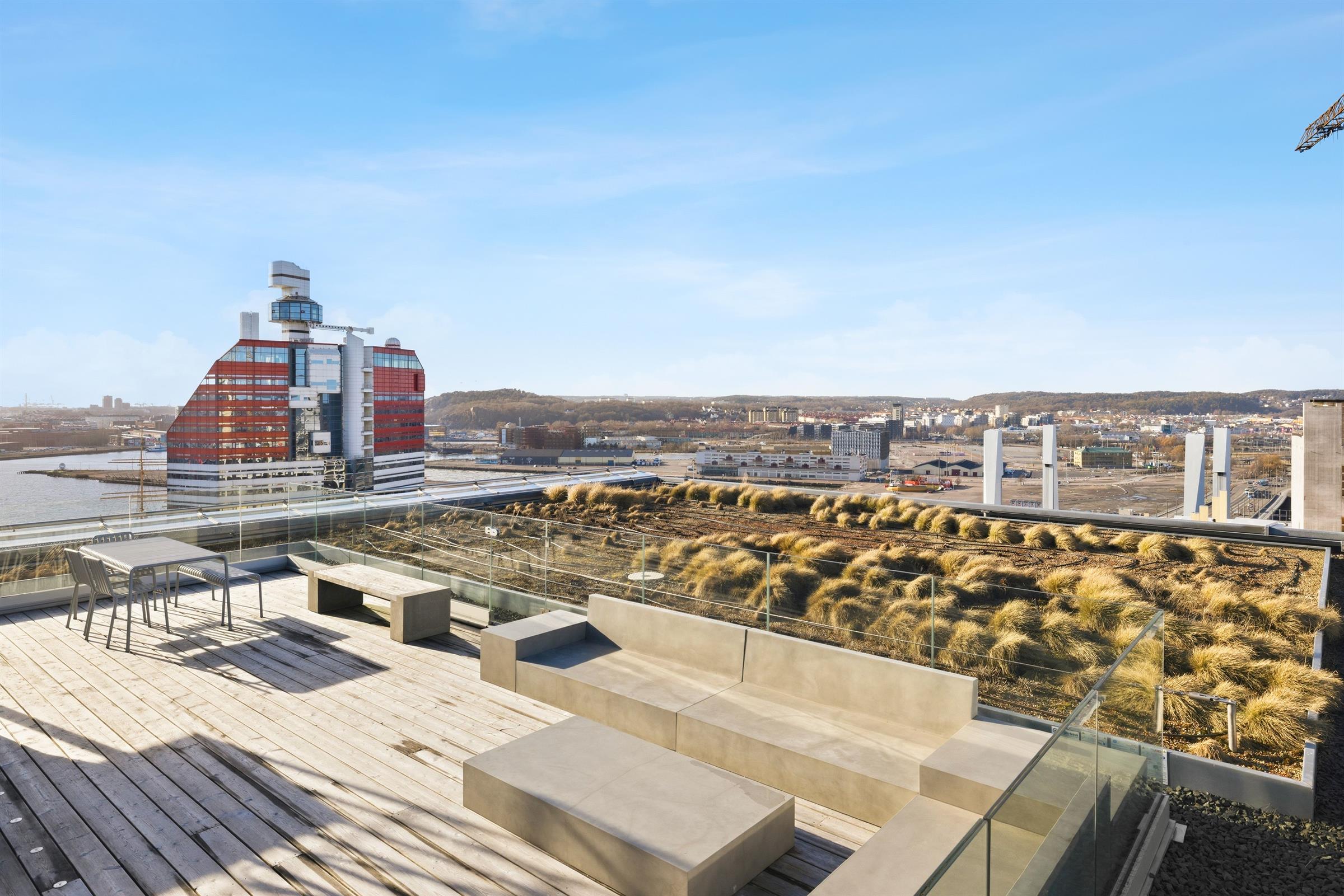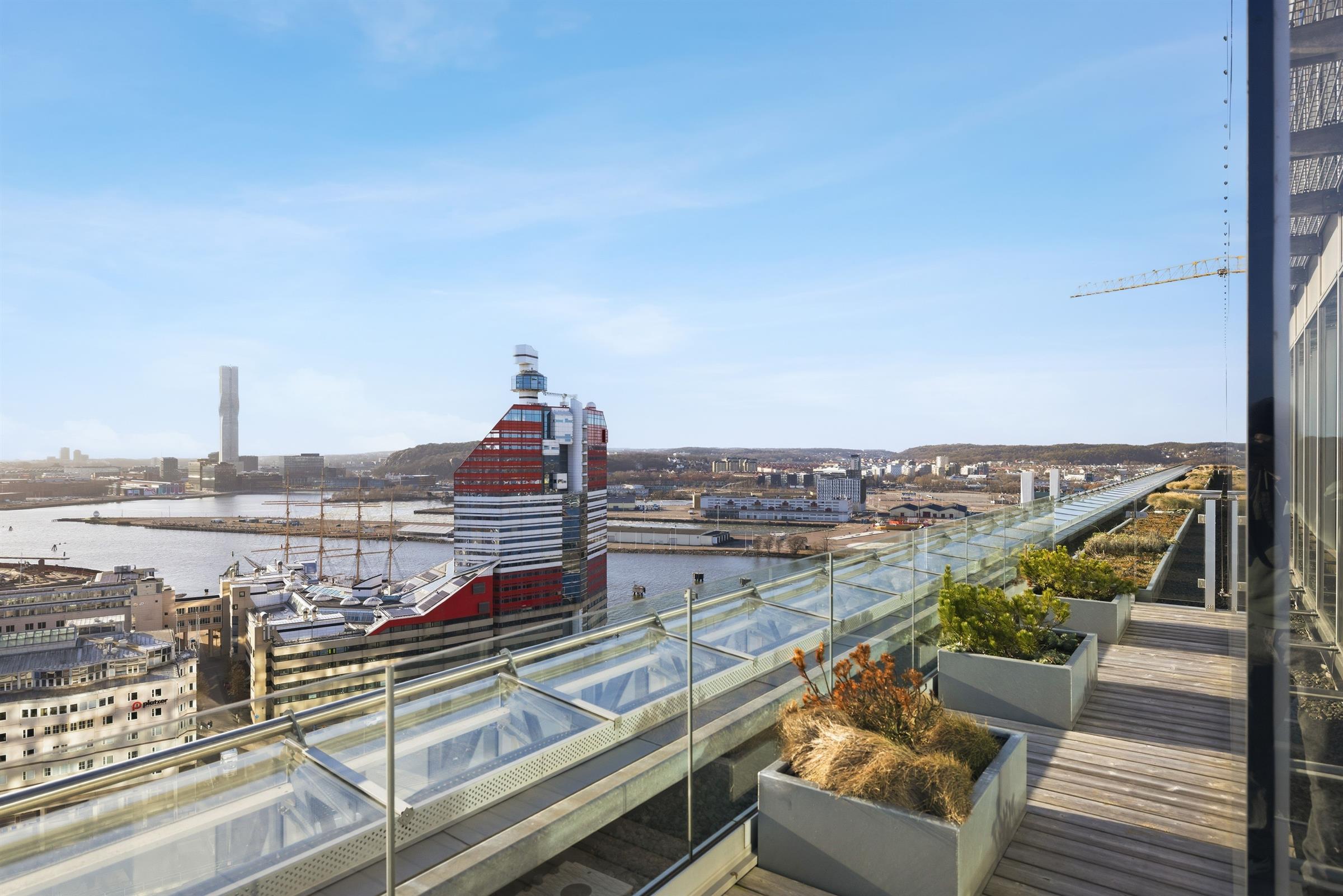 Kontorslokal med utsikt över Göteborg På sextonde våningen, i Platinans toppskikt, erbjuds ett modernt kontor med en av Göteborgs mest storslagna utsikter och tre privata terrasser i olika väderstreck. Lokalen passar företag som söker ett representativt kontor i ett av stadens mest spännande framtidsområden. Välplanerad yta med balans mellan öppenhet och avskildhet Lokalen erbjuder generösa gemensamhetsytor, en välkomnande reception samt mötesrum i varierande storlekar för upp till 12 personer. Det öppna kontorslandskapet rymmer upp till 24 arbetsplatser, samtliga med ett fantastiskt ljusinsläpp. Här finns även 11 arbetsplatser i enskilda kontor, perfekt för verksamheter med behov av fokus och sekretess, såsom utvecklare, jurister eller konsultbolag. Modernt och framåtlutat vid Hisingsbrons södra fäste Välkommen till Platinan, ett hus som speglar staden, bara en kort promenad från Centralstationen. Fastigheten från 2022 har LEED Platina-certifiering och kommer med flera smarta lösningar så som; centralt luftbehandlingsaggregat, solpaneler, högeffektiva glas samt ”gröna” tak i forma av biotoptak, bikupor och altaner med lokala växter. Här finns även ett stort cykelgarage med 800 platser samt omklädningsrum och duschar i fastigheten. Platinan bjuder in till möten mellan människor, kompetenser, upplevelser, staden, bron och vattnet. Vad sägs om ett citybryggeri bredvid ett traditionellt konditori. En cykelverkstad, rooftop bar, ett hotell med 450 rum, mötesfaciliteter om 2 000 kvm. Och så kontor och coworking med enastående utsikt såklart. Helt enkelt en 60 000 kvm stor samlingsplats. Lilla Bommen – Stora Världen Var en av de första på plats i Göteborgs älvnära framtidsområde. Redan idag erbjuder Lilla Bommen ett lysande läge mitt i staden med all tänkbar kommunikation i direkt närhet. Det är dessutom Göteborgs enda på riktigt centrala vattennära läge. Välkommen att boka en visning av denna fina lokal där staden möter vattnet!