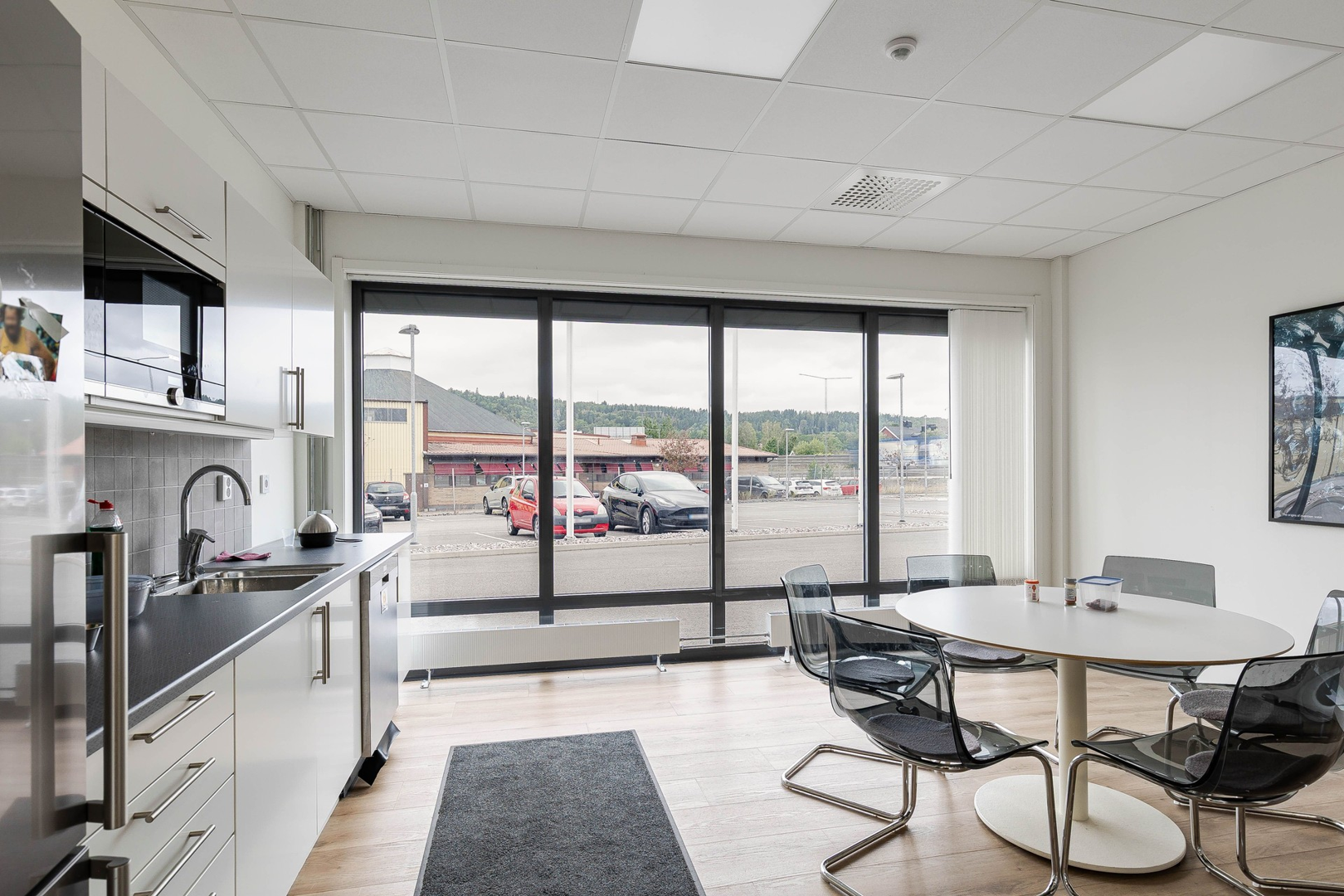 Planlösningen har tagits fram som ett förslag på hur lokalen kan disponeras på ett genomtänkt och praktiskt sätt. Tanken är att skapa en bra balans mellan kontor, gemensamma ytor och lager, där flödet mellan delarna fungerar smidigt i vardagen.