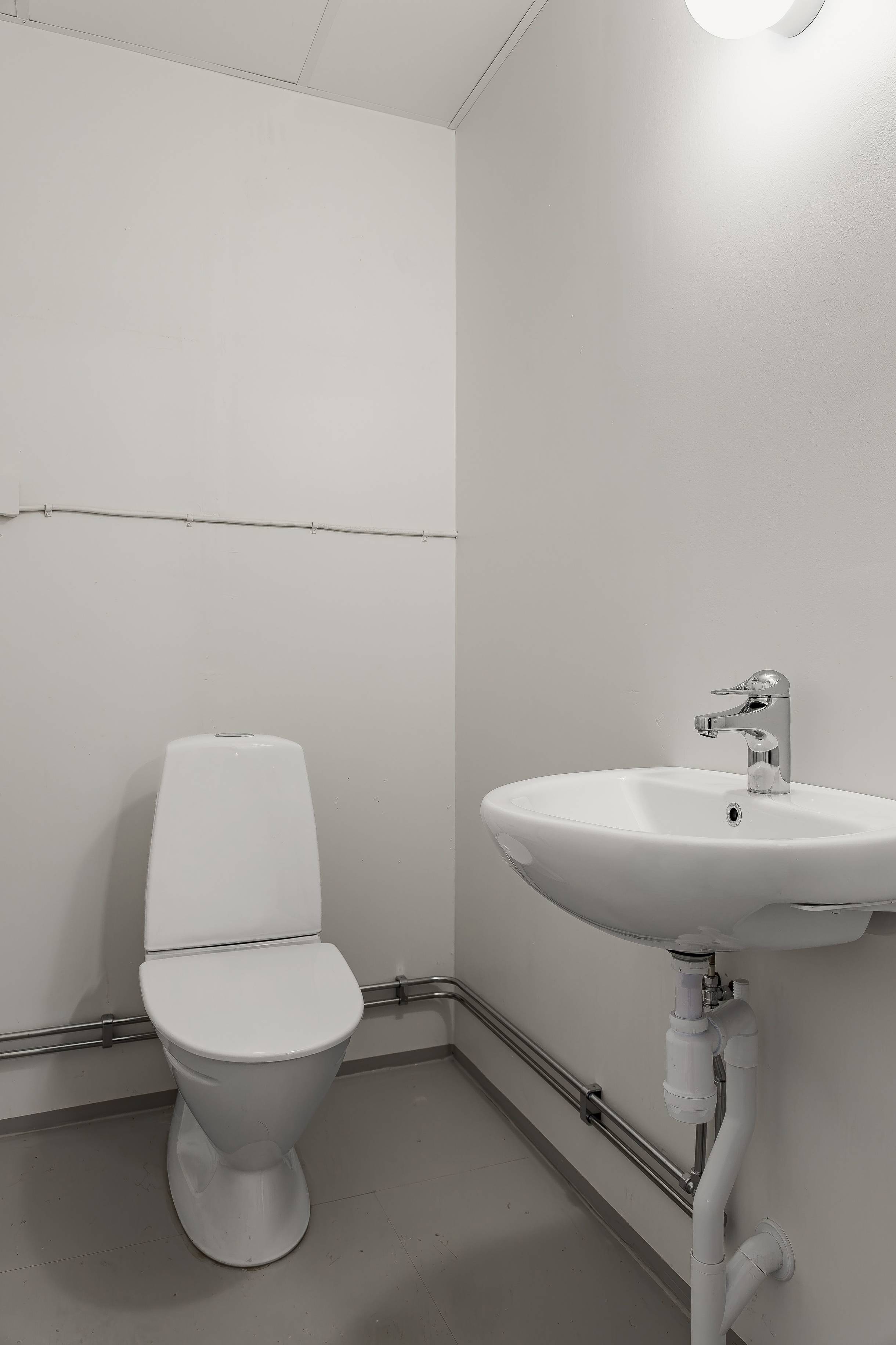 Invändigt finns ett nybyggt entresolplan om cirka 50 kvm med kontor, WC och pentry, vilket skapar en komplett lösning för både administration och personal. Lokalen totalrenoverades i januari 2025 med nya ytskikt och modern LED-belysning som ger en ljus och energieffektiv arbetsmiljö.