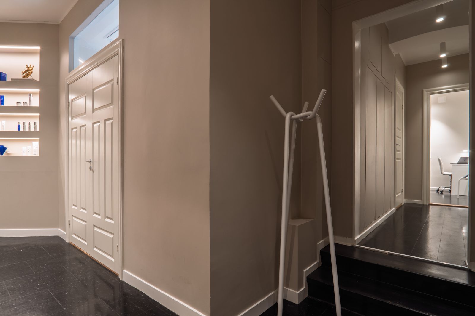Vidare in i lokalen finner vi två separata rum som idag används som behandlingsrum. Här finns även en nyrenoverad W/C.