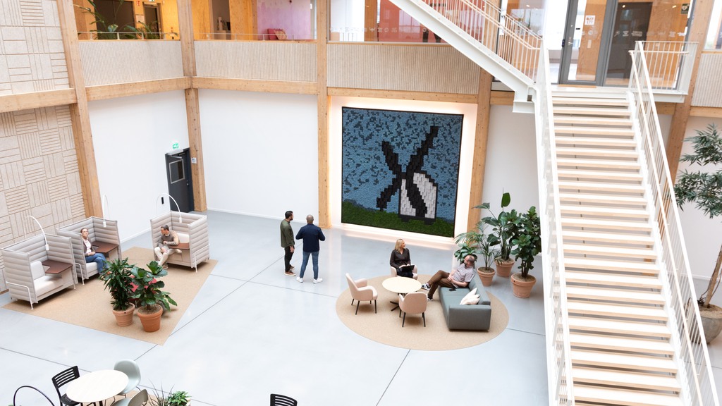 Space är ett hållbart hus som värnar om medarbetarna och byggnaden är trippelcertifierad, bland annat med WELL – vilket innebär att människans välmående står i fokus.