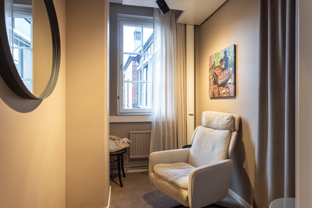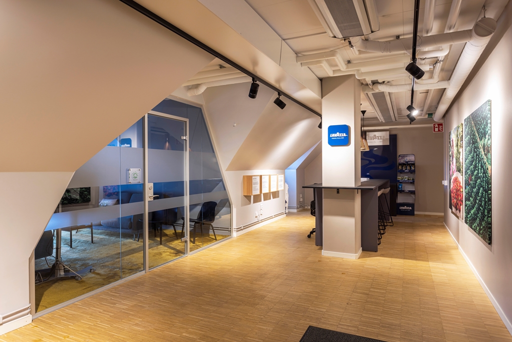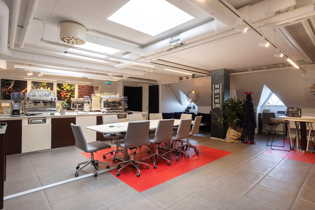 Högst upp i vackra Münchenbryggeriet ligger denna lokal med vindsvåningskaraktär.