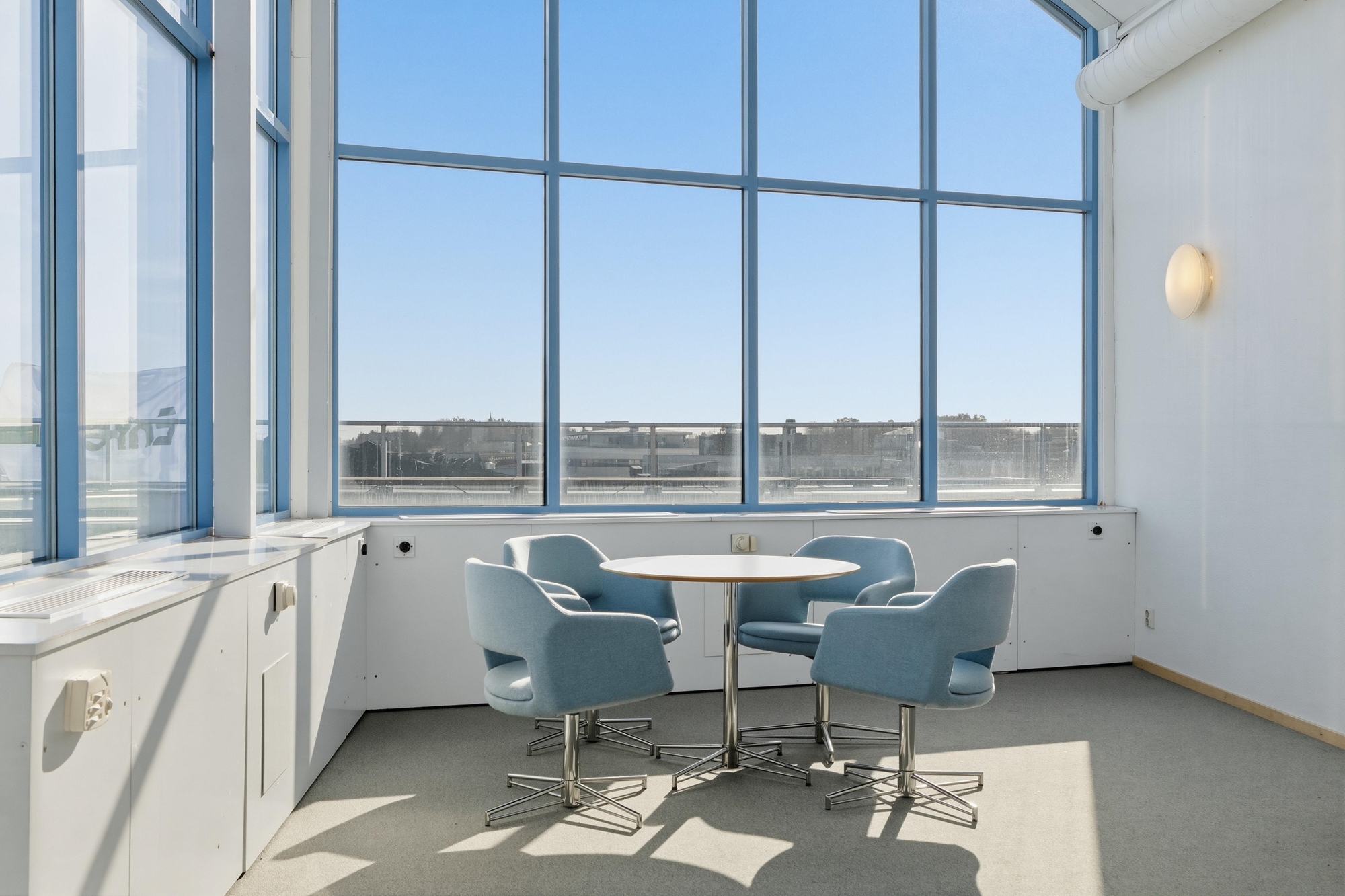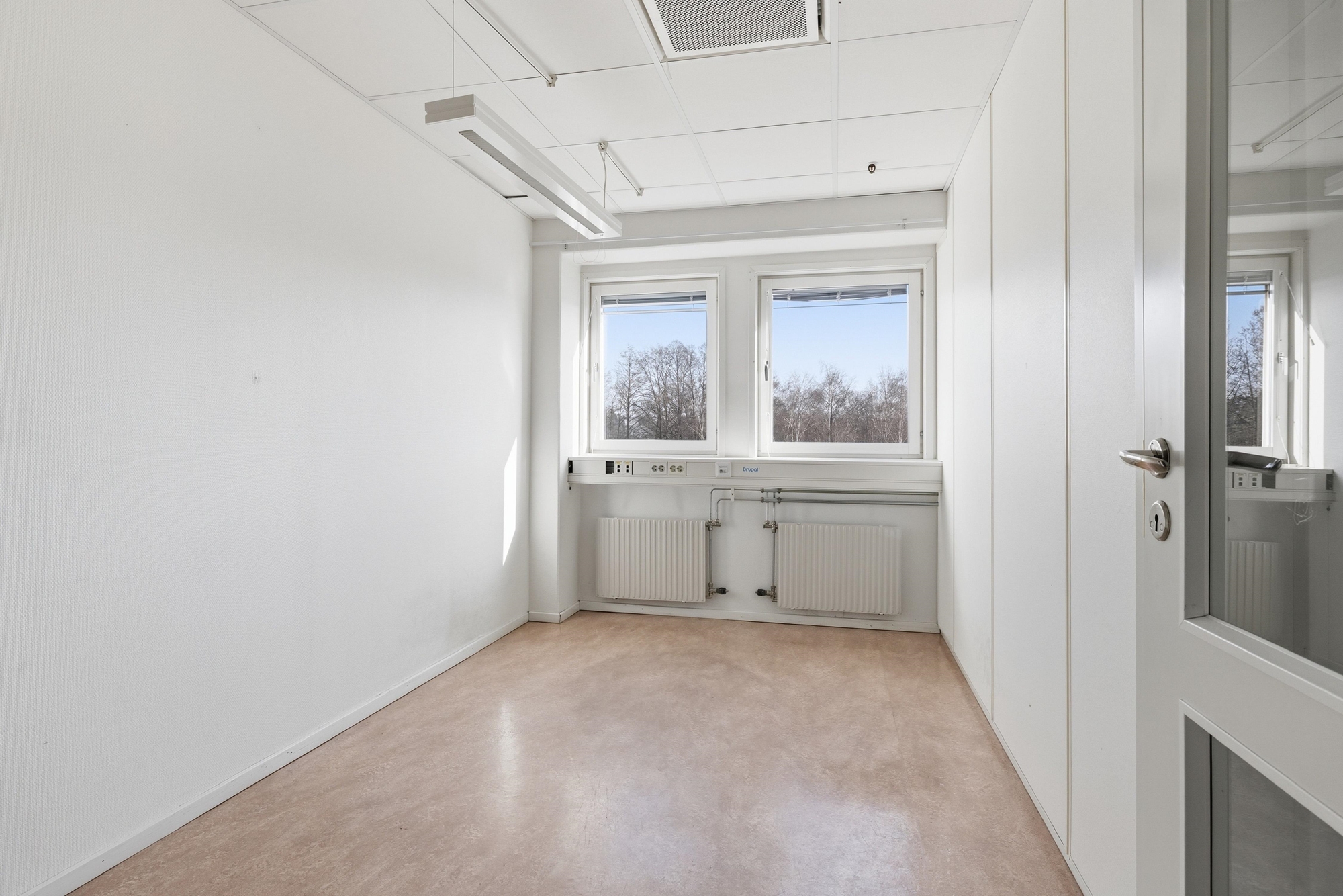Lokalen har idag en tilltalande planlösning med ett större öppet kontorslandskap i kombination med ett par separata mötes- och kontorsrum. Det generösa ljusinsläppet skapar en ljus och trivsam arbetsmiljö.