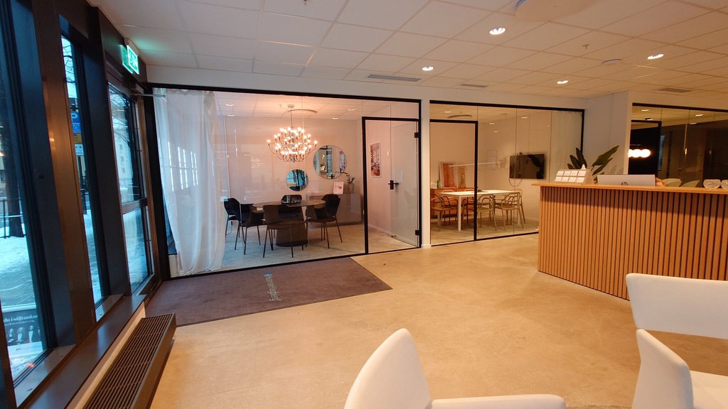 Planlösningen är mycket väl genomtänkt med ett flertal inglasade mötes & kontorsrum, modernt pentry och rymligt badrum.