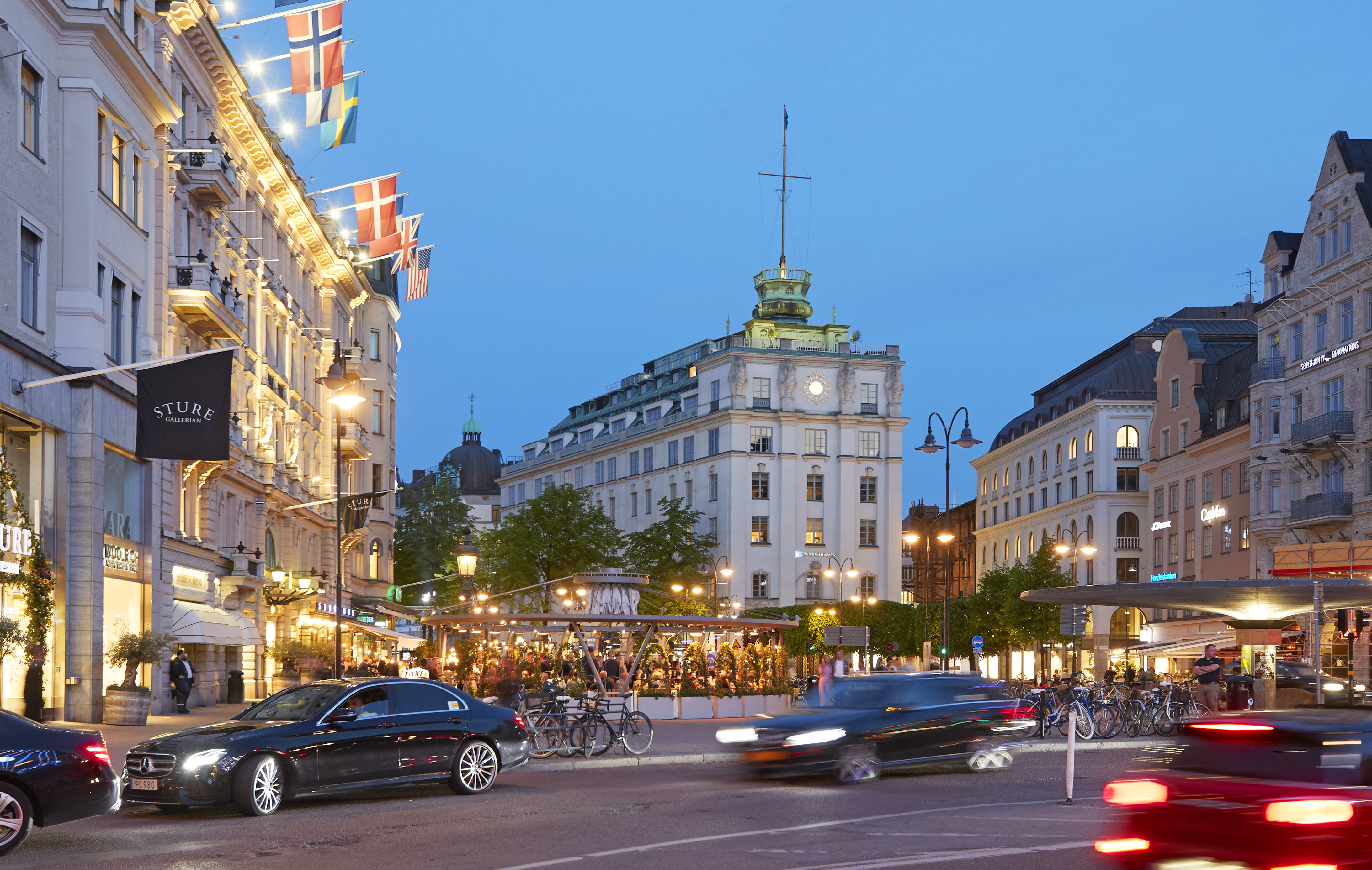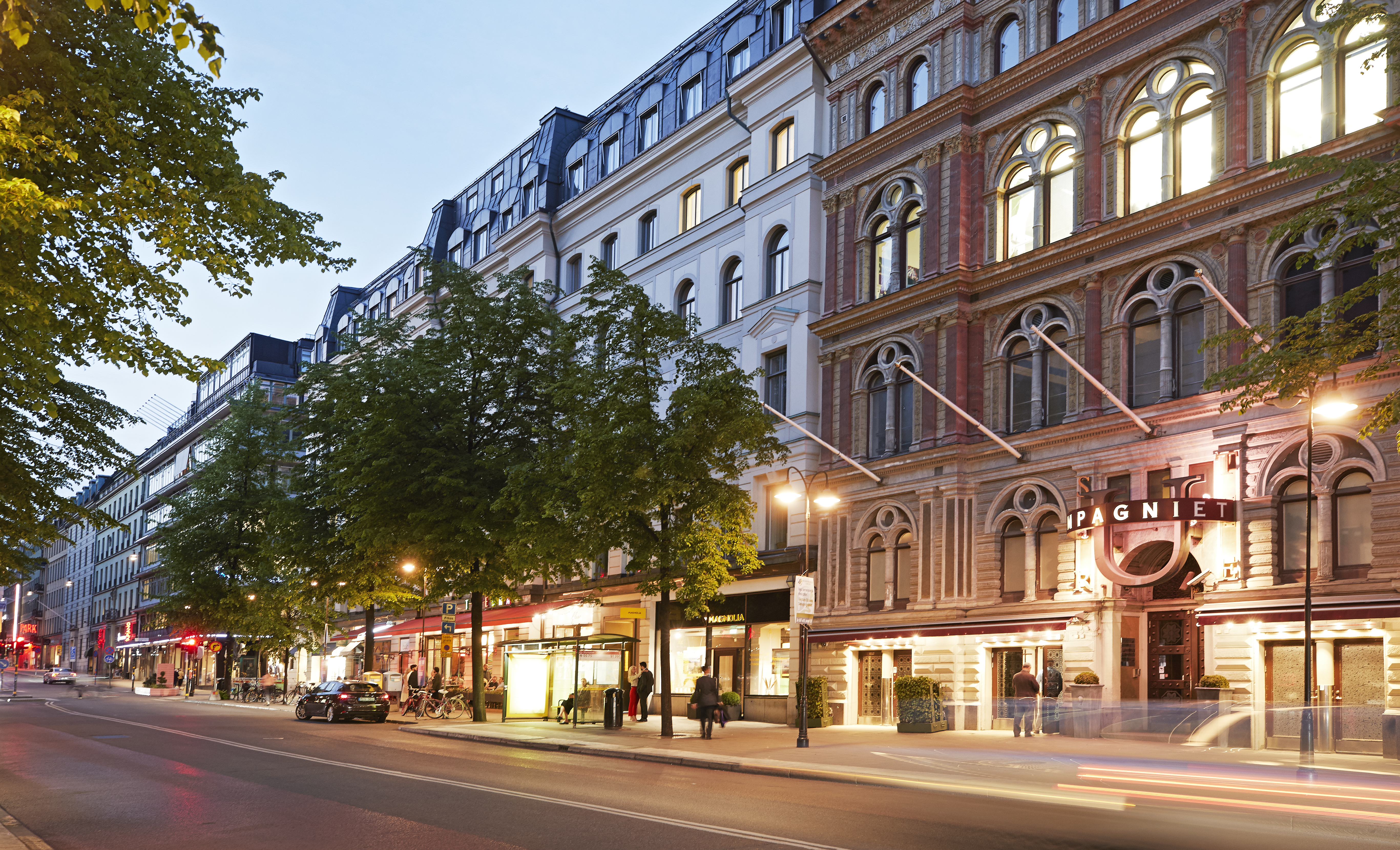 Tvärs över gatan ligger hotell Scandic Anglais och på kort promenadavstånd finns Östermalmshallen med de allra bästa delikatesserna.