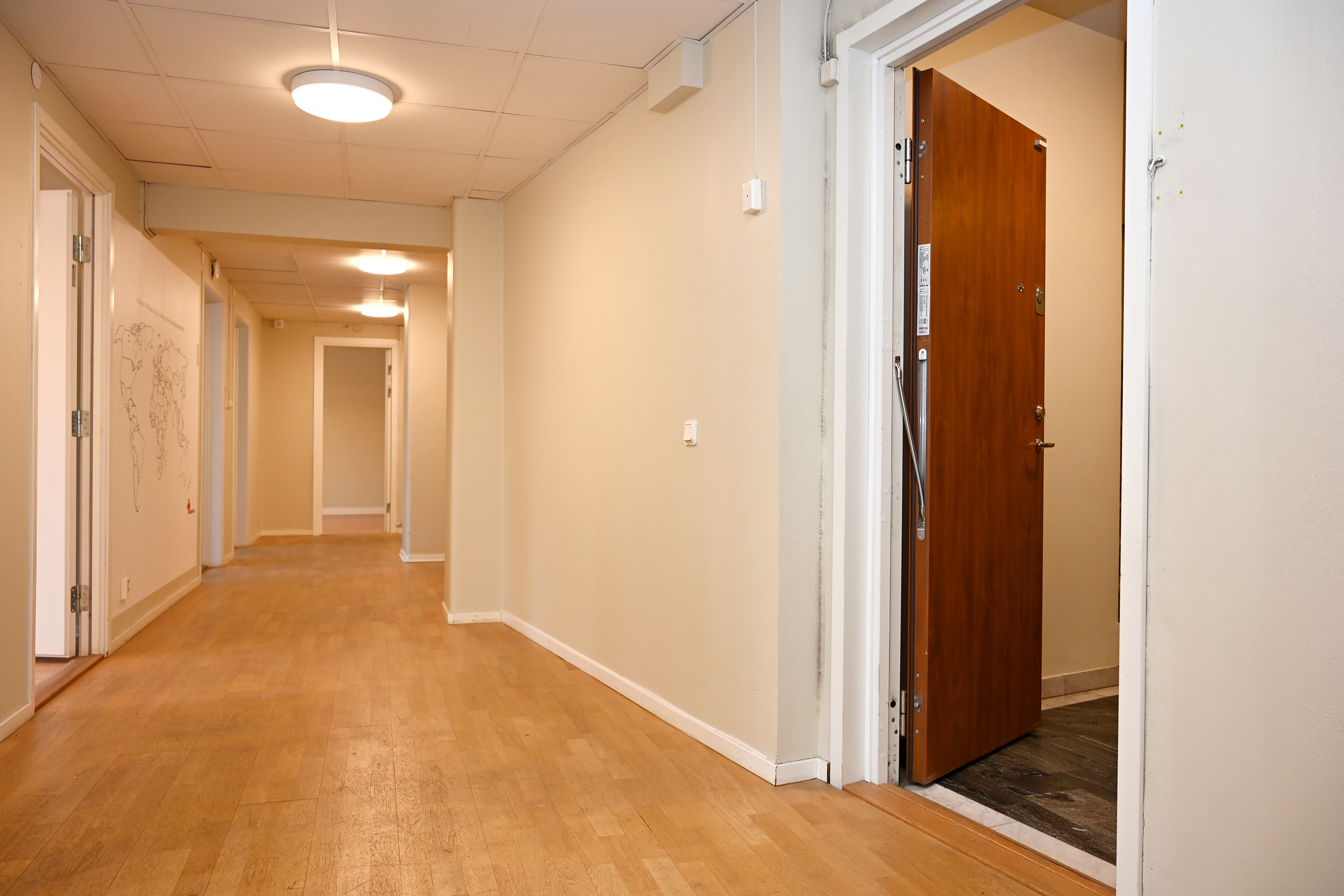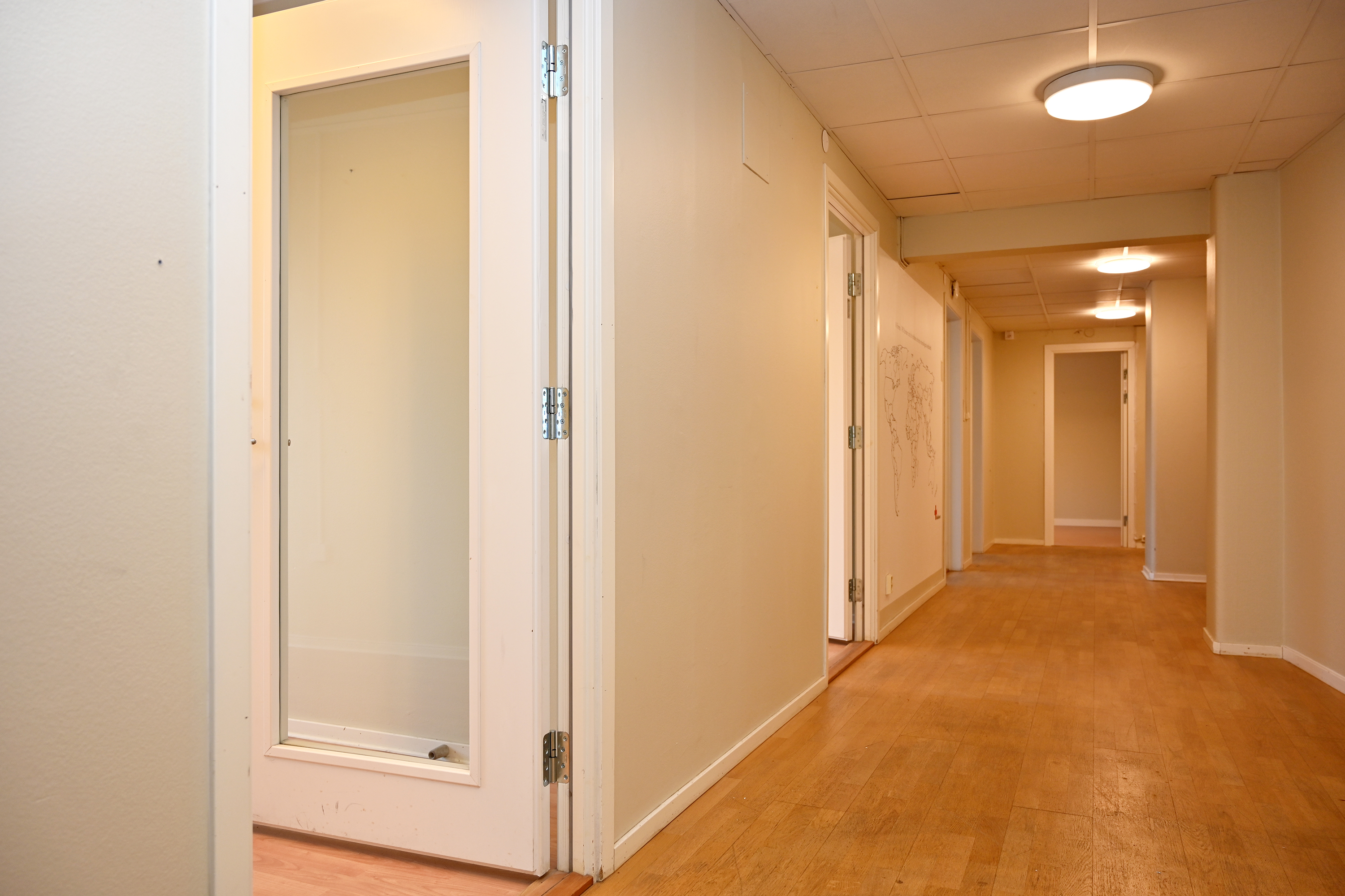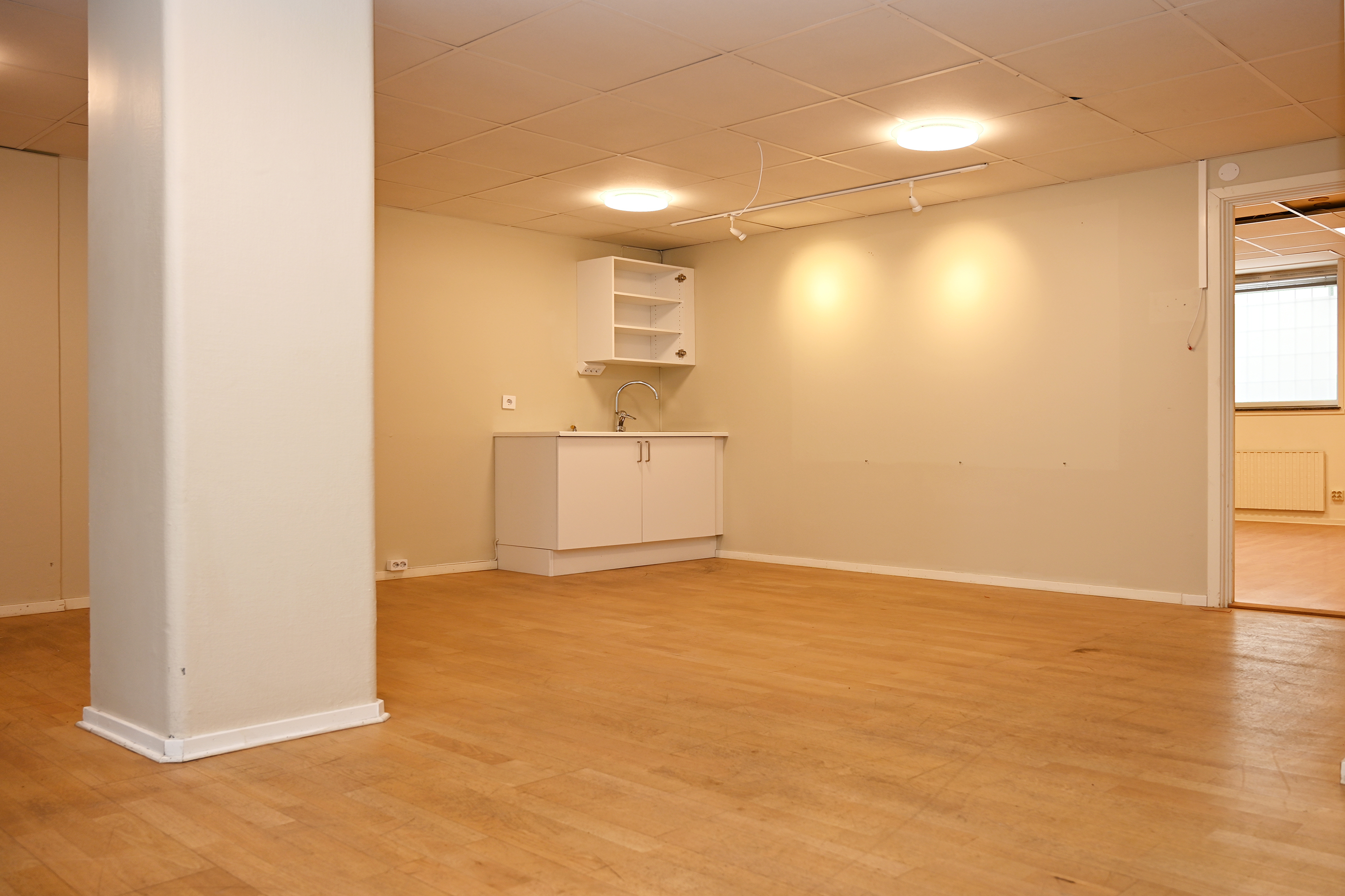Rumsindelad lokal med 12 st rum i varierande storlekar. I lokalen finns även ett trevligt stort pentry och två st WC varav en med dusch. I lokalen finns även en RWC samt förråd med utslagsvask. Det stora hörnrummet har ett handfat.