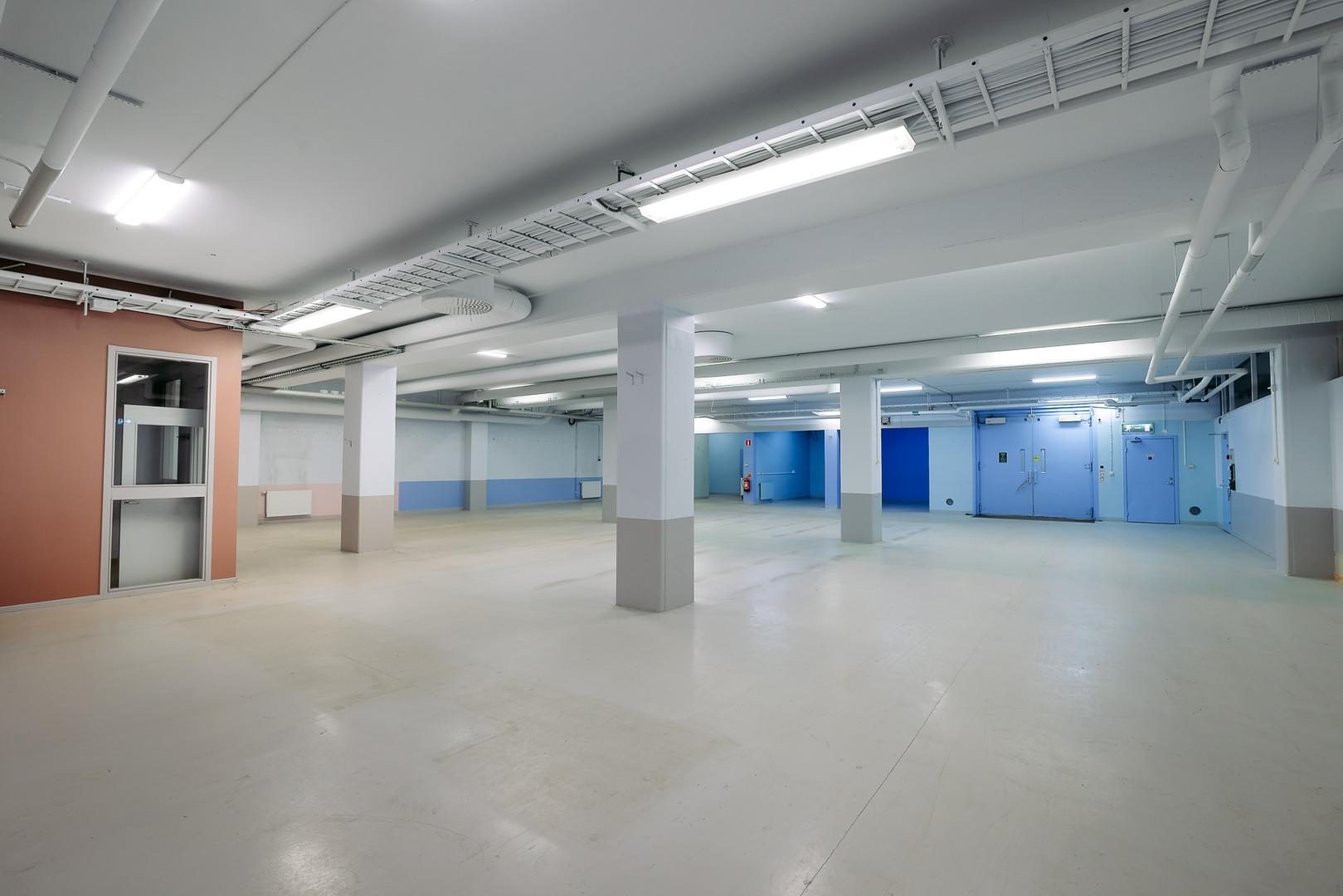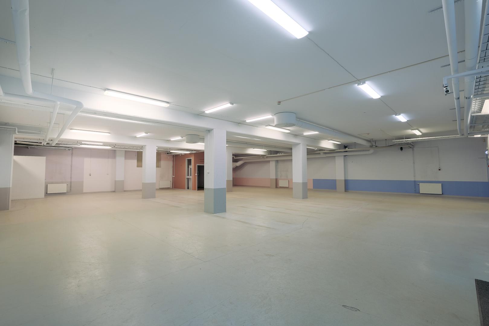Lokalen omfattar cirka 1 337 kvm och erbjuder smidig tillgänglighet med direkt access från gatan via både entrédörr och markportar. När man kliver in i lokalen möts man av en imponerande takhöjd om cirka 10 meter, vilket skapar en unik rymd och förstärker den industriella karaktären. De öppna ytorna tillsammans med den generösa takhöjden ger stora möjligheter att anpassa lokalen efter verksamhetens behov. I bottenvåningen finns praktiska förvaringsutrymmen som enkelt nås via en stor lasthiss, vilket ger effektiva logistiklösningar.