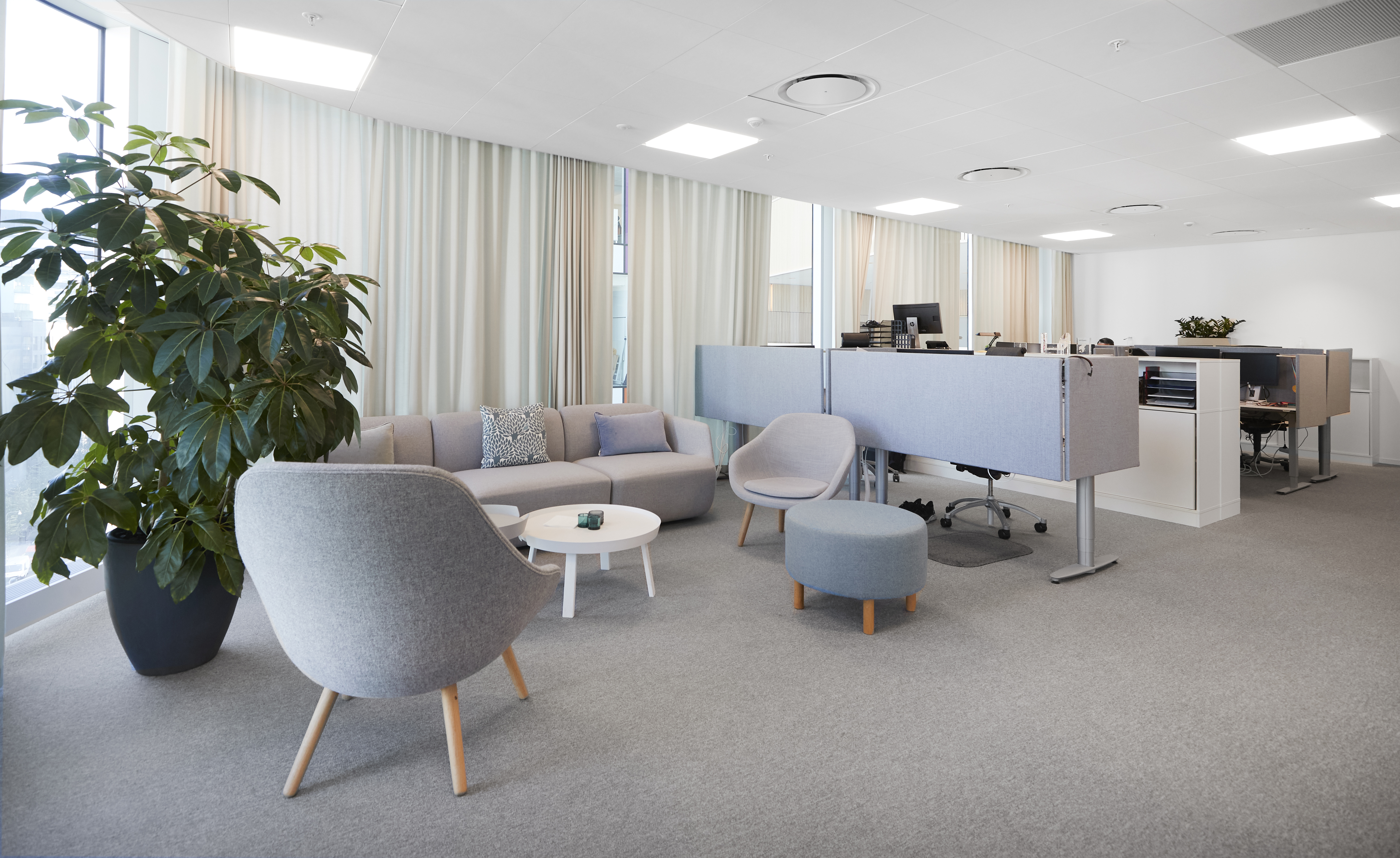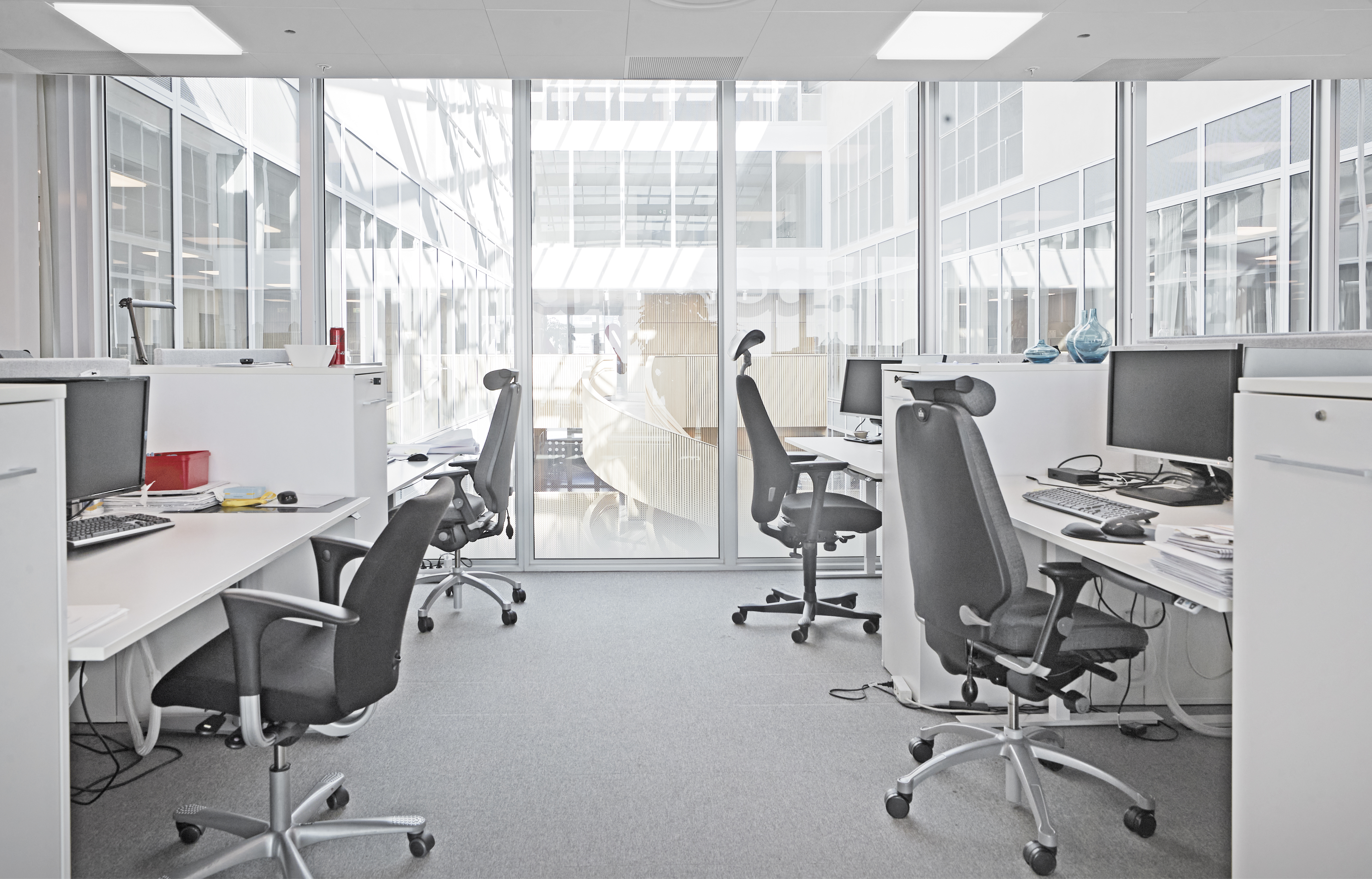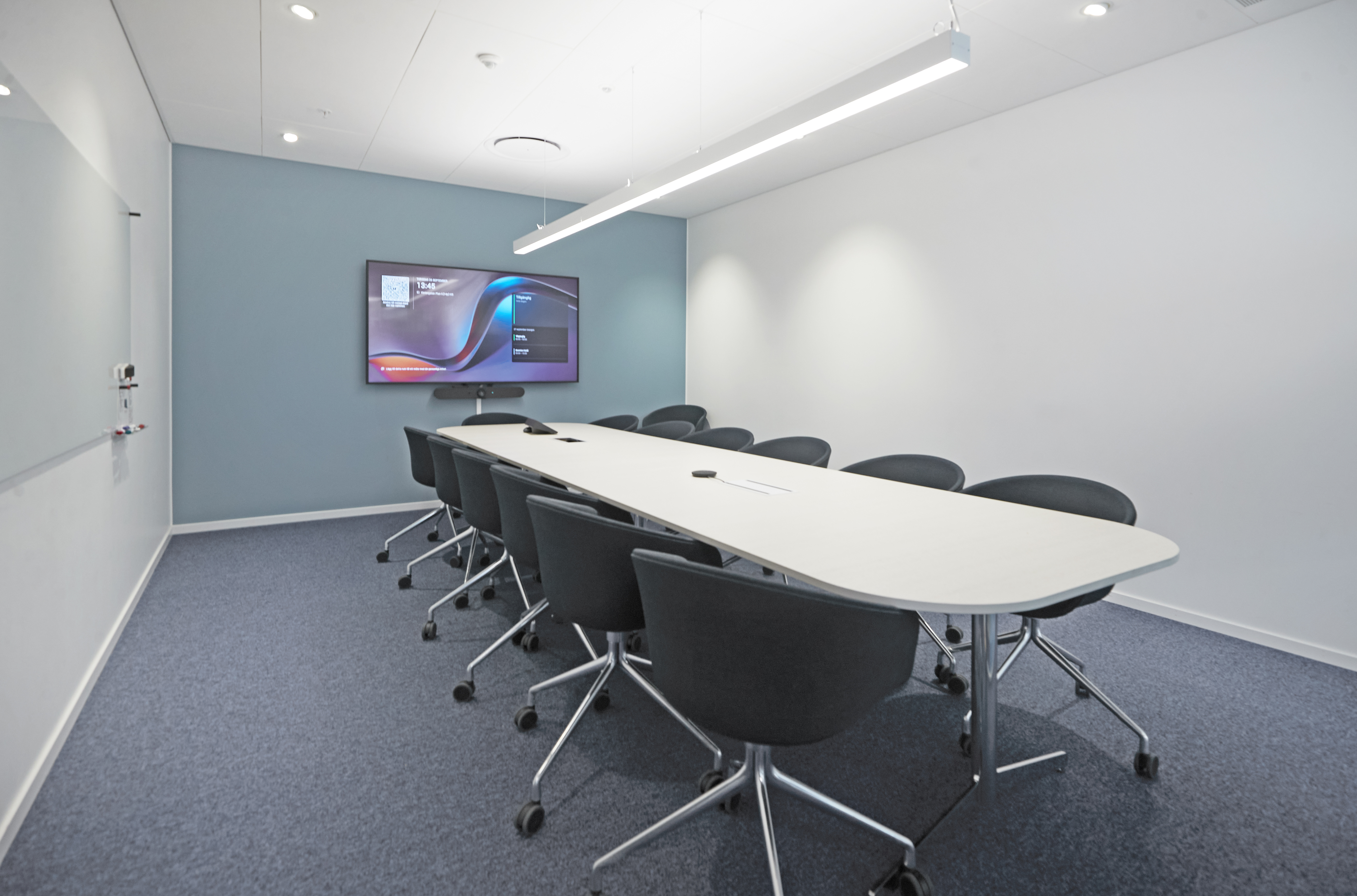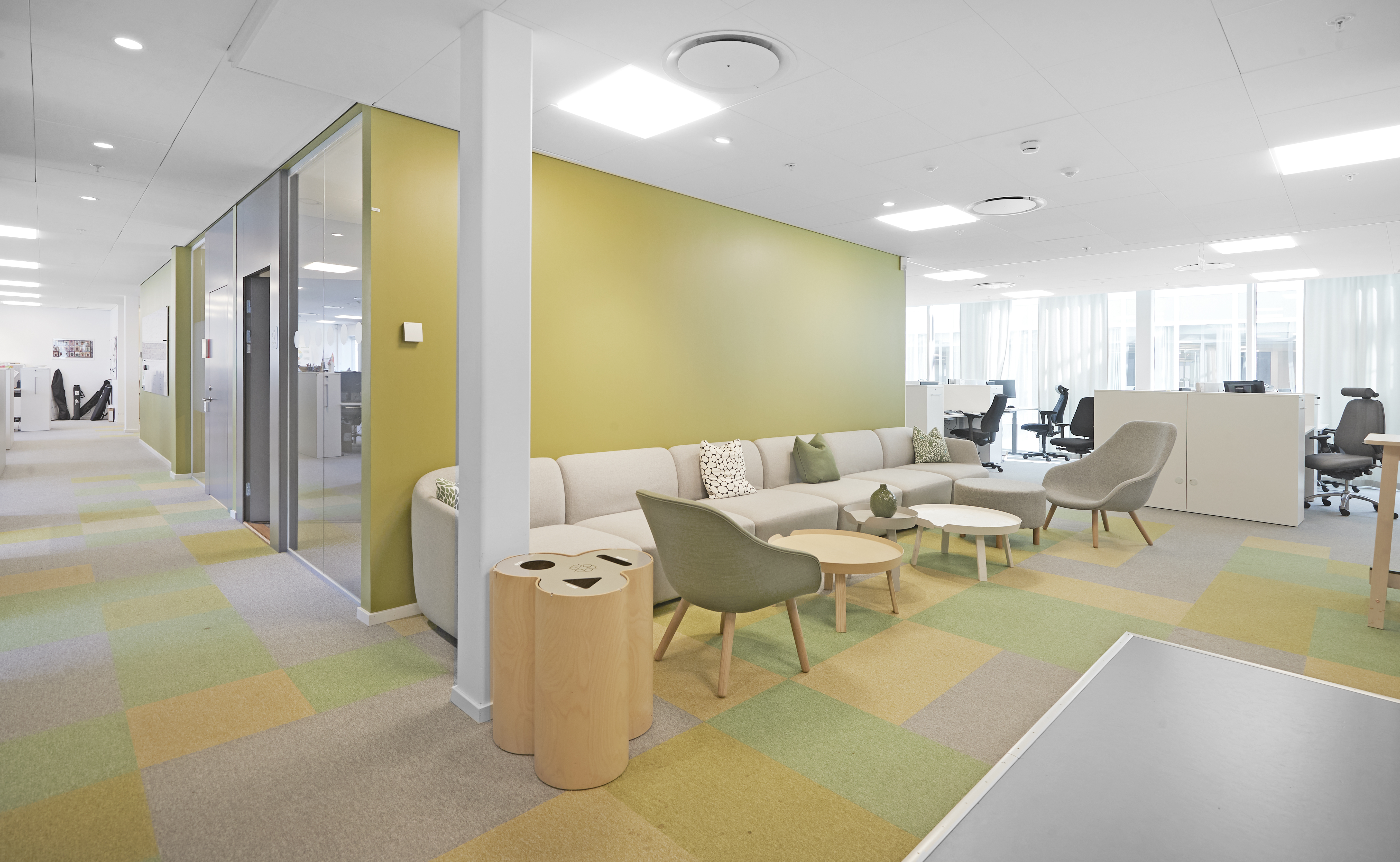 Kontorslokalen har fönster från golv till tak och ljusa, fräscha ytskikt. Vy över pulserande Evenemangsgatan på ena sidan och grönskande Råstasjön på andra. Gott om sällskapsytor ger möjlighet för anställda att umgås.