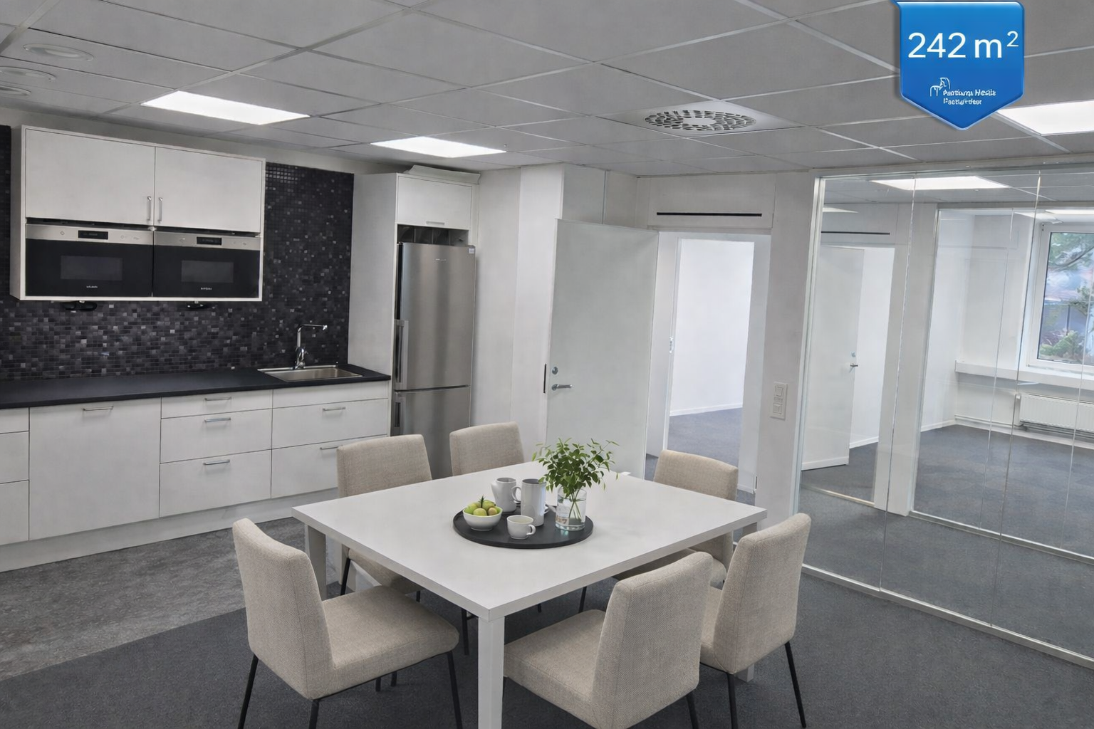 Lokalen totalrenoverades 2023 och består av en blandning av enskilda kontorsrum och öppna ytor. Det finns även kontorsförråd och konferensrum. Köket ligger centrerat i lokalen och det finns RWC/dusch samt separat WC vid hallen, i anslutning till entrén.