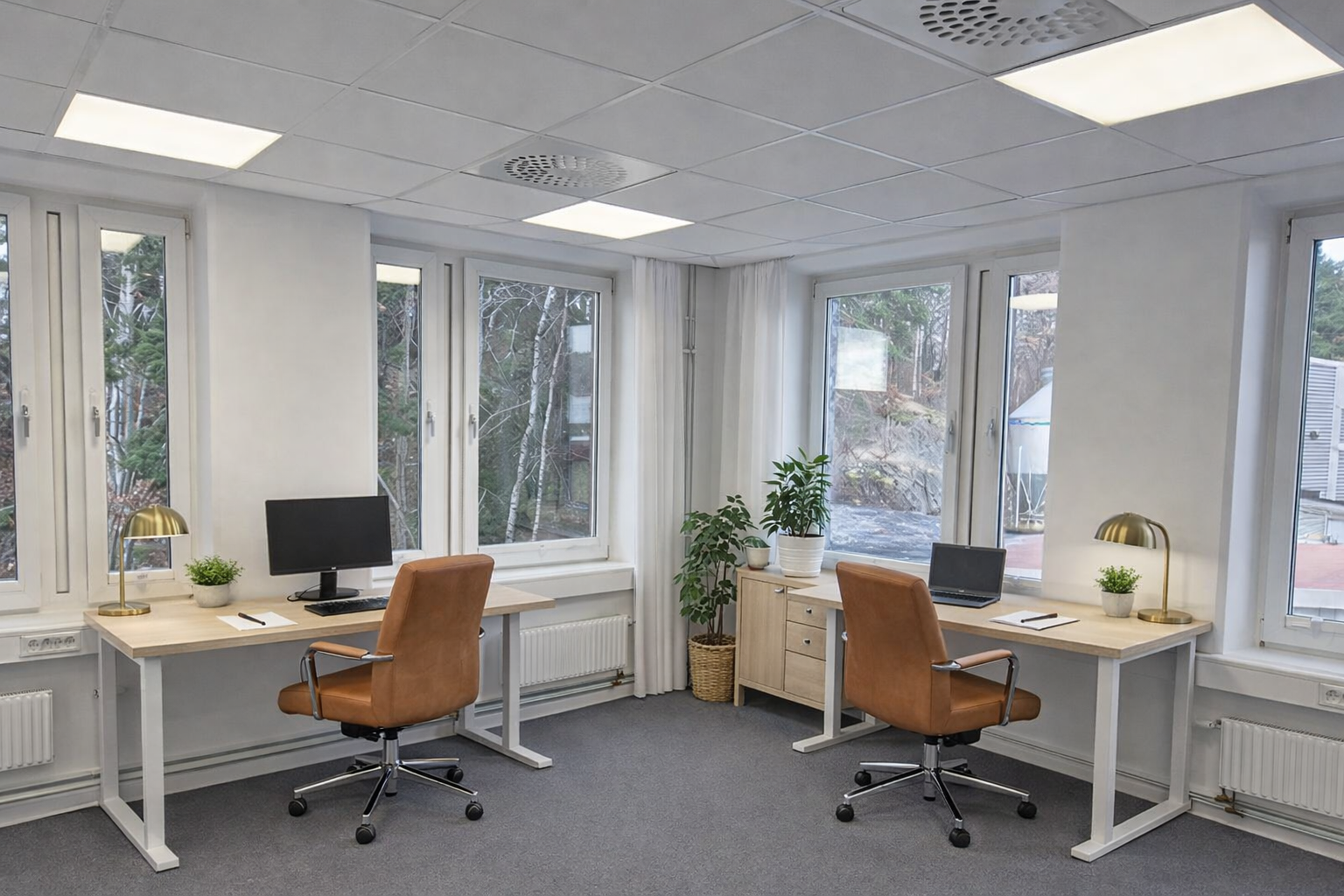 Kontorslokalen har bra inomhusmiljö med god ventilation samt kyld tilluft.