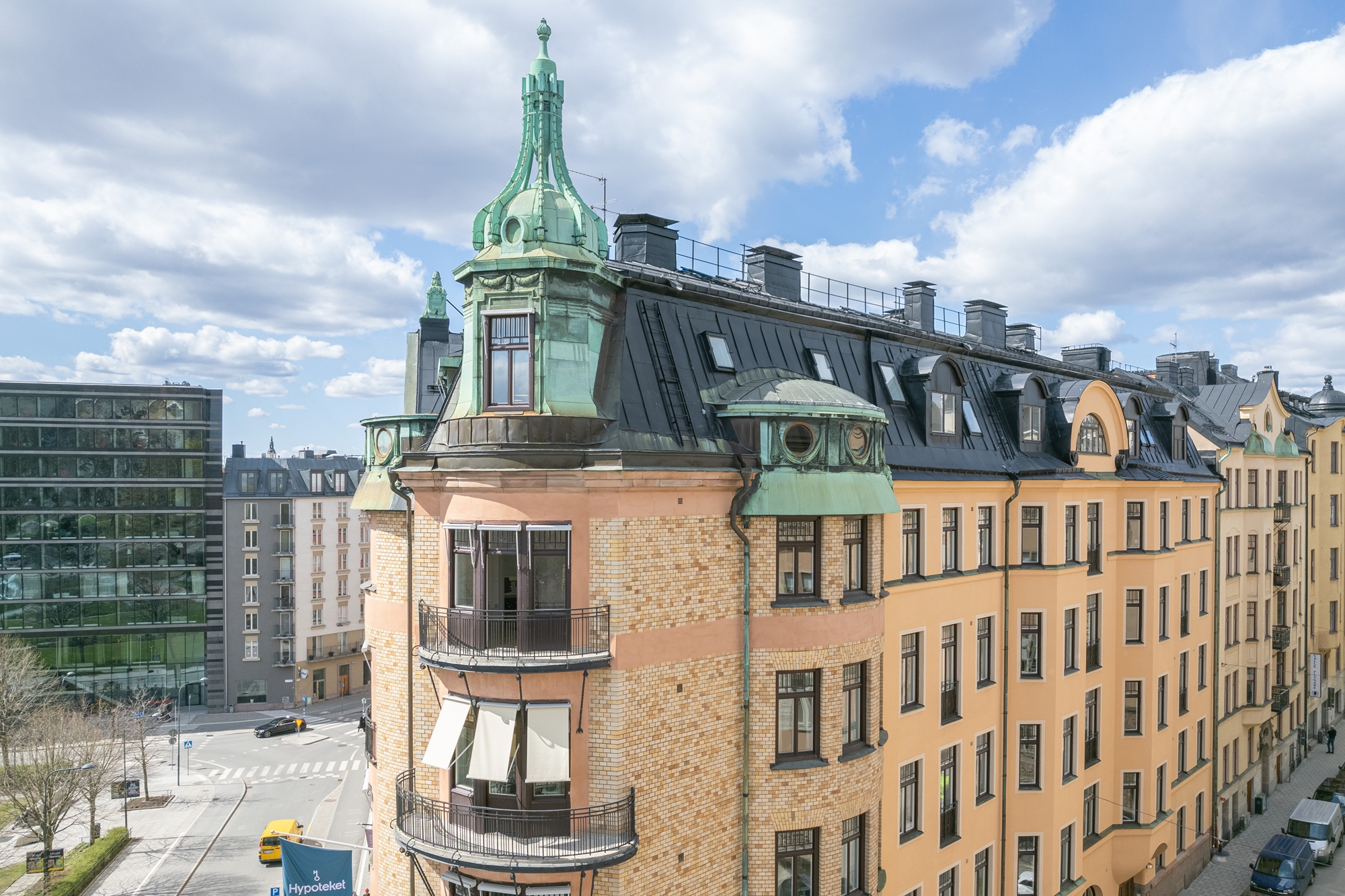 Lokalen, som uppgår till ca 223 kvm, är belägen på våning 5 av 6 i ett vackert sekelskifteshus vid Norra Bantorget.