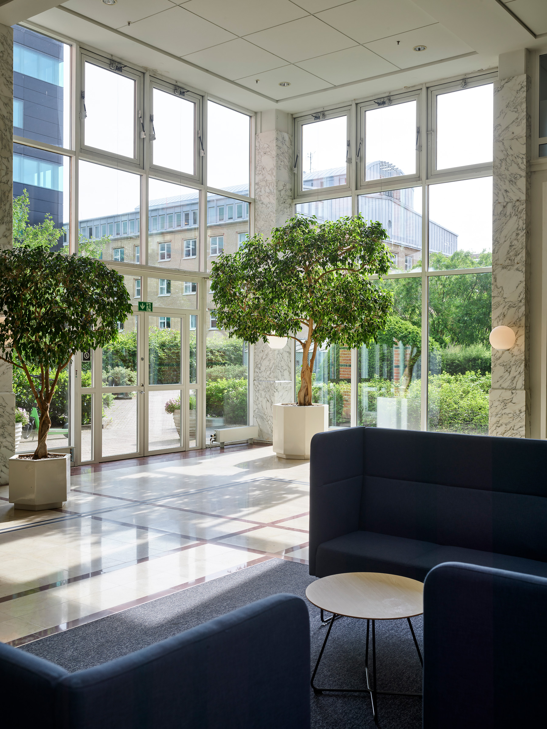 Runt knuten väntar restauranger, caféer och service som gör arbetsdagen enklare och trevligare – perfekt för spontana lunchmöten eller en kaffe i solen.