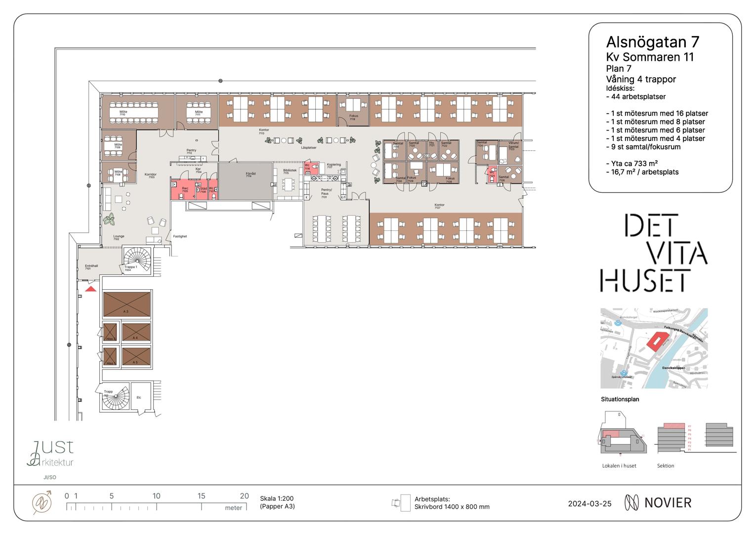 Går att hyra för 1 500 kr/plats/månad. Kvot: 1 plats per ca 150 kvm hyrd yta.