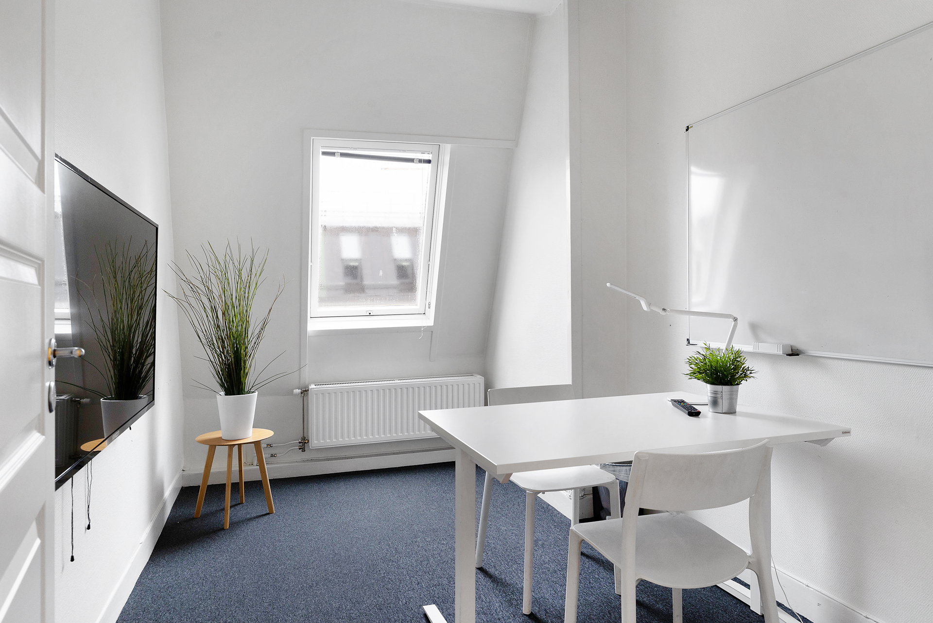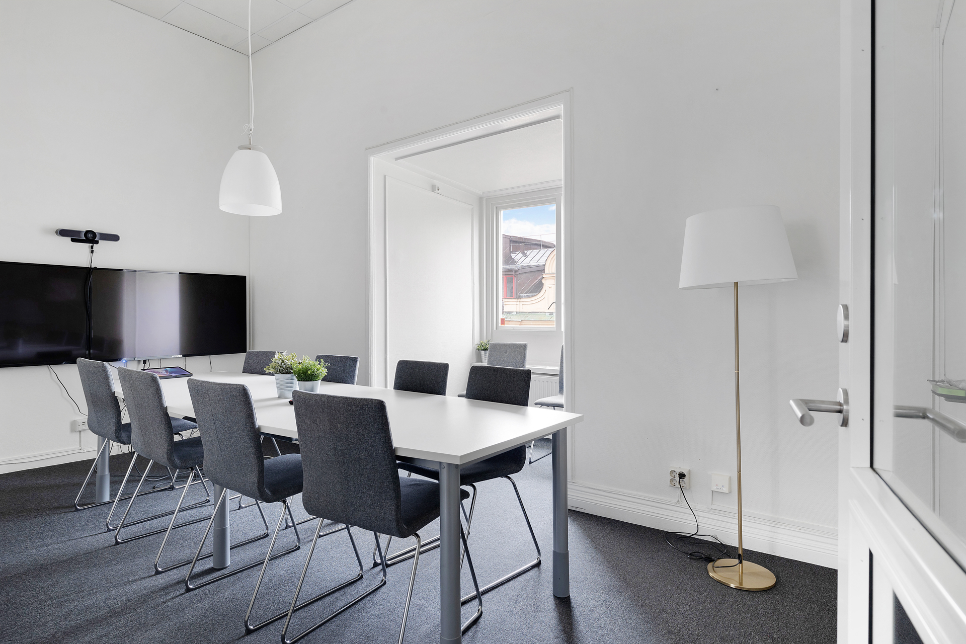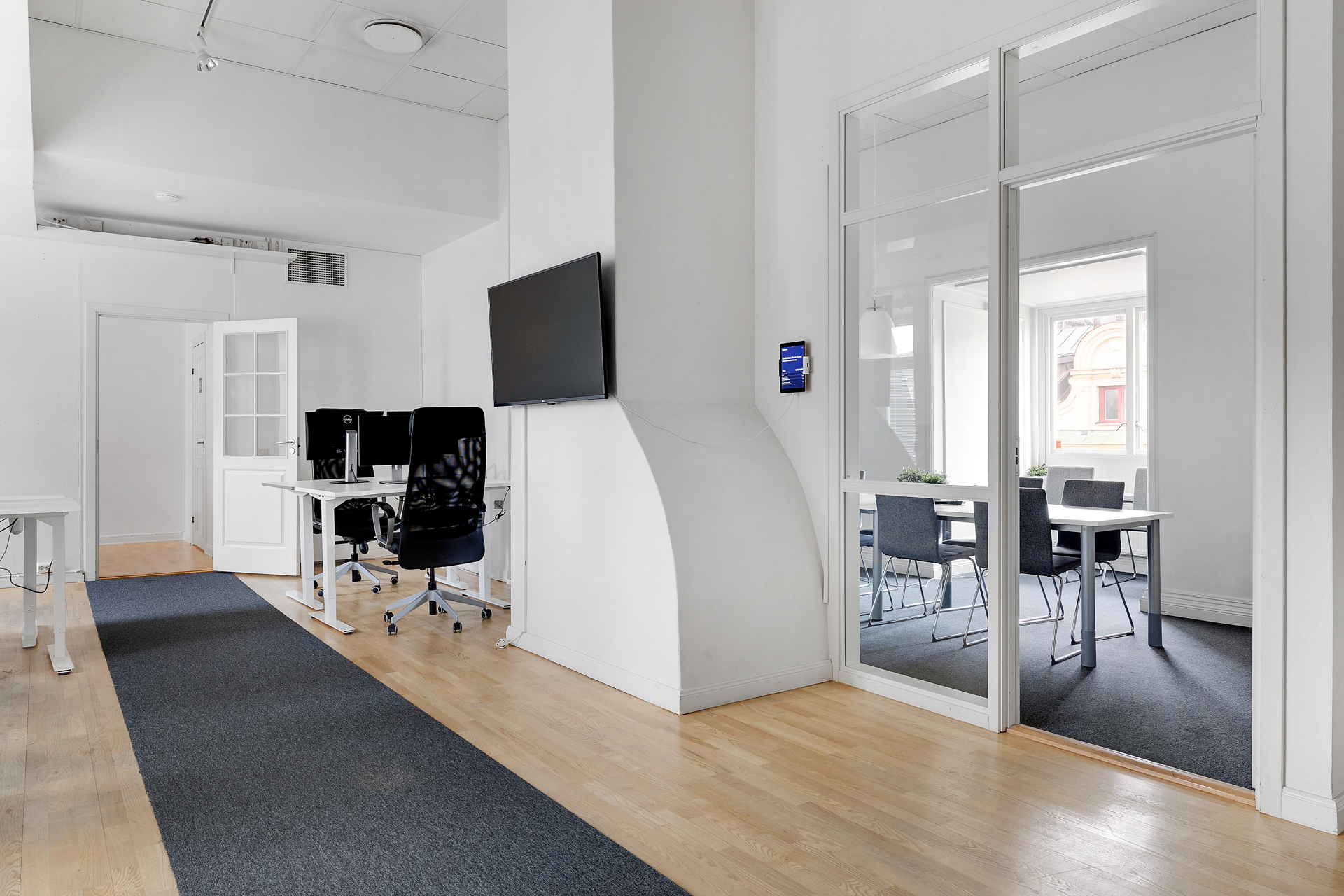 I direkt anslutning till den öppna arbetsytan finns mötesrum, både ett större med plats för ca 8-10 personer, samt 2 st mindre kontors/mötesrum passande för ca 2 personer vardera.