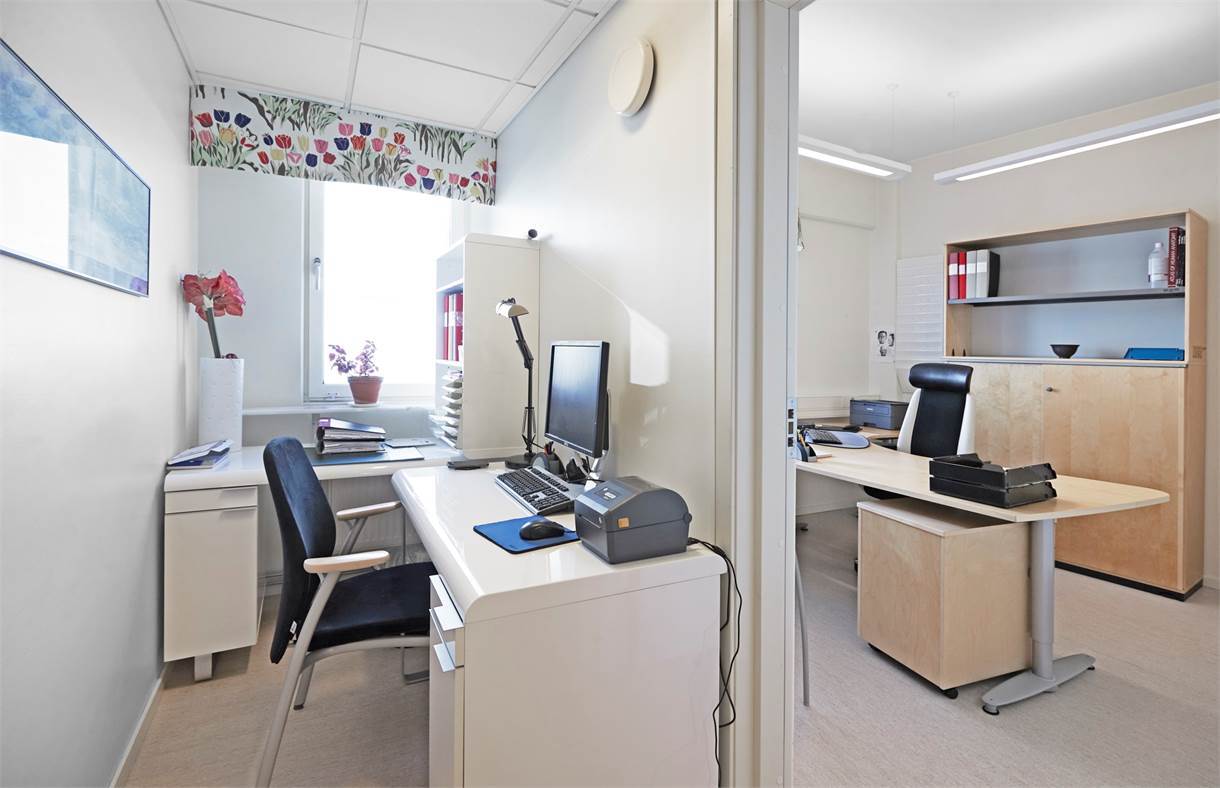 Lokalen är redan utrustad med ett stort väntrum, flera läkarexpeditioner, behandlingsrum och toaletter, vilket skapar en funktionell och bekväm miljö för både personal och patienter.