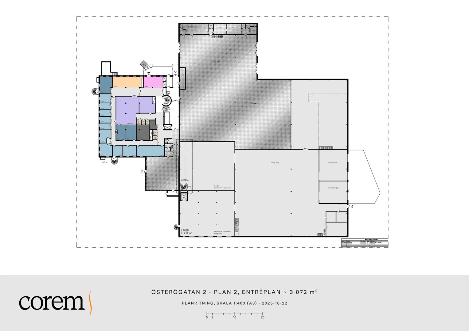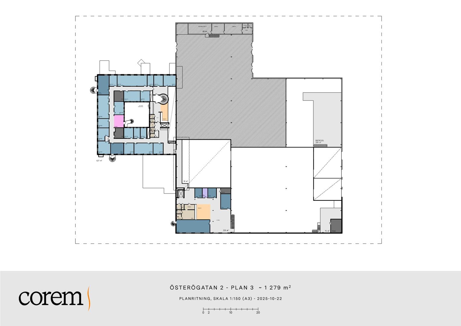 Ytan kan hyras från ca 2 790 - 4 350 kvm och erbjuder kontor i direkt anslutning.