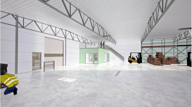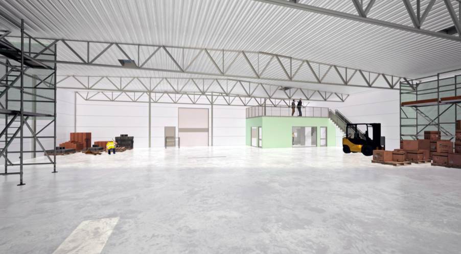 Faciliteter: Kontor, pausrum, lastport och omklädningsrum