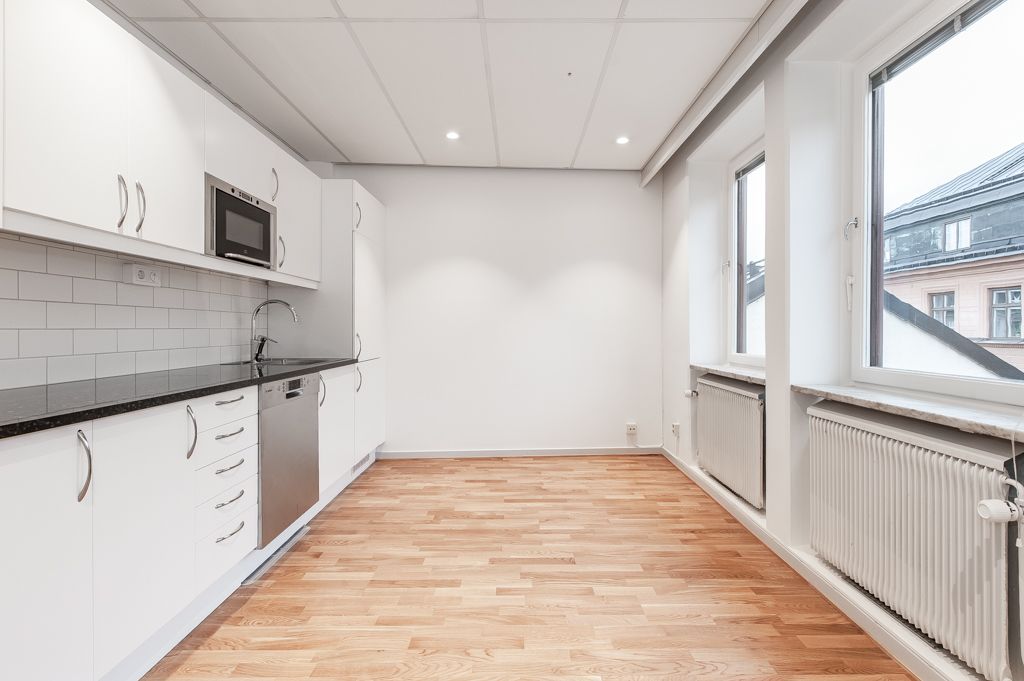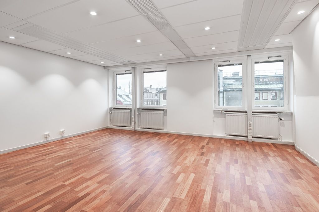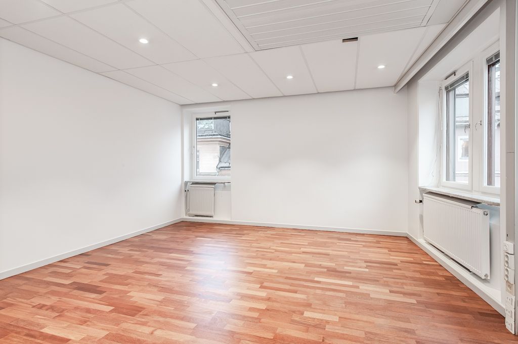 Du har en genomgående tät fönstersättnings som släpper in mycket ljus både från Döbelnsgatan & Rosengatan samt fastighetens innergård.