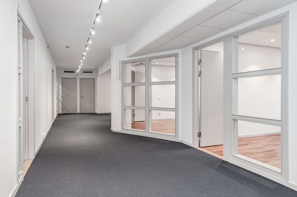 Lokalen är i dagsläget helt rumsindelad men går att öppna upp helt tak vare den pelarbyggda konstruktionen.