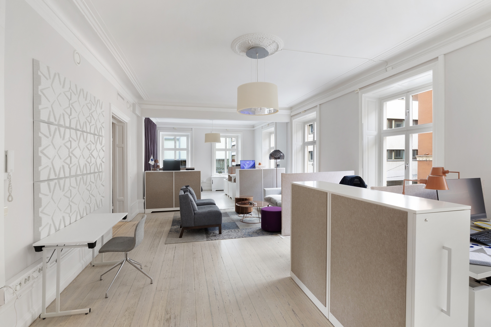 Bra mix av både större kontors/arbetsytor samt mindre mötes/samtalsrum. Möjlighet till både interna och externa ytor.