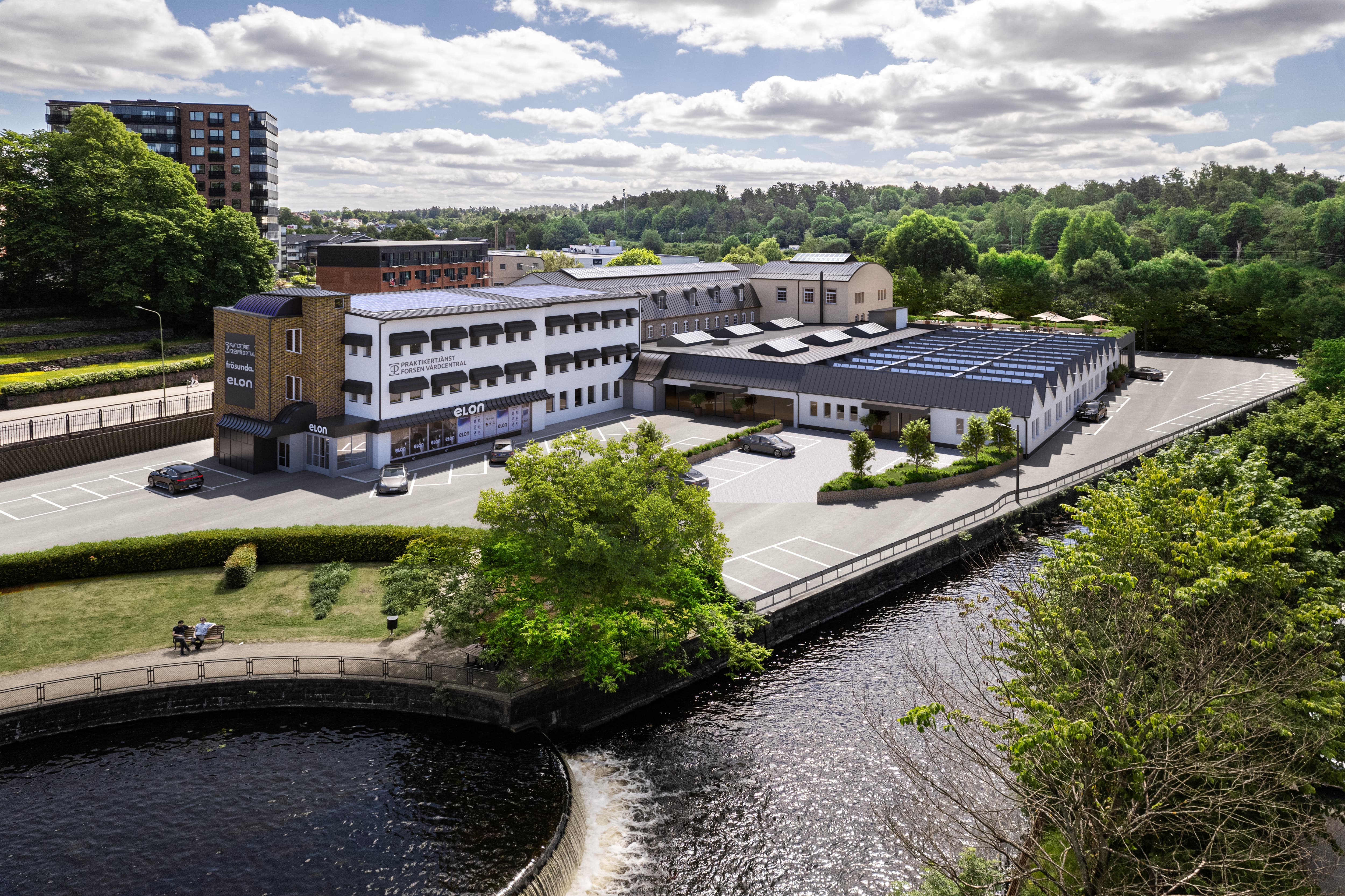 I fastigheten: Elon, Atracco, Frösunda Assistans, Fissa & Feja, Forsen Vårdcentral, Brandtown.