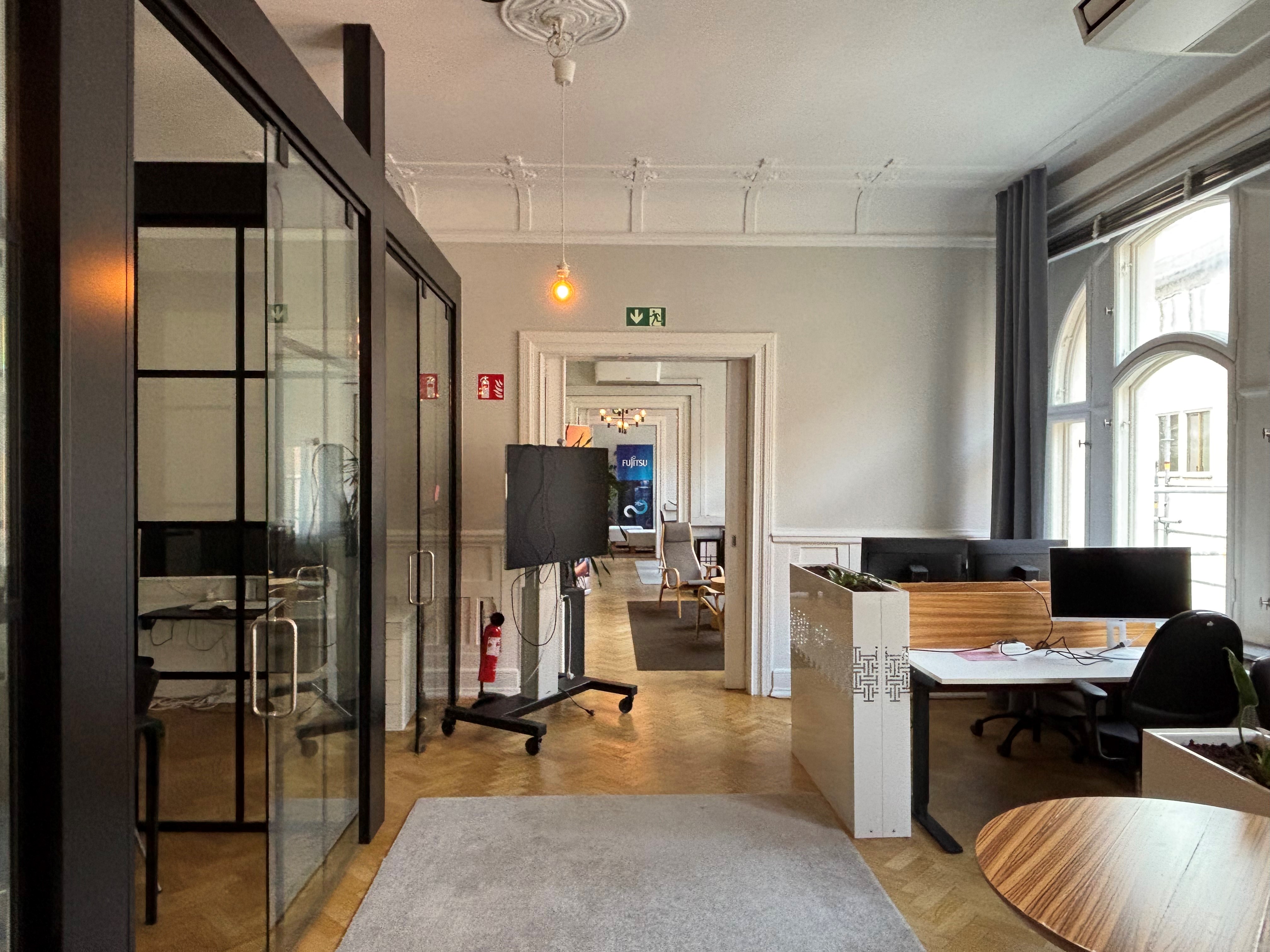 Snart finns en helt unik kontorslokal ledig i respresentativ fastighet precis intill Gustav Adolfs torg. Lokalen består av ett mindre kök precis intill entrén. I anslutning av två toaletter finns ett rum som kan användas som förråd/skrivarrum. Längre in i lokalen finns plats för lounge/mottagningsrum. Fyra rum i fil med totalt fem mindre kontorsrum/samtalsrum med glaspartier. Lokalen har även två större rum med glaspartier som passar bra som mötesrum. Här finns även plats för öppen sittning i tre av de stora salongsrummen.