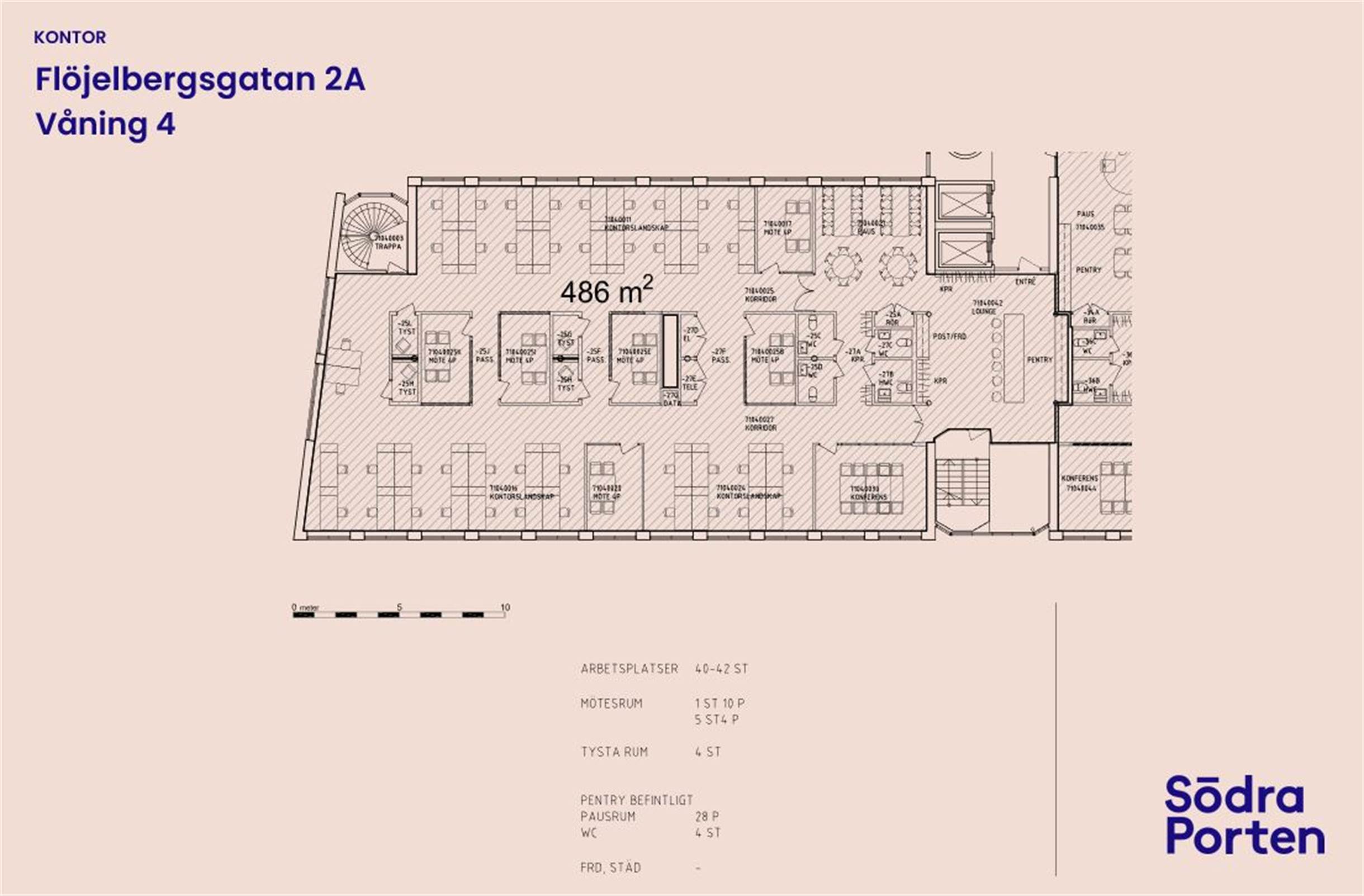 Ljus kontorslokal högt upp i byggnaden med bra planlösning och fina ytskikt.